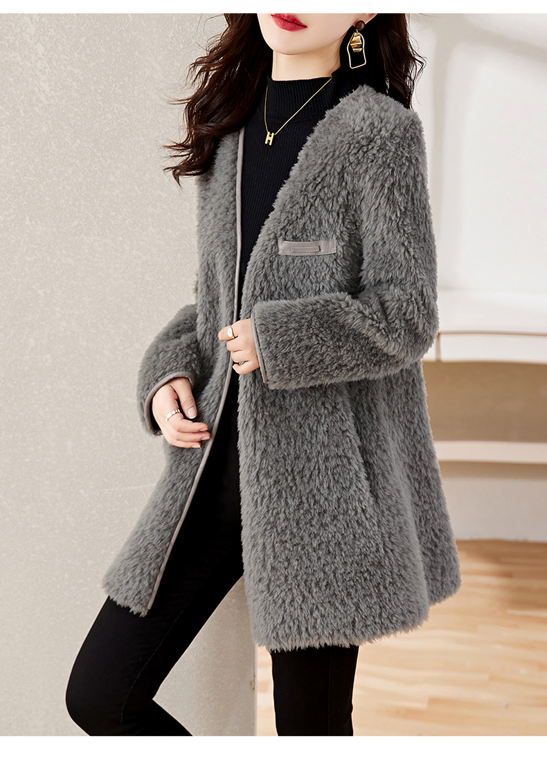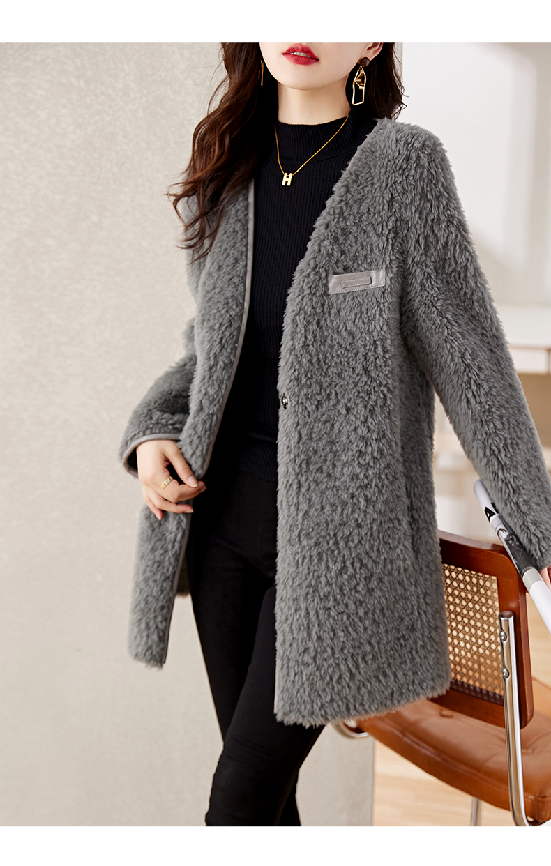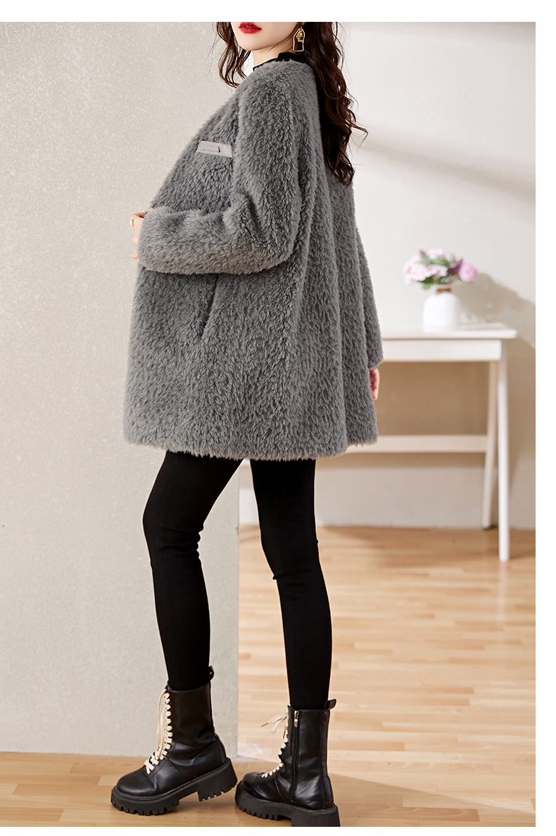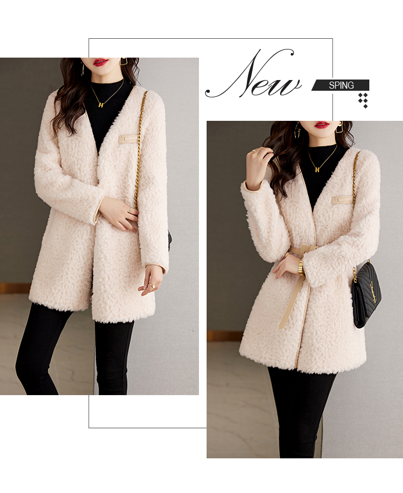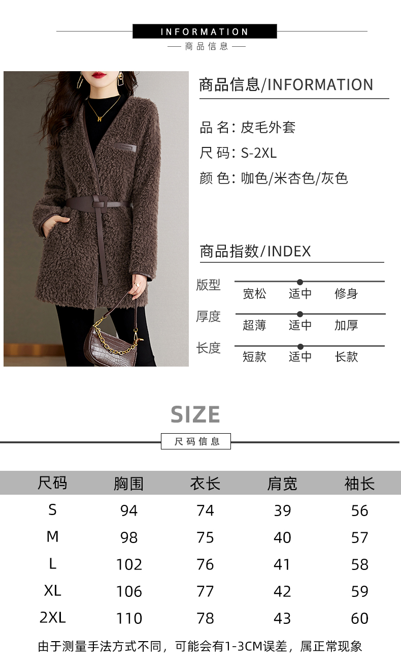 时尚气质保暖皮毛一体外套配腰带HR-GJC7231