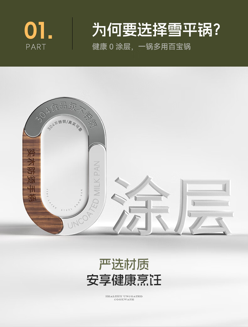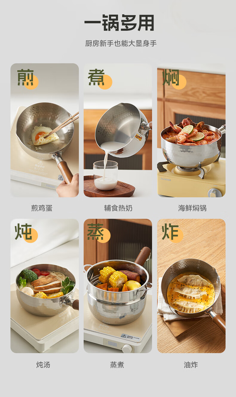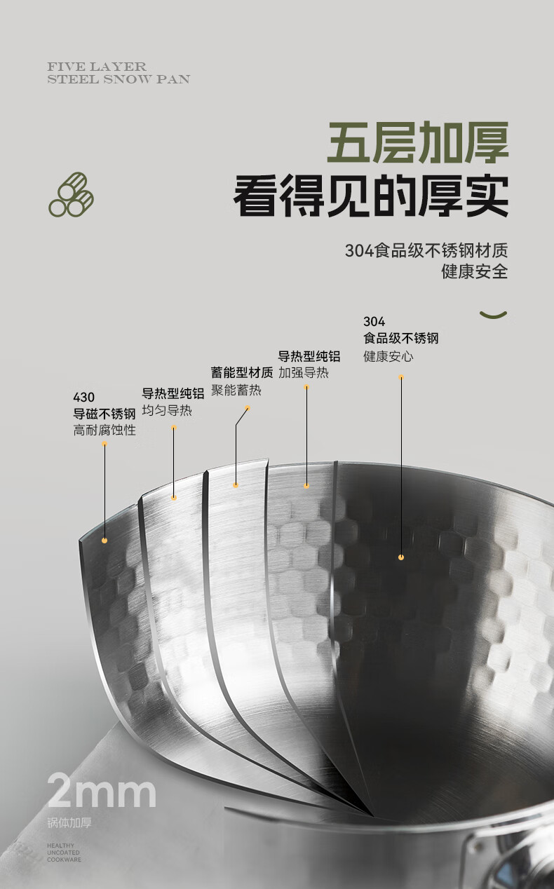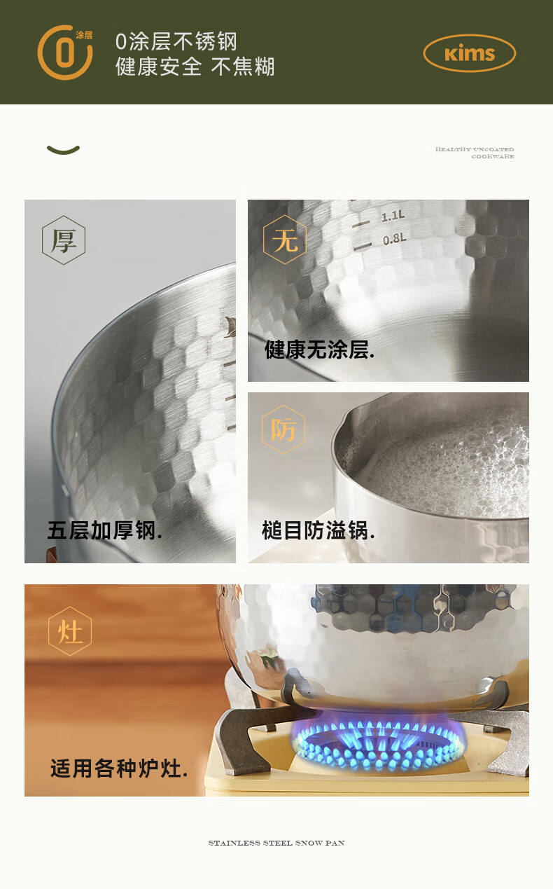 【KIMS COOK 不锈钢雪平锅 】五层加厚钢 健康无涂层 适用各种炉灶