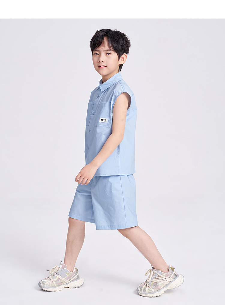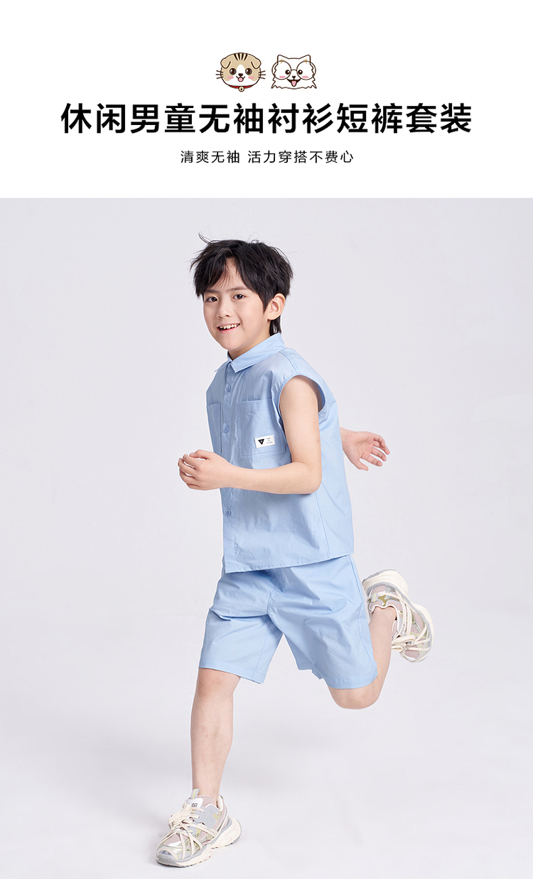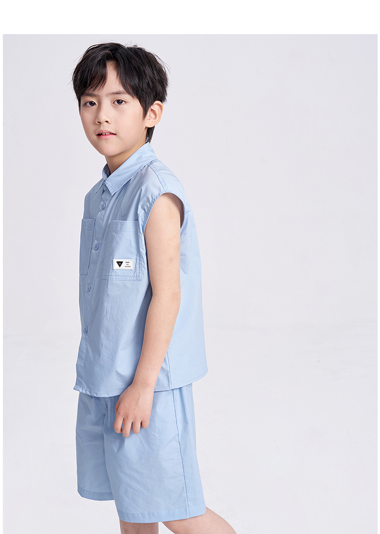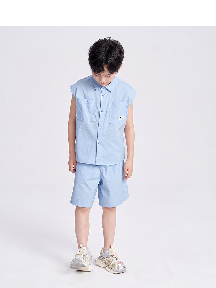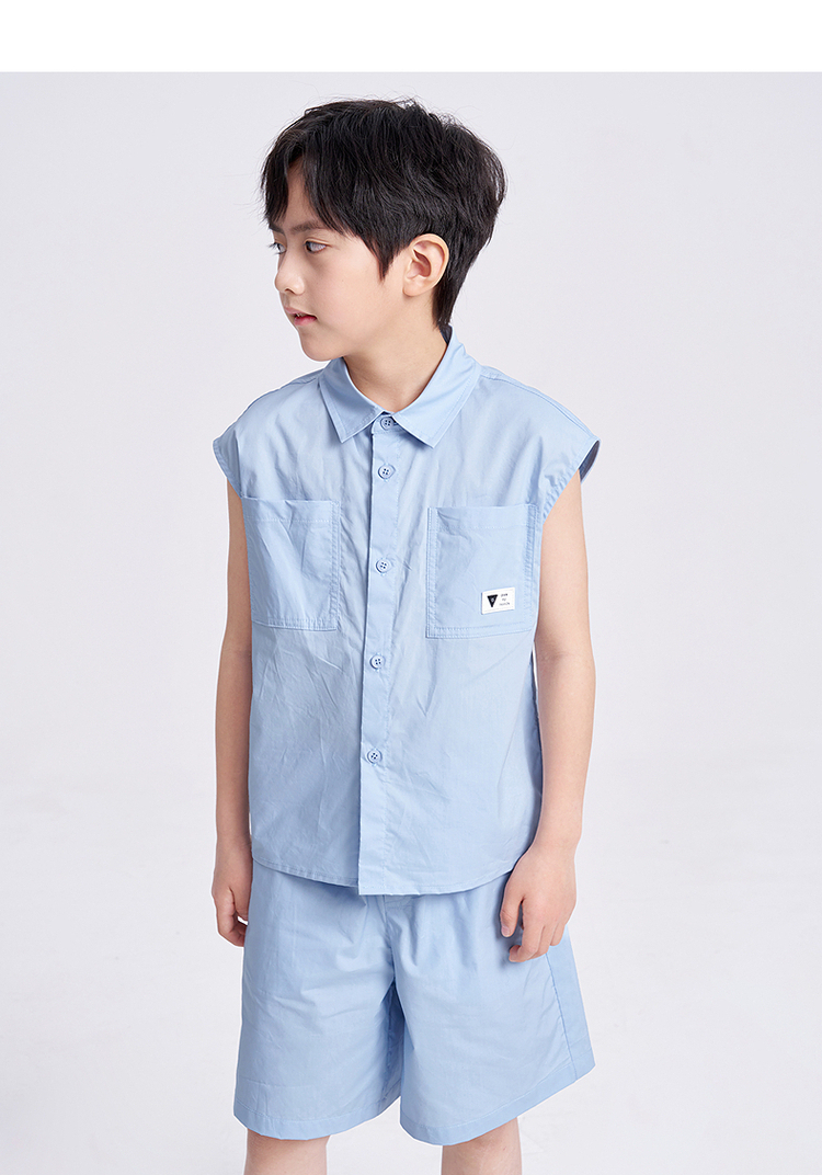 笛莎千与2025夏新款男童休闲无袖衬衫短裤套装