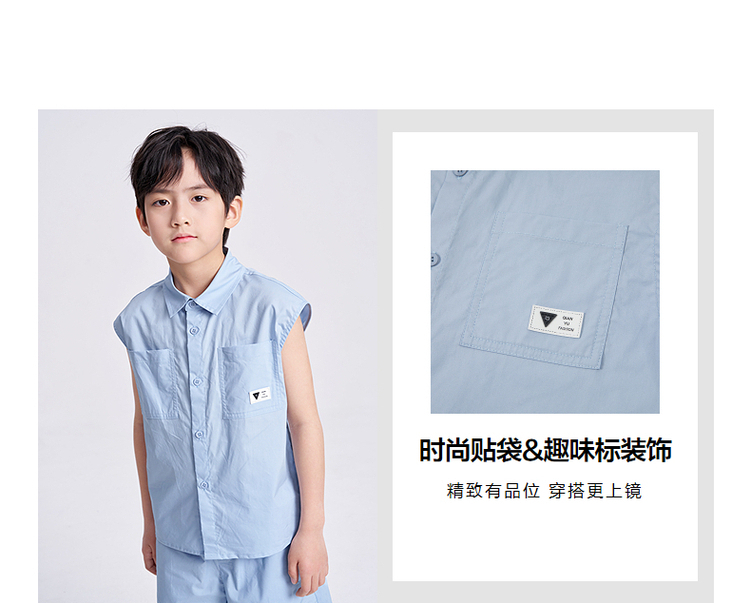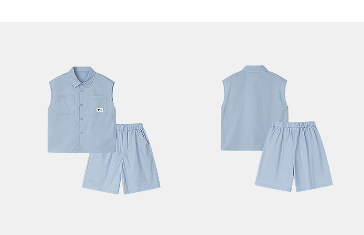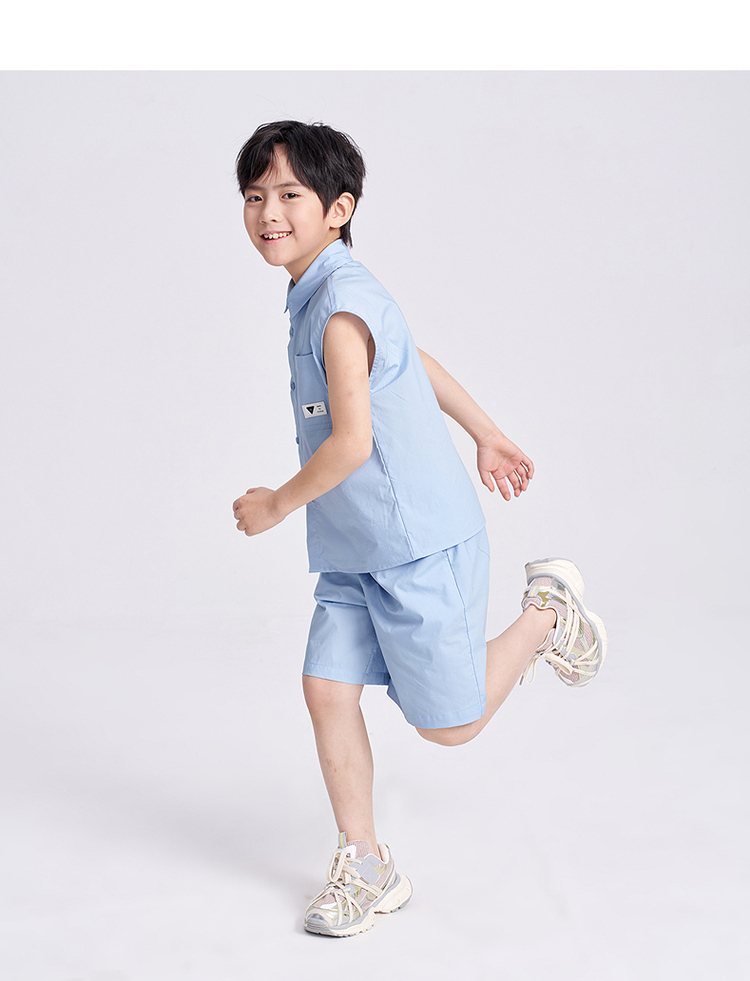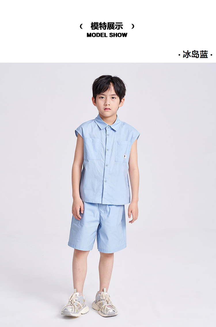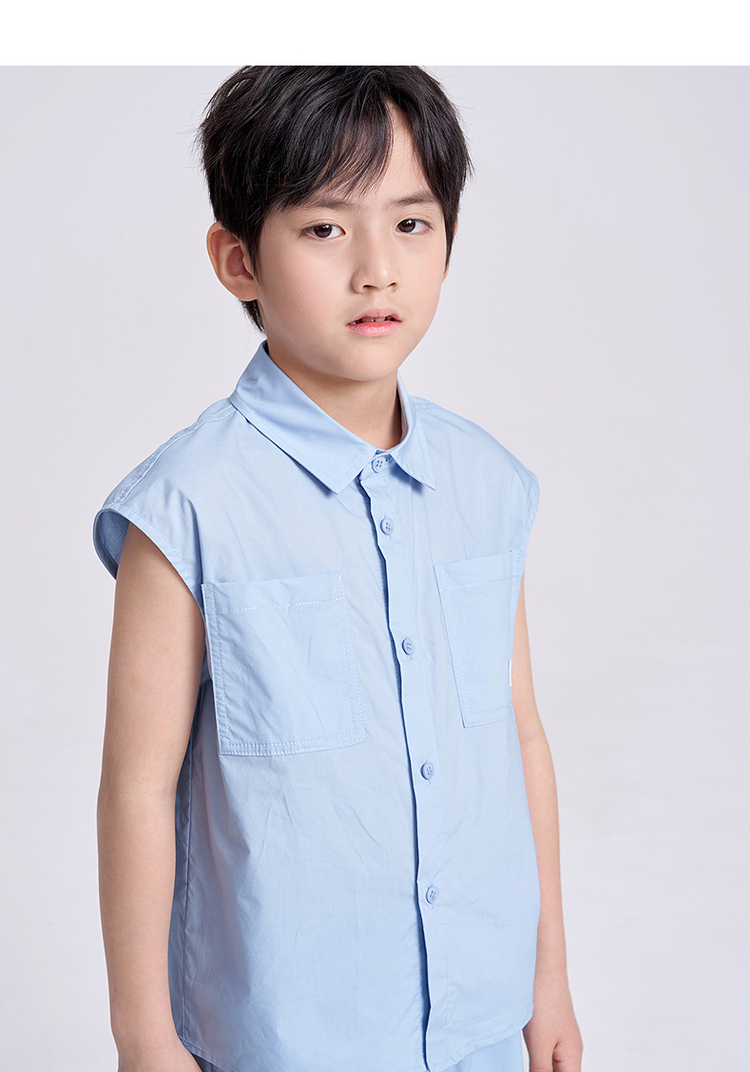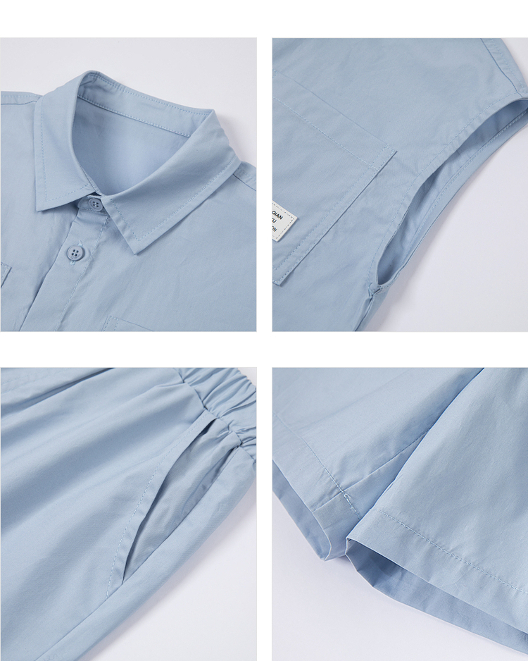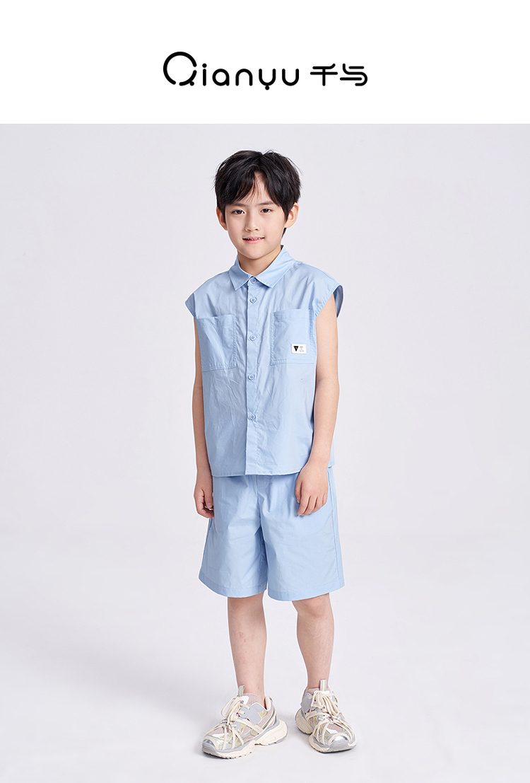 笛莎千与2025夏新款男童休闲无袖衬衫短裤套装