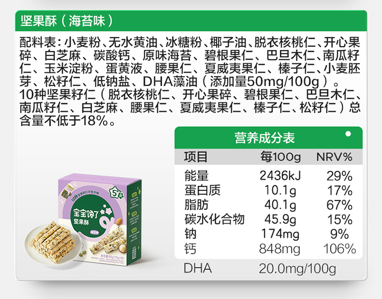 【宝宝馋了】坚果酥66g(蓝莓/原味/海苔/蔓越莓) 酥软易咀嚼 送18月+婴幼儿食谱