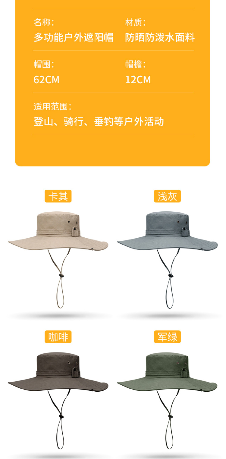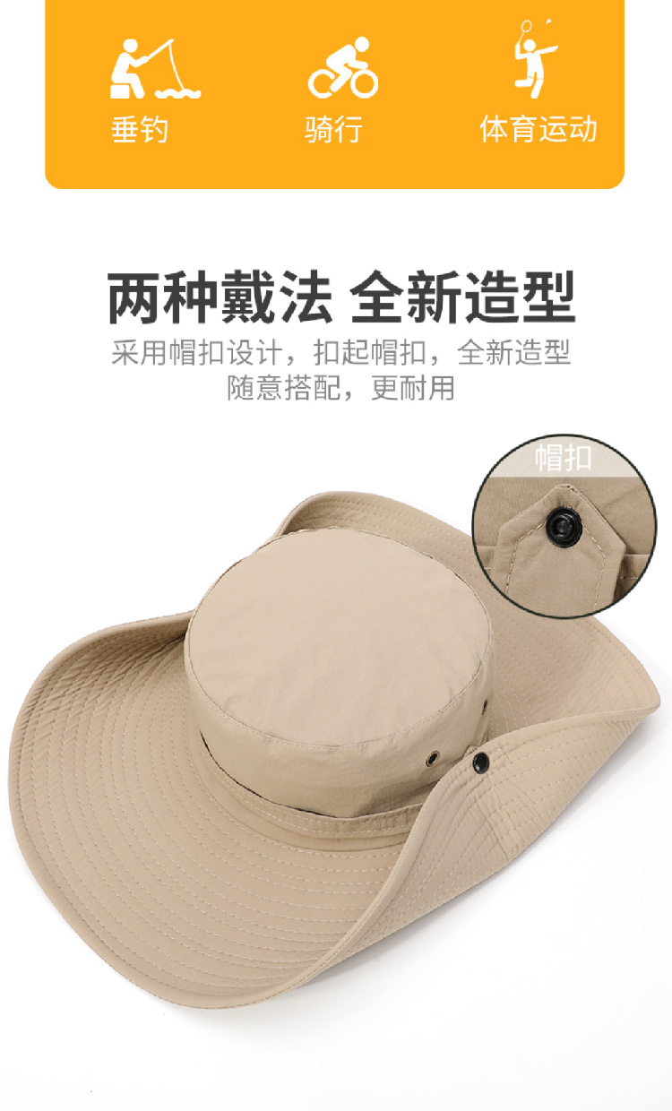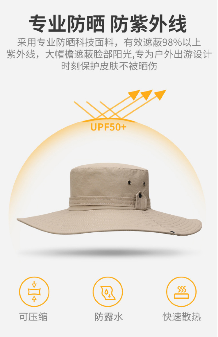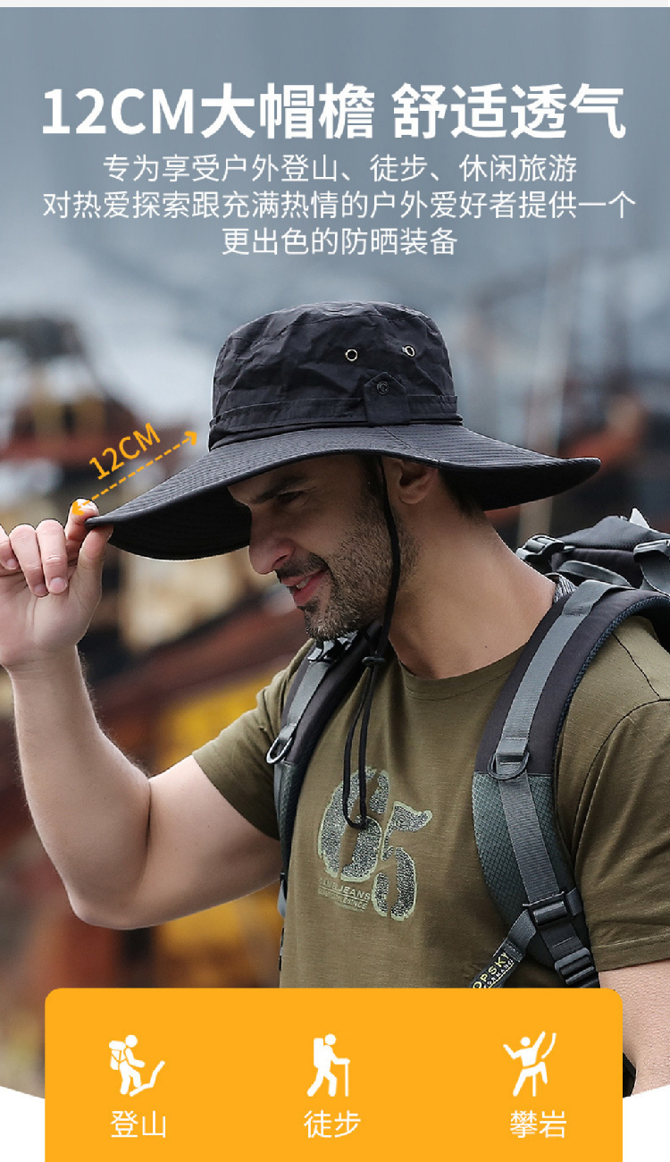 【户外大帽檐防晒帽】男士夏季遮阳渔夫帽男防晒 防紫外线户外钓鱼防水速干透气