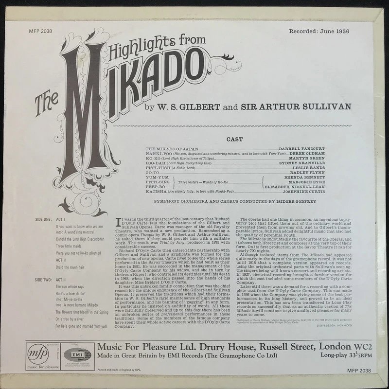LP黑胶唱片 吉尔伯特和萨利文《来自<天皇>的精彩选段》 伊西多尔·戈弗雷指挥