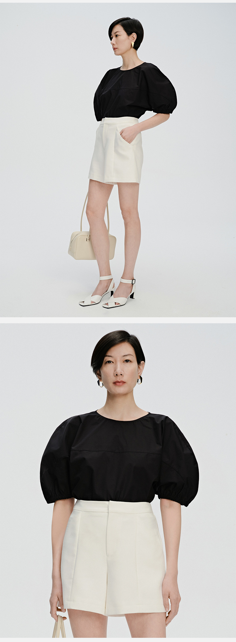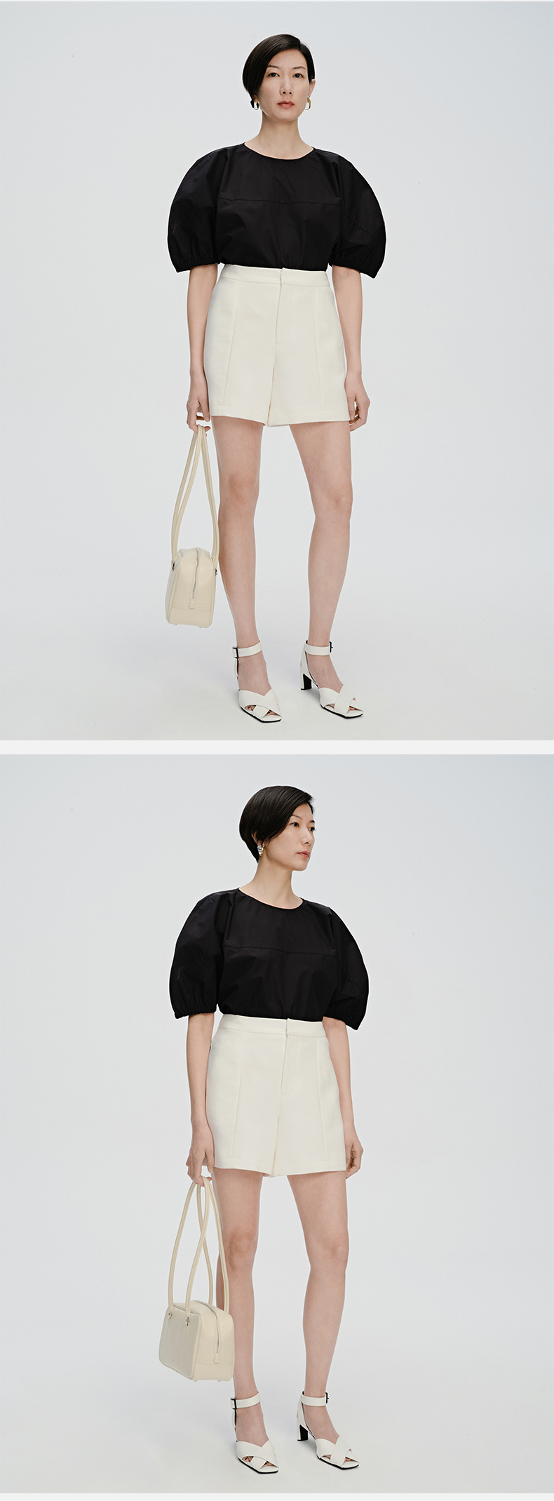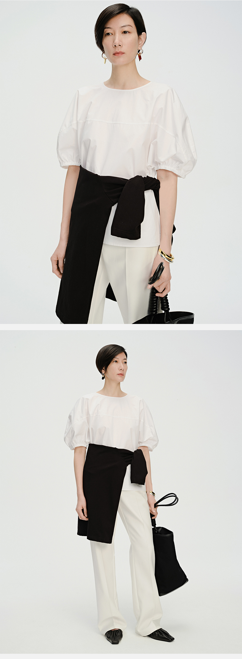 HIDEMI 简约廓形短袖设计感自然棉质衫衬上衣 白色/黑色