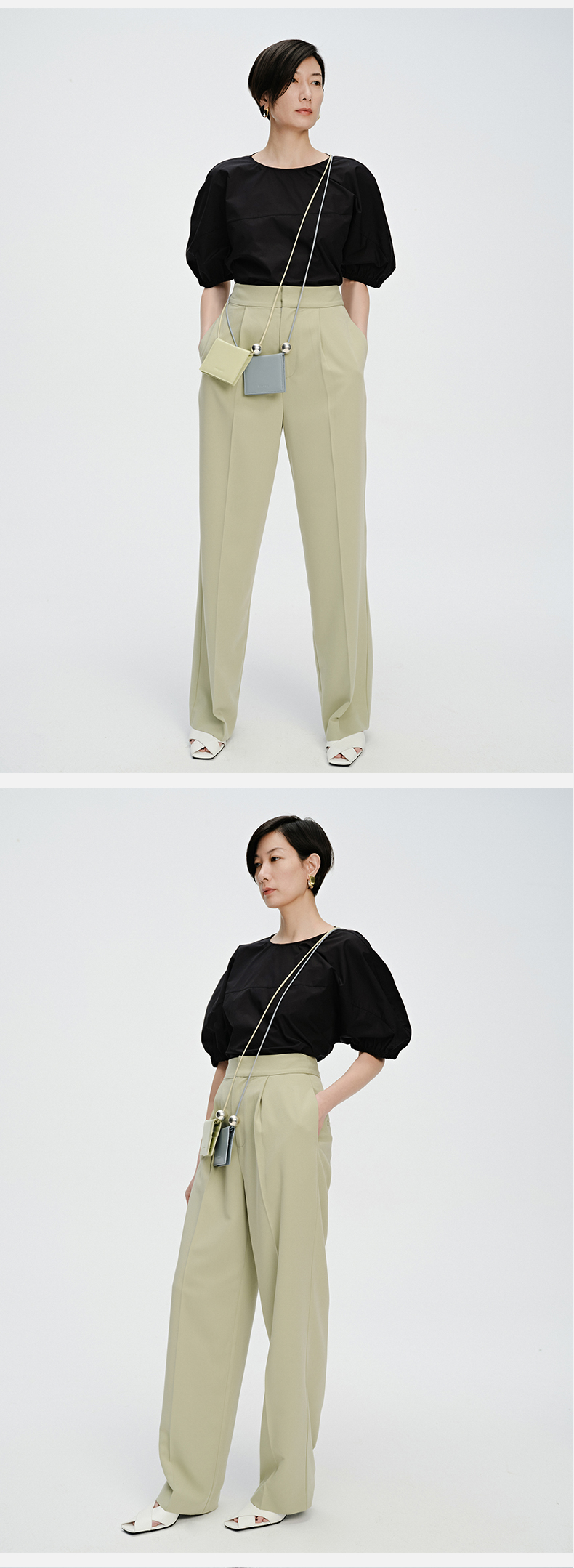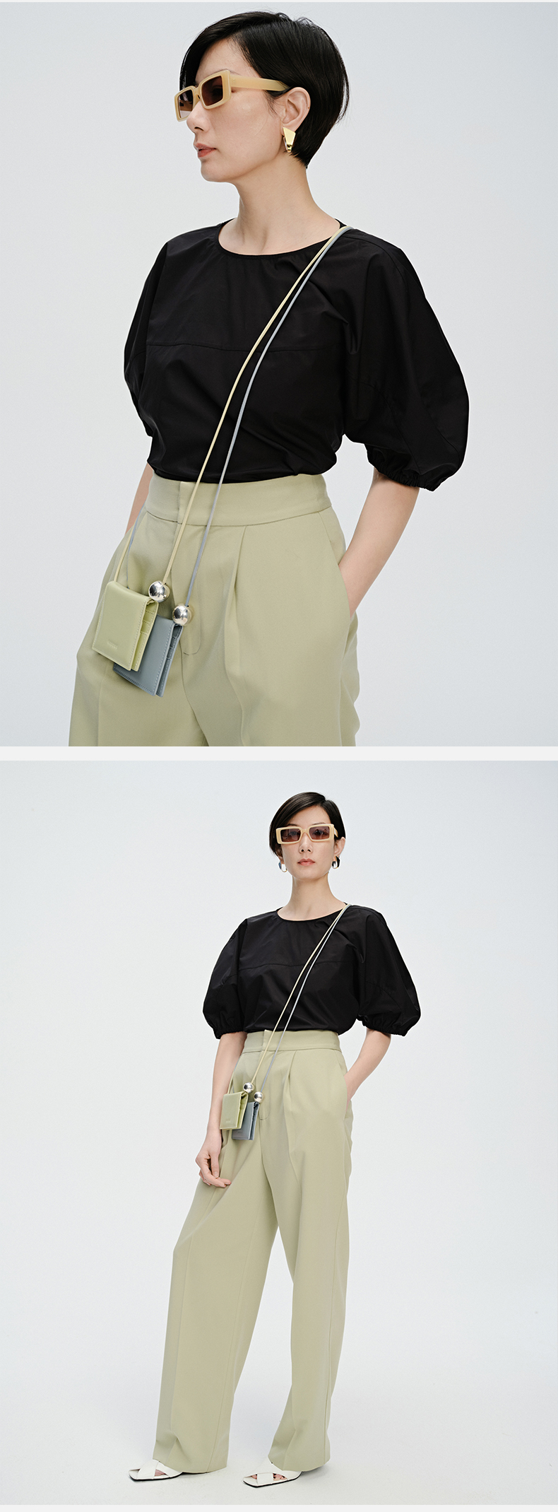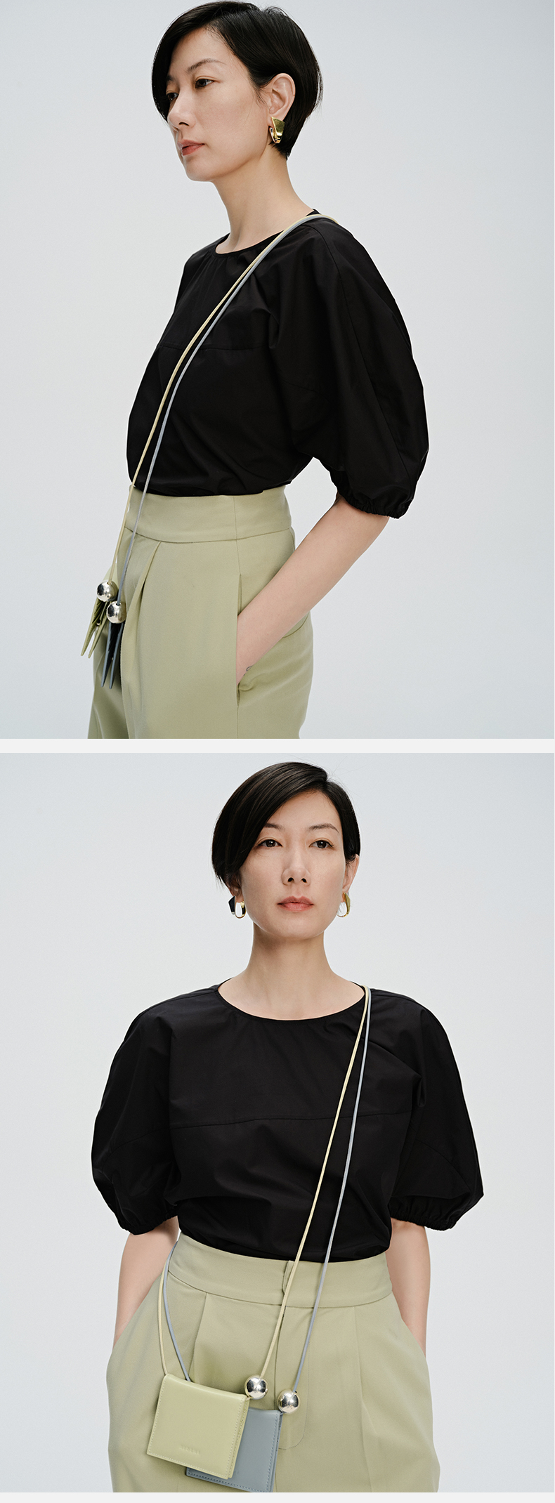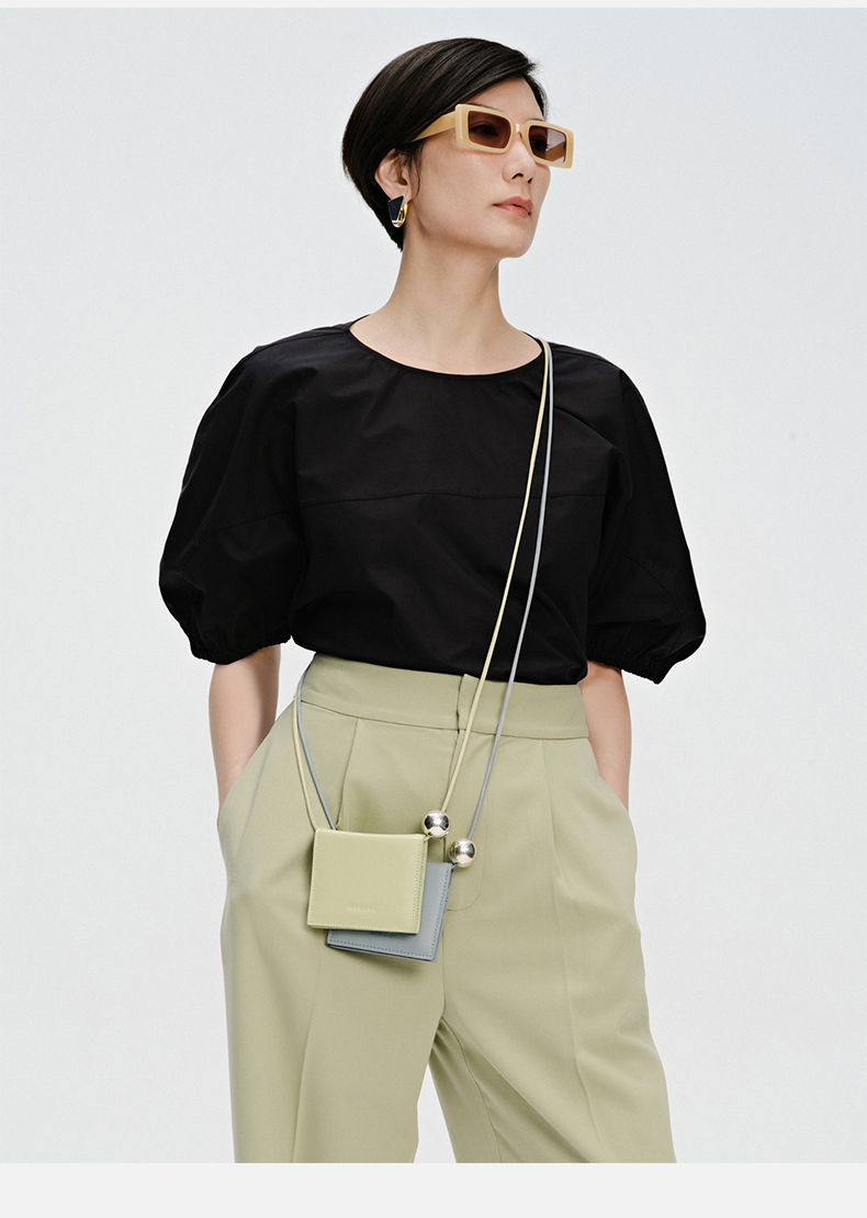 HIDEMI 简约廓形短袖设计感自然棉质衫衬上衣 白色/黑色