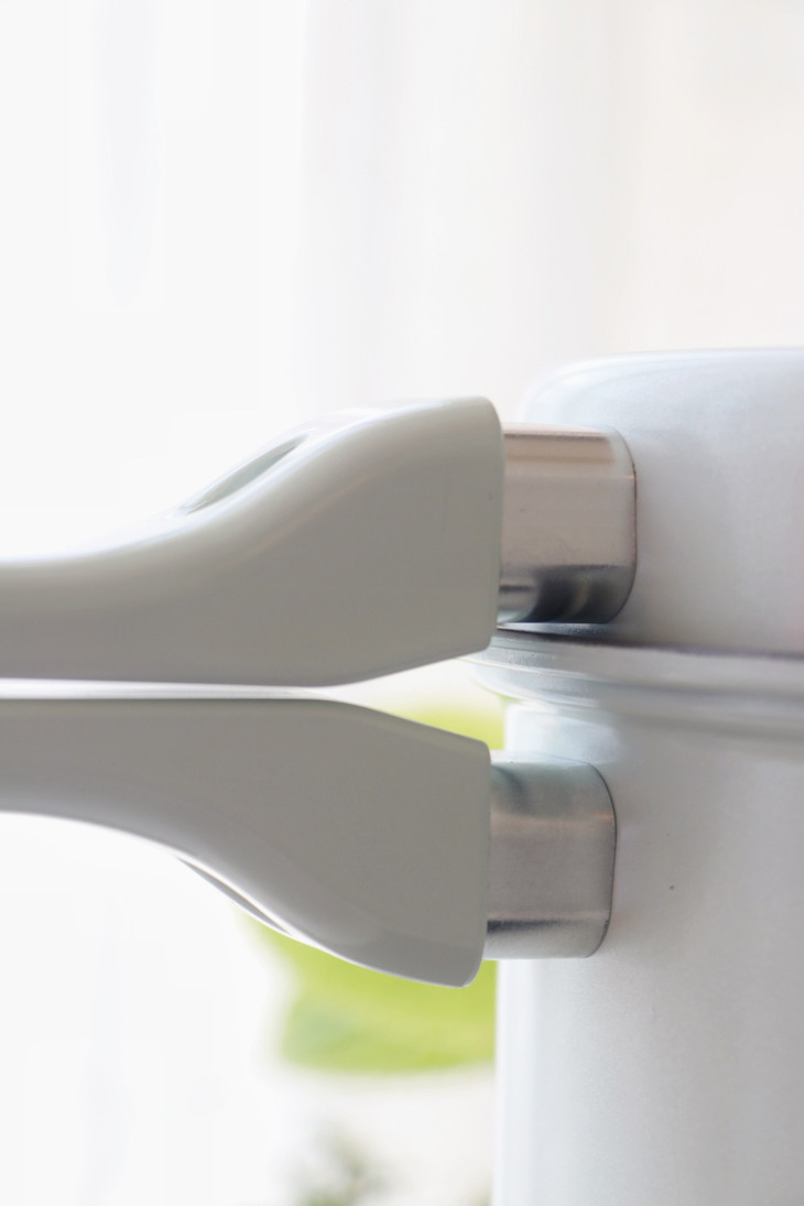 符合人体工学设计的锅手柄 防烫隔热,更好拿握 可以单手握持煮牛奶 还能左右开弓煎炒 沾油也不打滑,颠锅更稳当!