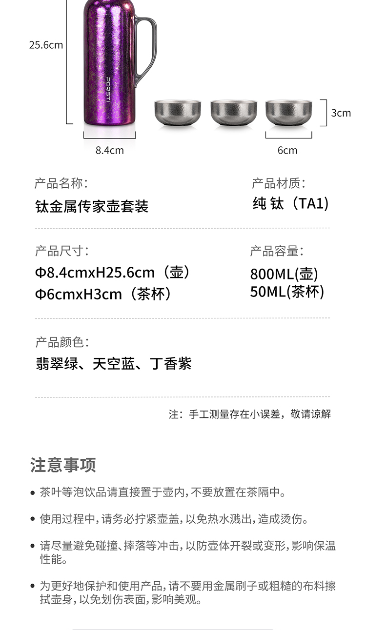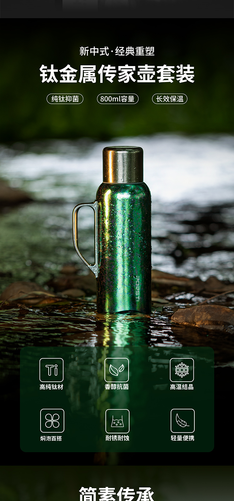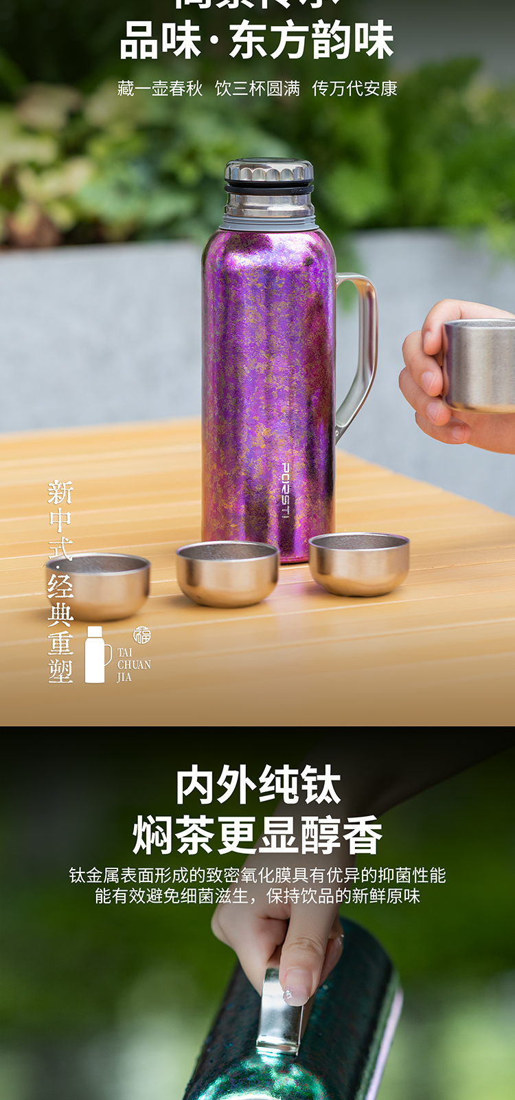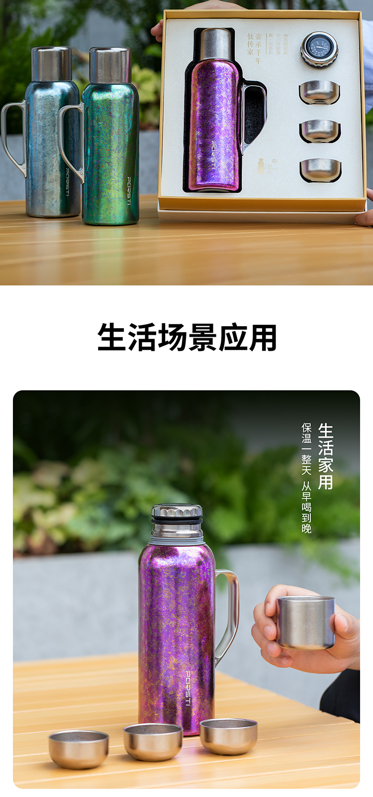 【钛壶传家】PORSTI宝石太·钛金属传家壶套装一壶三杯居家户外露营便携大容量