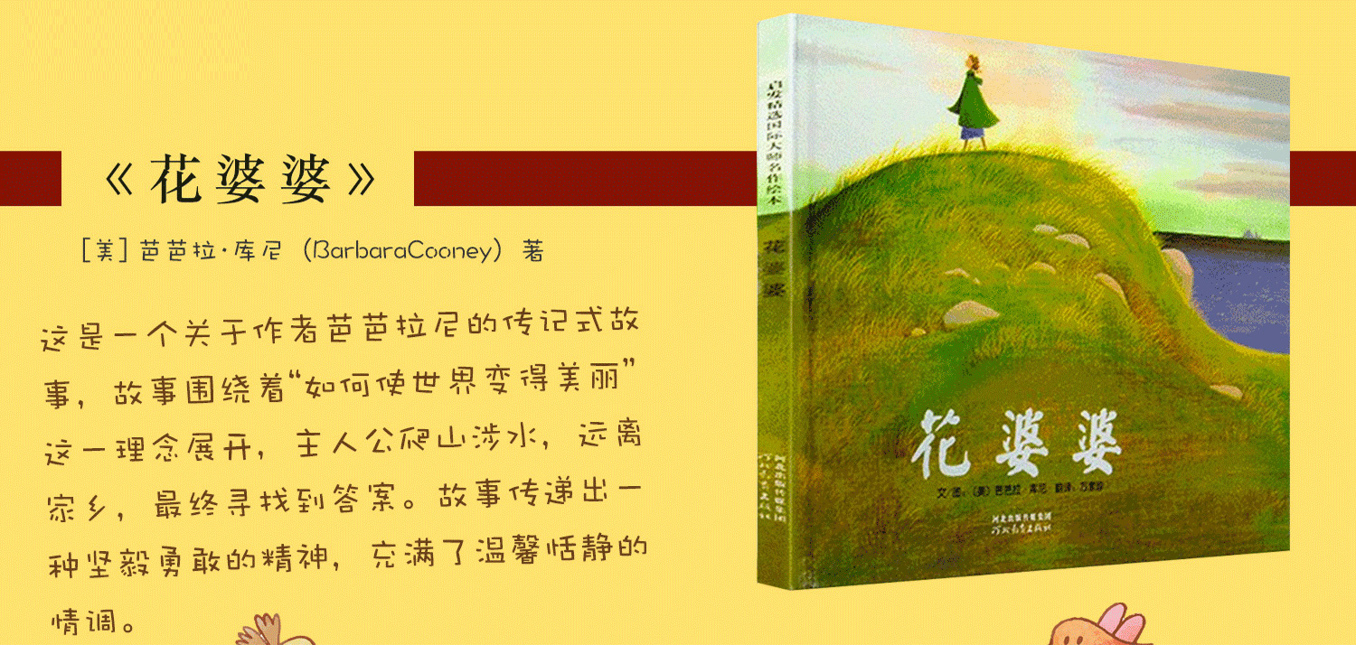 我们不仅看到精彩的图文合作,也看到作品和作者合而为一时,会产生怎样动人的力量。 ——柯倩华 儿童文学翻译家 芭芭拉•库尼就像花婆婆一样喜欢旅行,更重要的是,她们都是努力让这个世界变得更美好的人,只是花婆婆选择种花,库尼选择创作图»画书。 ——宋珮 台湾中原大学人文学院讲师 |