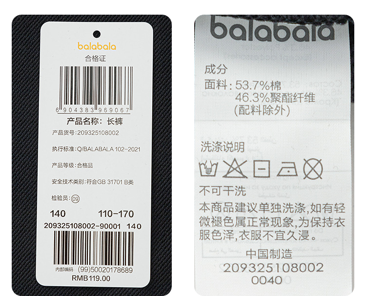 巴拉巴拉童装儿童裤子女童长裤2025秋季新款大童束脚卫裤时尚舒适