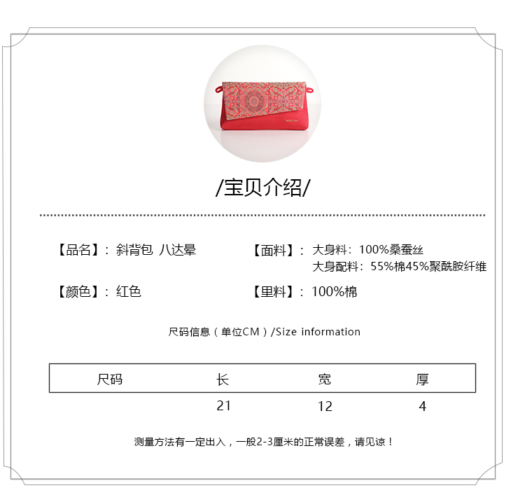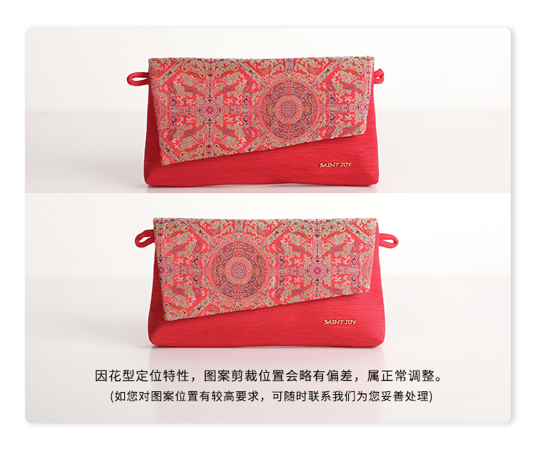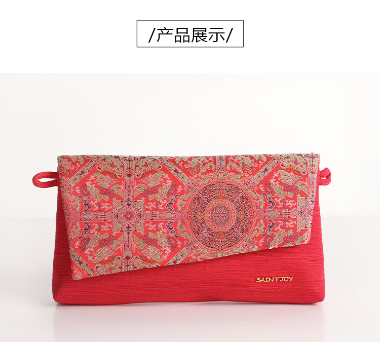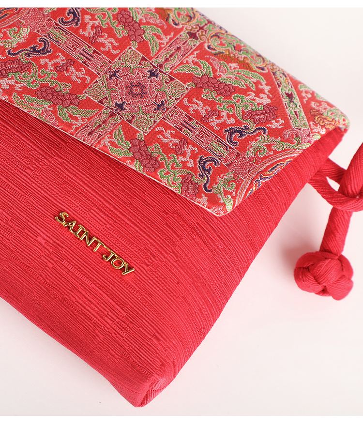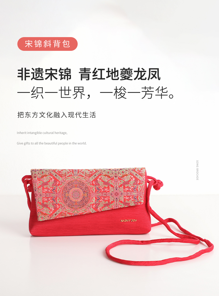 SAINTJOY/上久楷宋锦斜背包 青红地夔龙凤纹锦 红色 XB3B095208003
