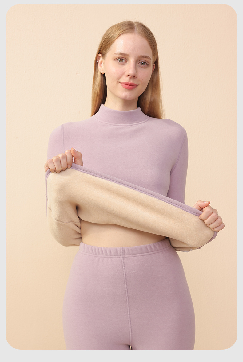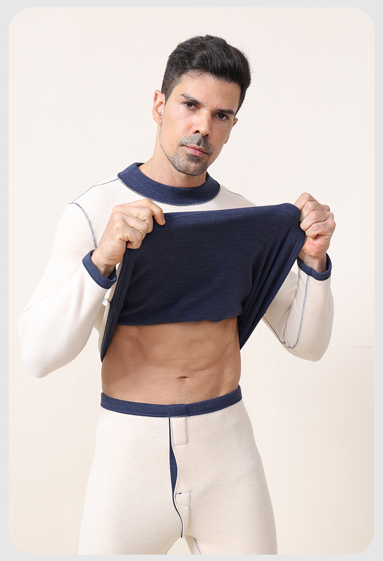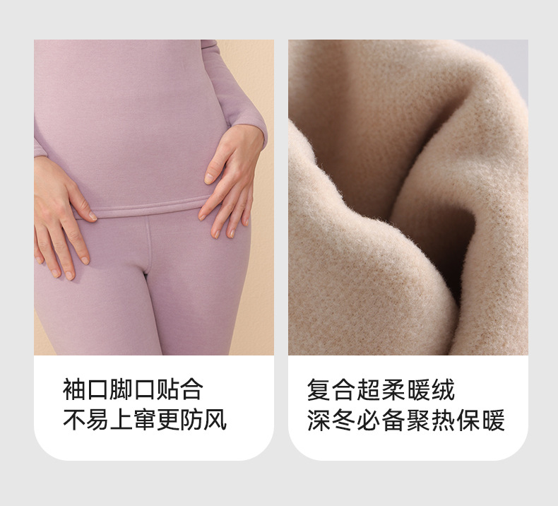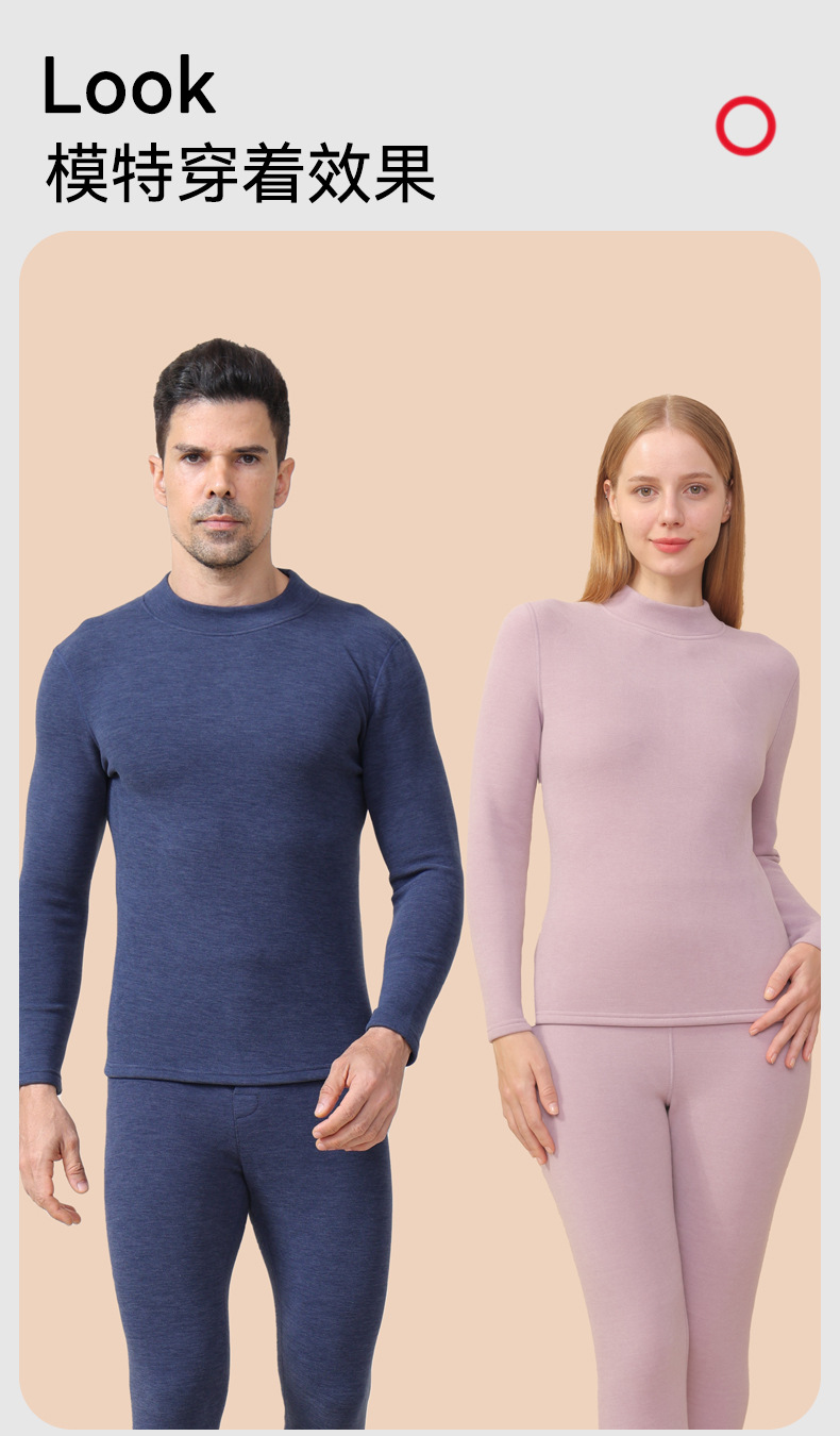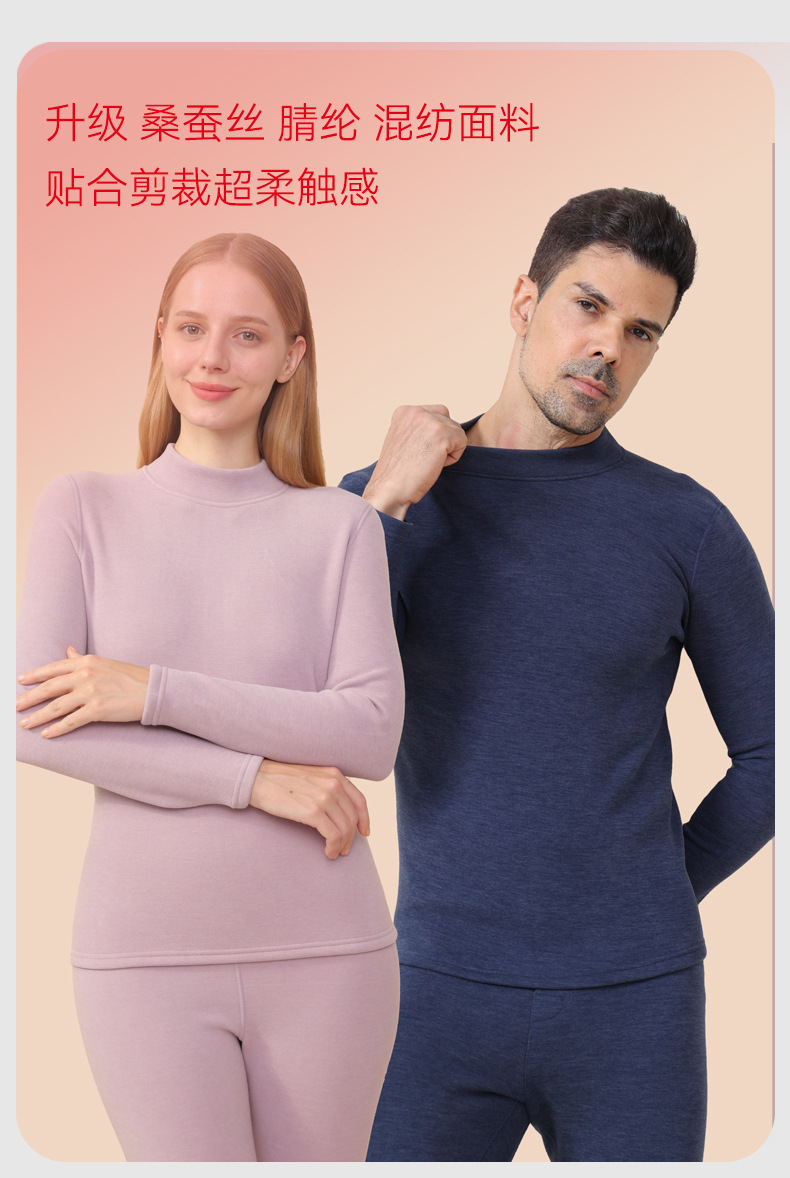 【大牌高品质】7A抗菌半高领羊绒蚕丝保暖内衣 男女加绒加厚冬季发热情侣保暖套装