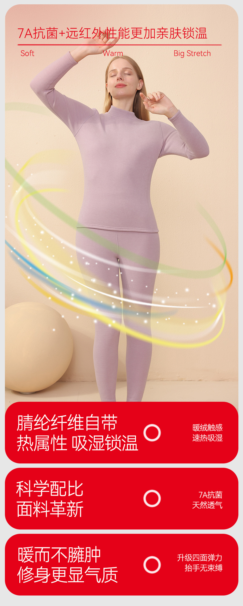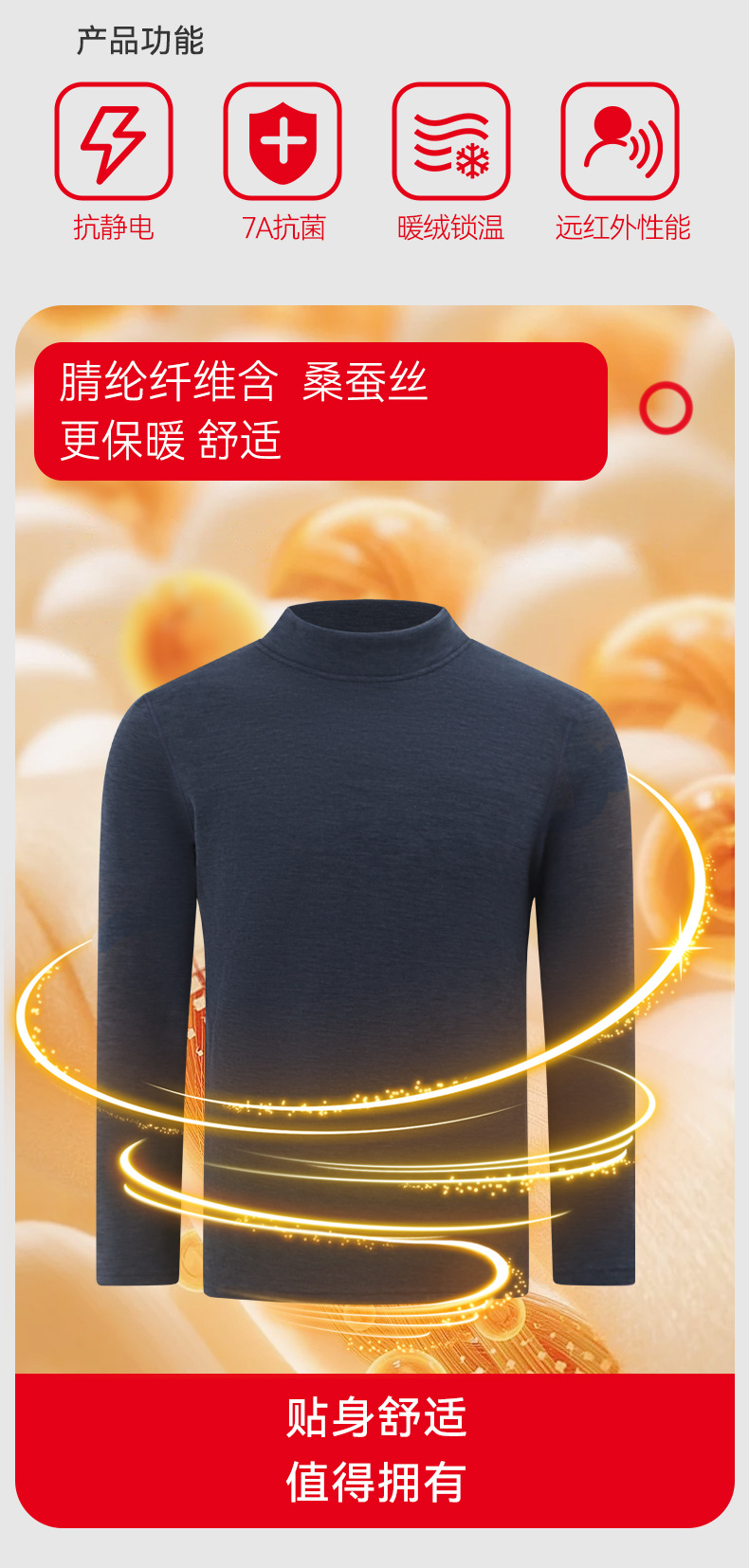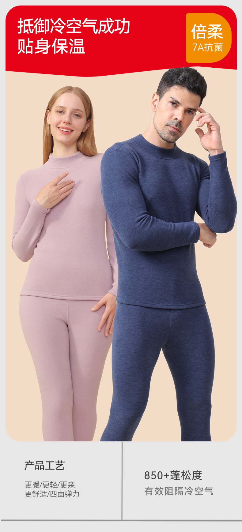 【大牌高品质】7A抗菌半高领羊绒蚕丝保暖内衣 男女加绒加厚冬季发热情侣保暖套装