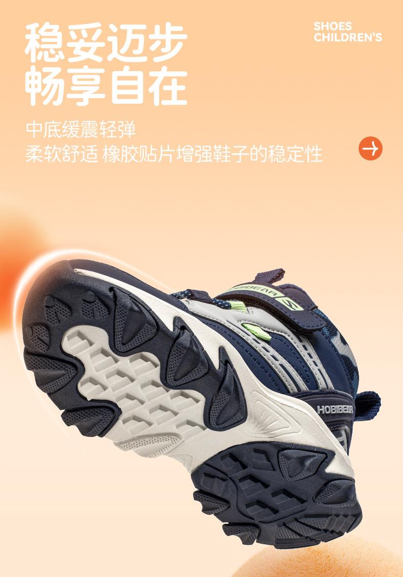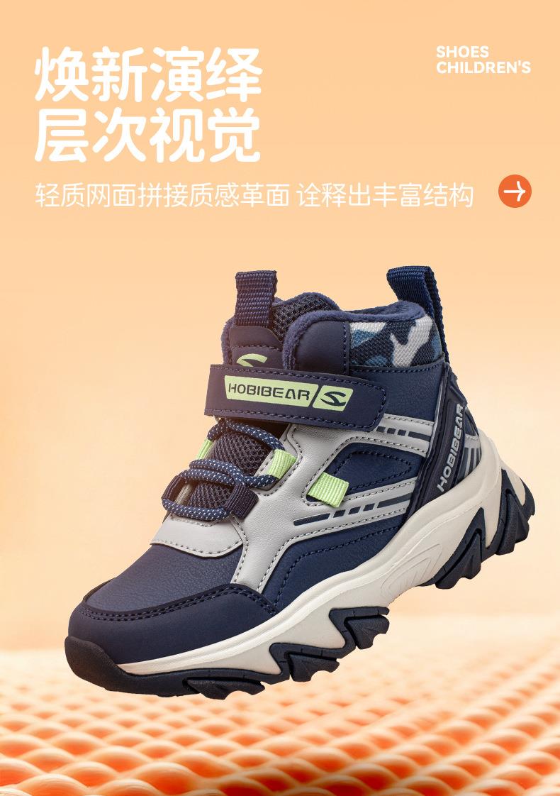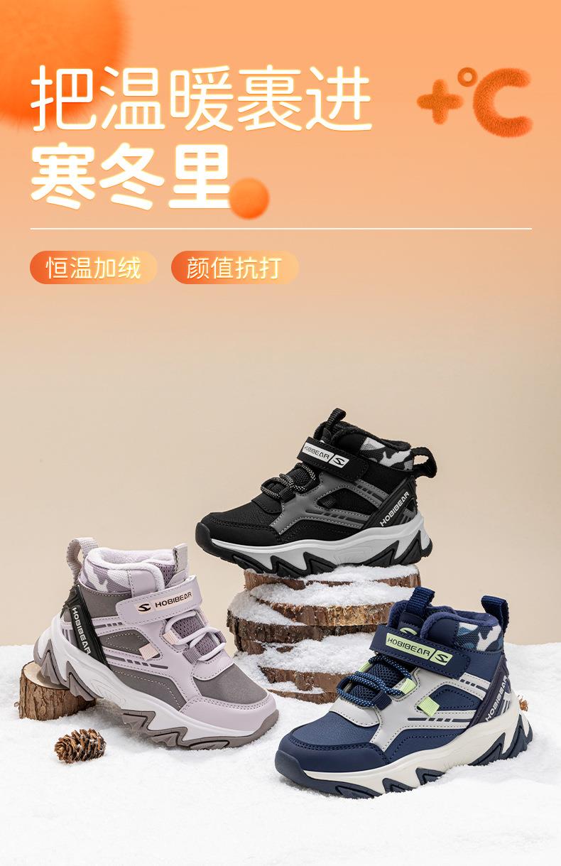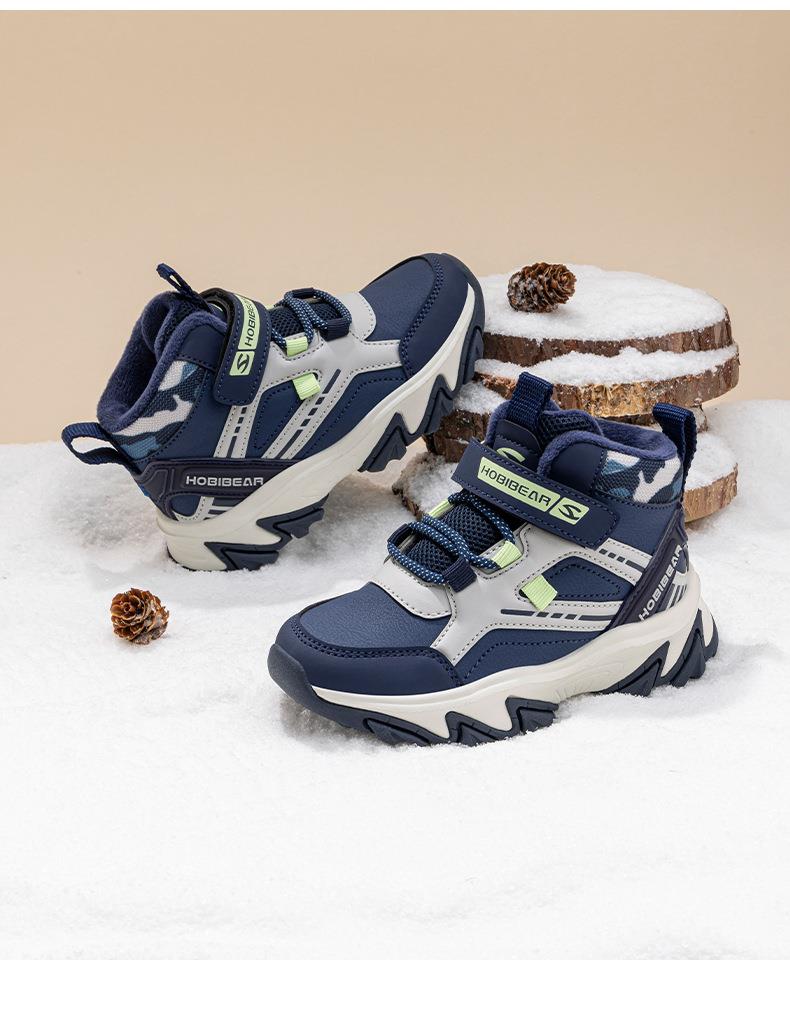 哈比熊加绒男童冬季二棉保暖高帮运动鞋户外日常轻便短靴