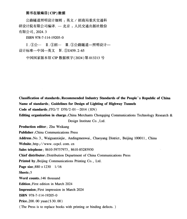 书名:公路隧道照明设计细则(英文版)[JTG/T D70/2-01—2014(EN)]
