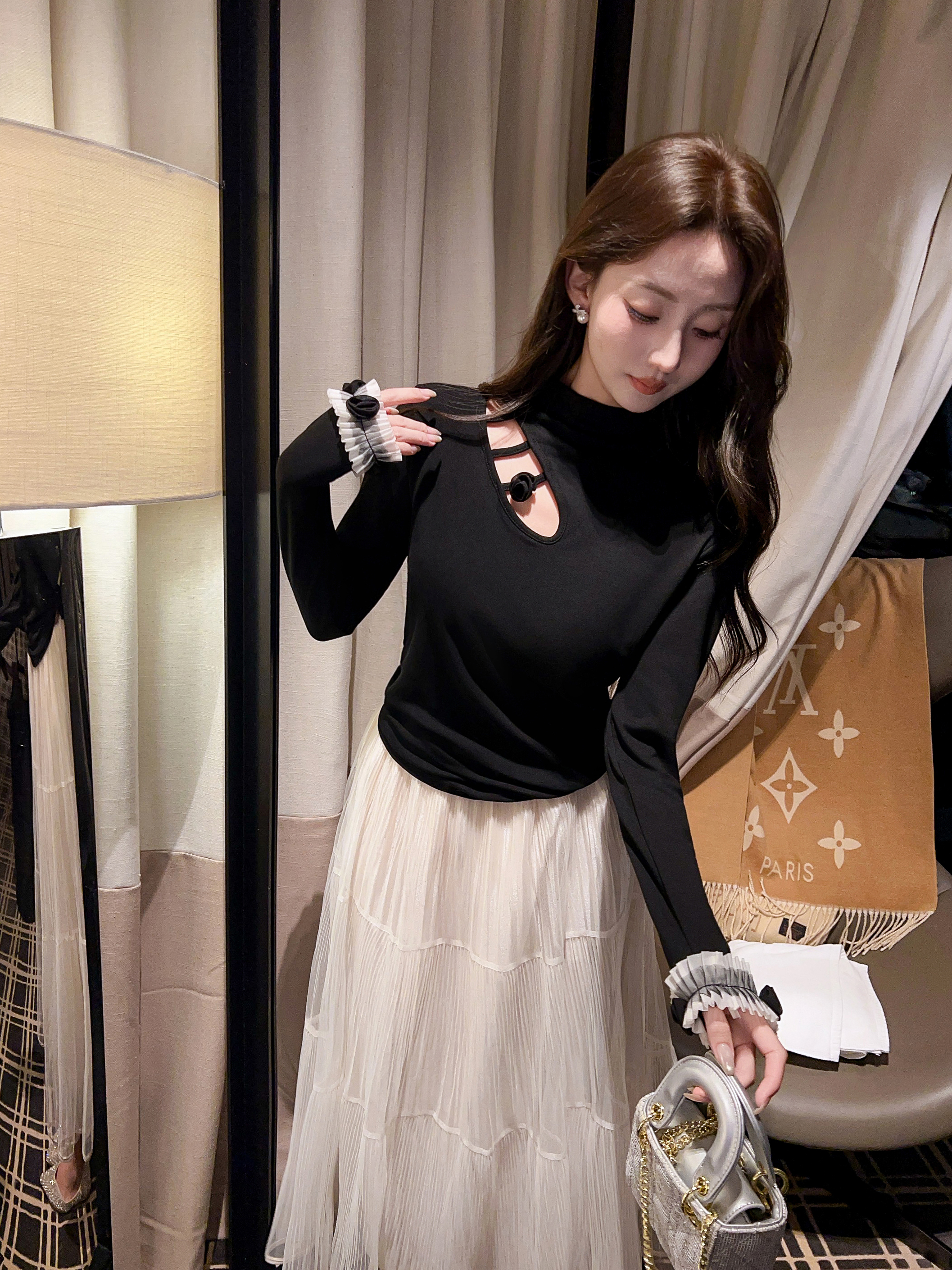 张心子【冬日开场】加绒高领镂空别致T恤女冬新款长袖内搭打底衫 U2601028