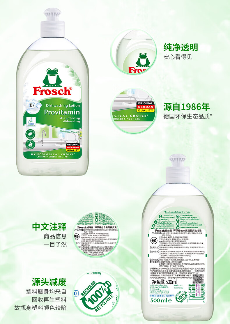 Frosch福纳丝 环保维他命果蔬餐具洗洁液500ml