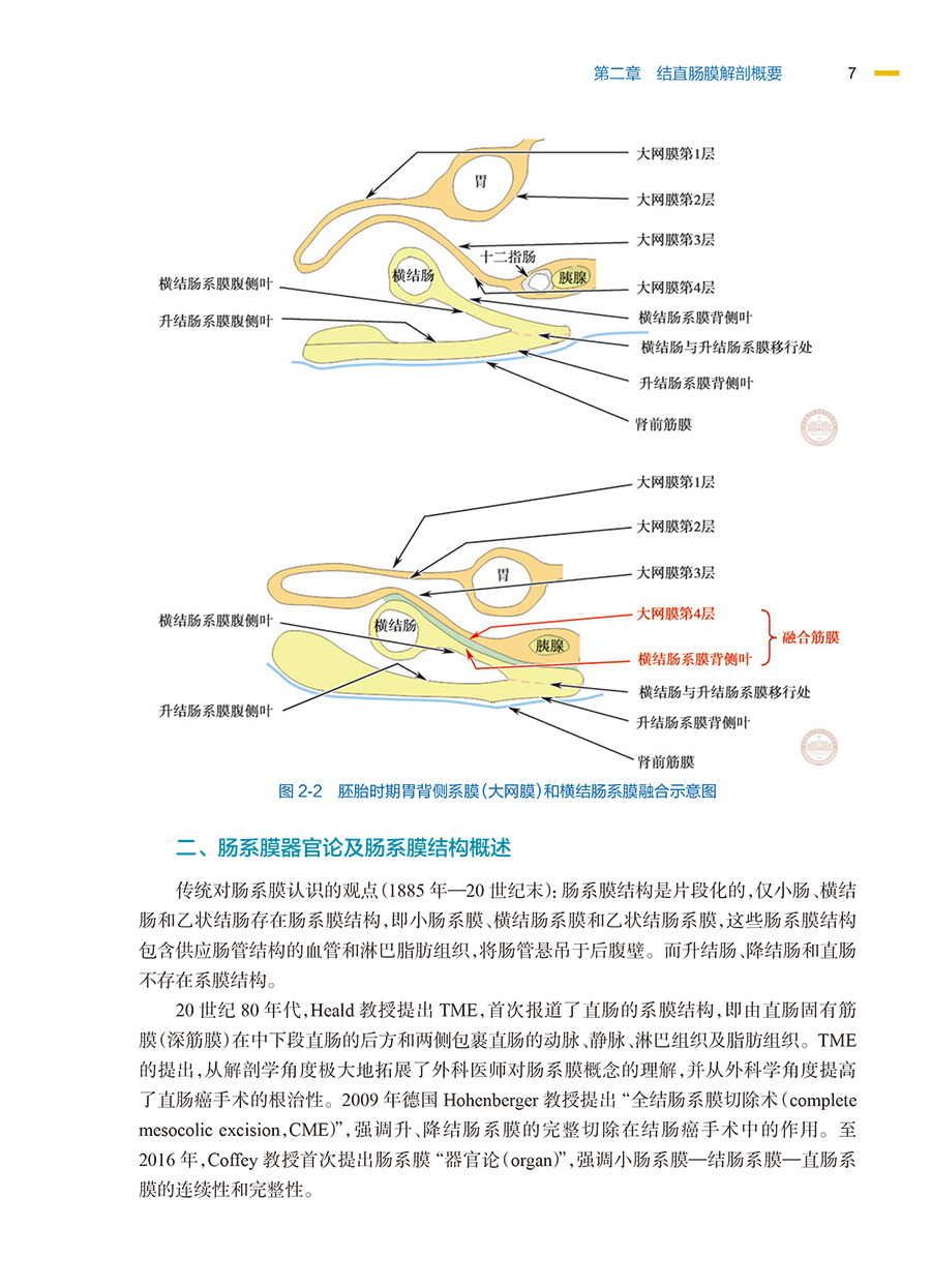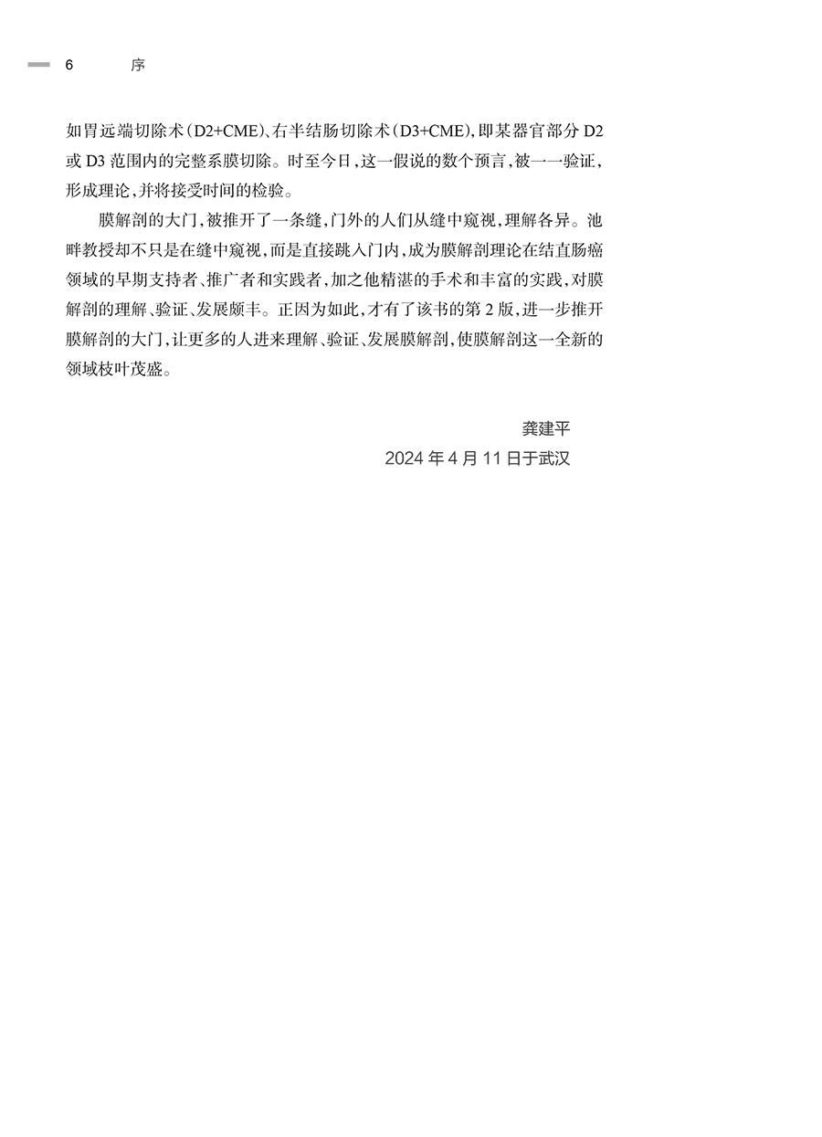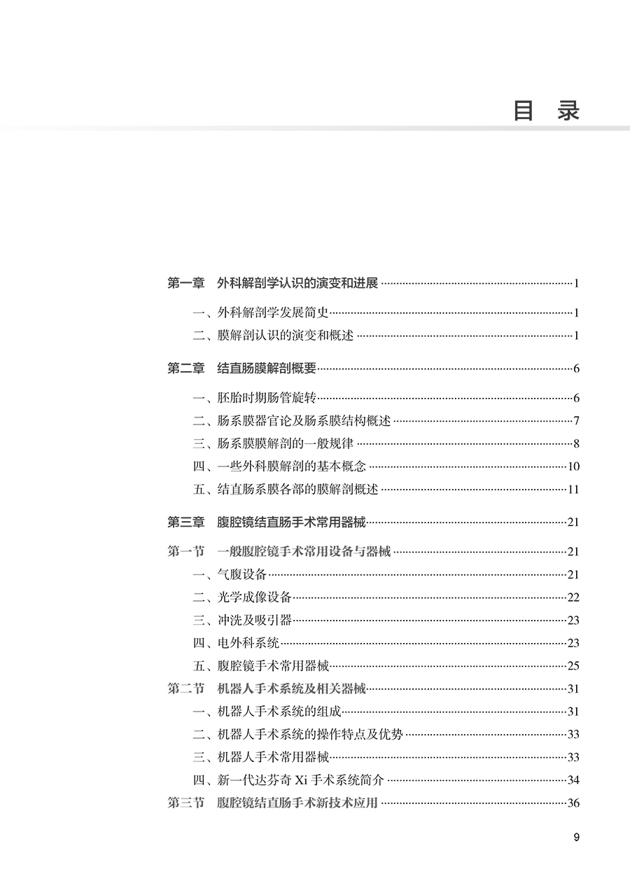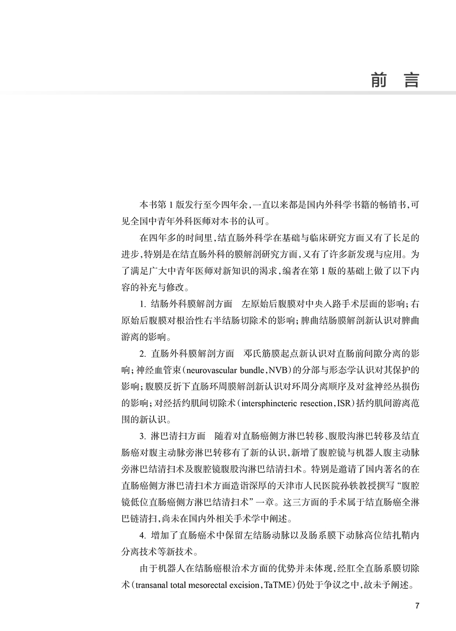 本专著第1版是国内第一部基于膜解剖的腹腔镜与机器人结直肠肿瘤手术学方面的专著,具有广泛的临床需求和读者群。出版以来,受到了业内学者的广泛赞誉。随着腹腔镜和机器人高清摄像系统的进步及微创手术技术的日趋完美,膜解剖相关手术技巧和解剖理念也获得了较大发展,许多既往模糊的膜解剖结构目前都获得了清晰的观察和阐述,并深刻地影响无出血或微出血膜解剖手术的稳定常态化开展。故拟从膜解剖基础、肿瘤学根治范围、临床手术学、淋巴结清扫等方面入手,更新修订第2版。