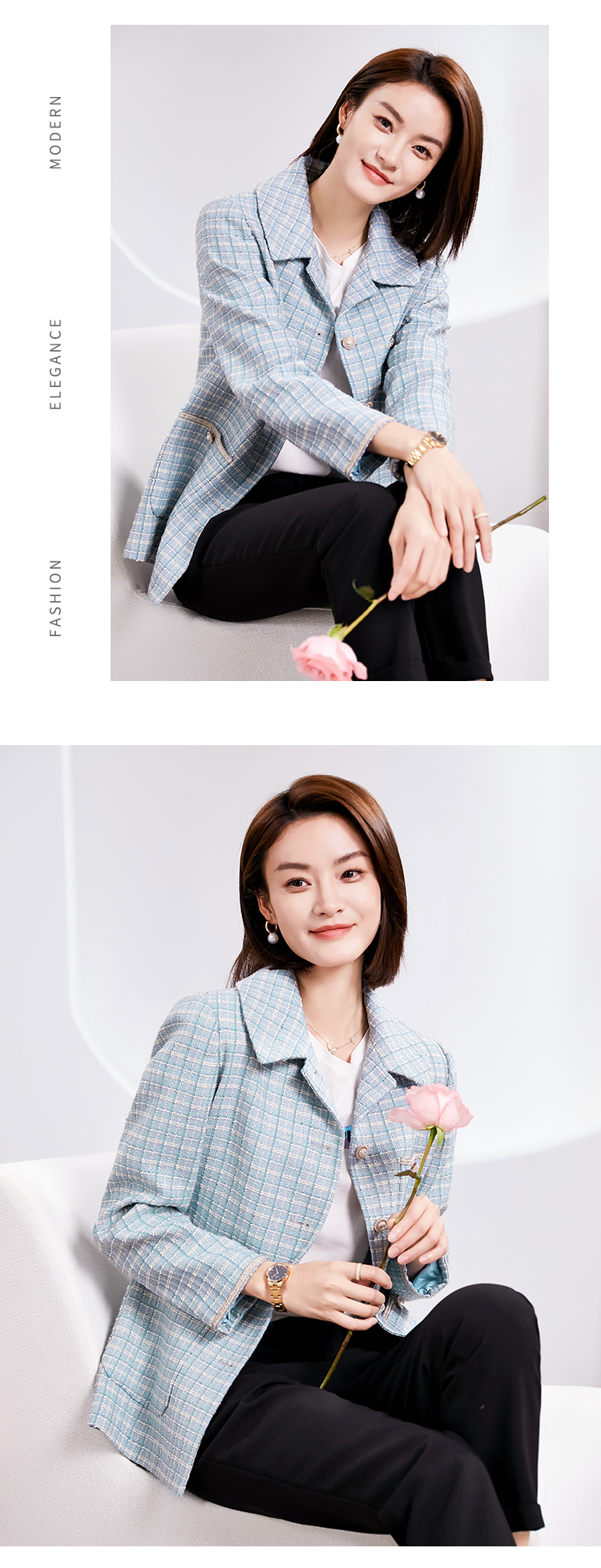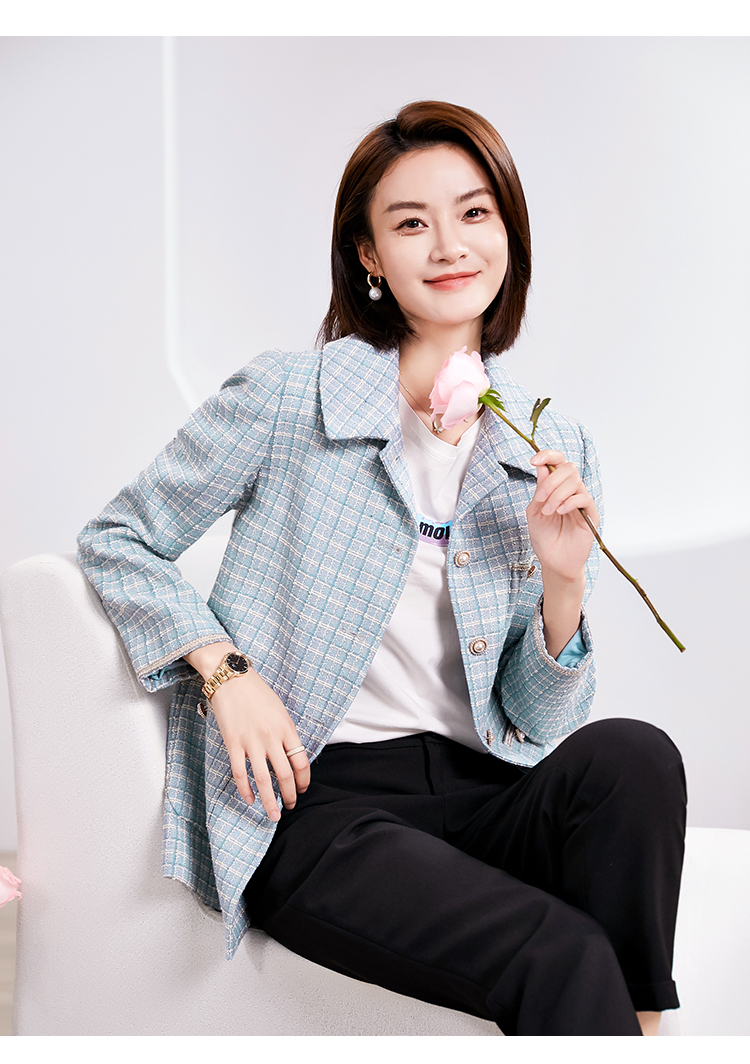 佐尔美春季新款 气质小香风千鸟格上衣外套女E33SO31