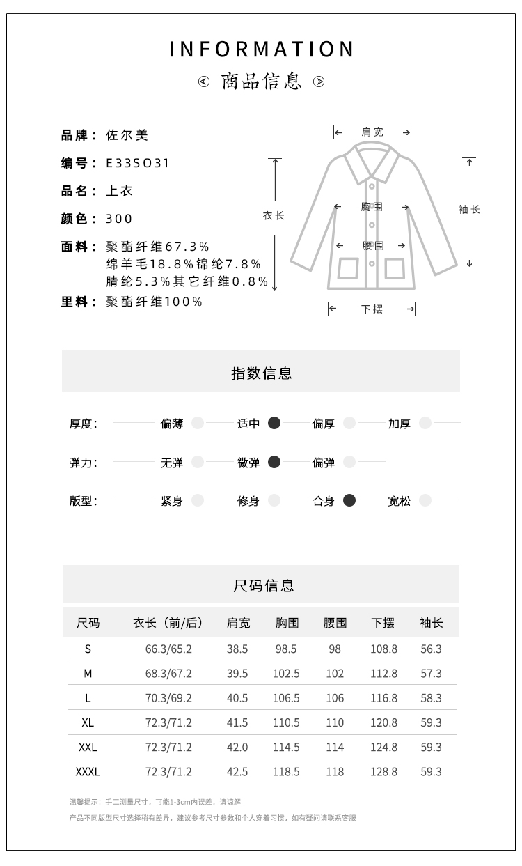 佐尔美春秋女装纯色修身显瘦中长OL风小西装外套风衣E71FZ18