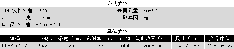 BP642/20k OD4 @200-900 T>85% φ12.7*6带通滤光片 (带套圈)