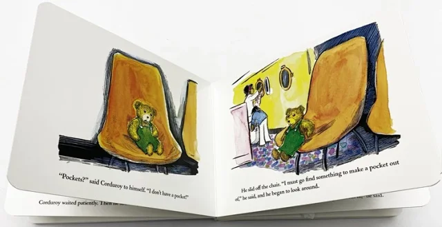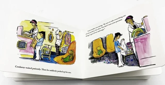 这个迷人的故事把读者带进了一家多民族、城市社区的自助洗衣店,Lisa的母亲警告她在洗衣服之前把口袋里的东西都拿出来。Corduroy四处寻找着自己的口袋,他踏上充满洗衣店的景象、声音、气味和危险的冒险之旅。结果,丽莎和她心爱的小熊分开了,因为灯芯绒被锁在洗衣店里一整夜。Corduroy最后能和Lisa团聚吗?