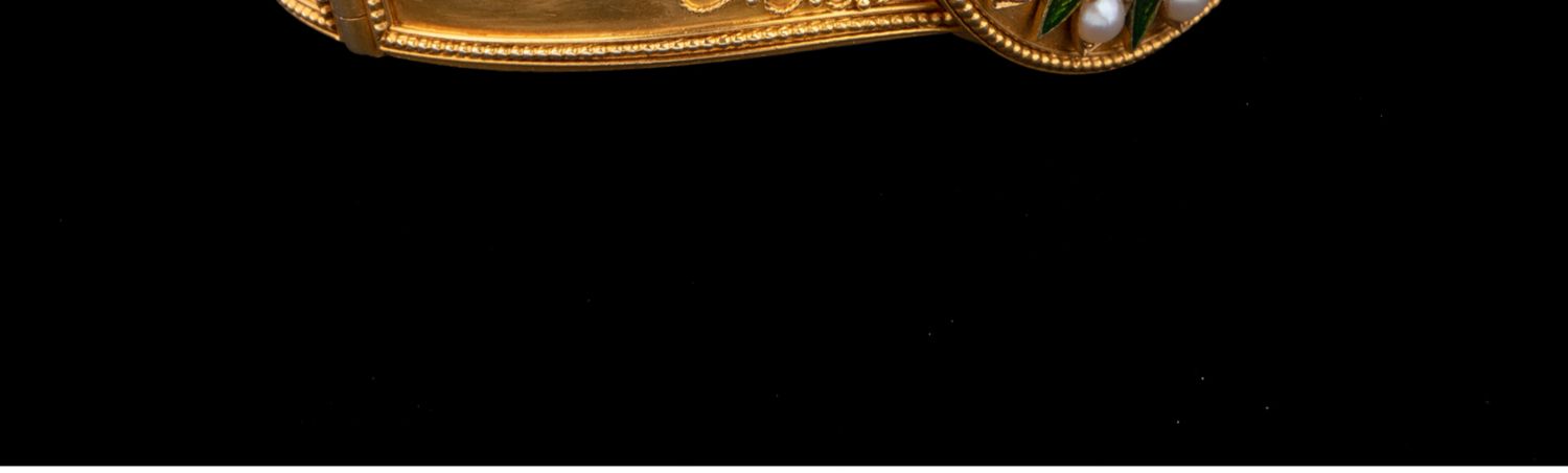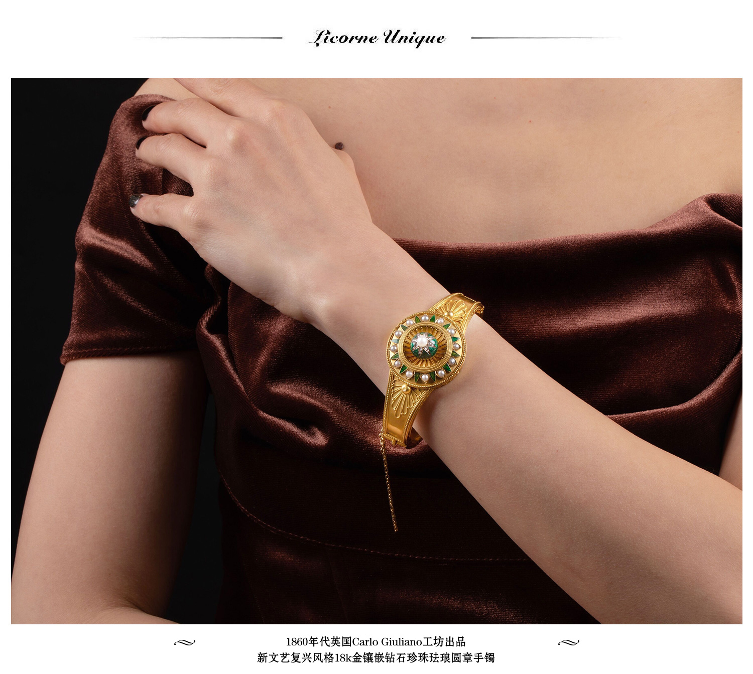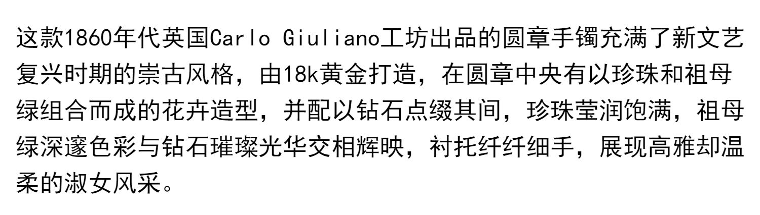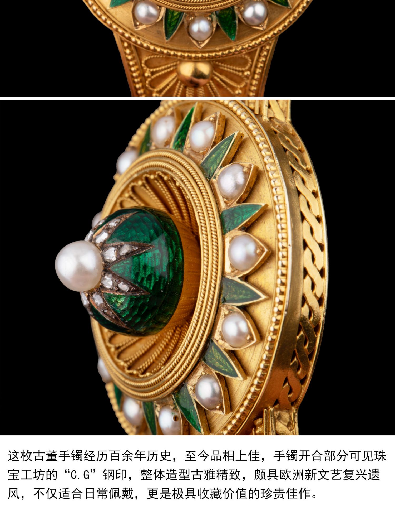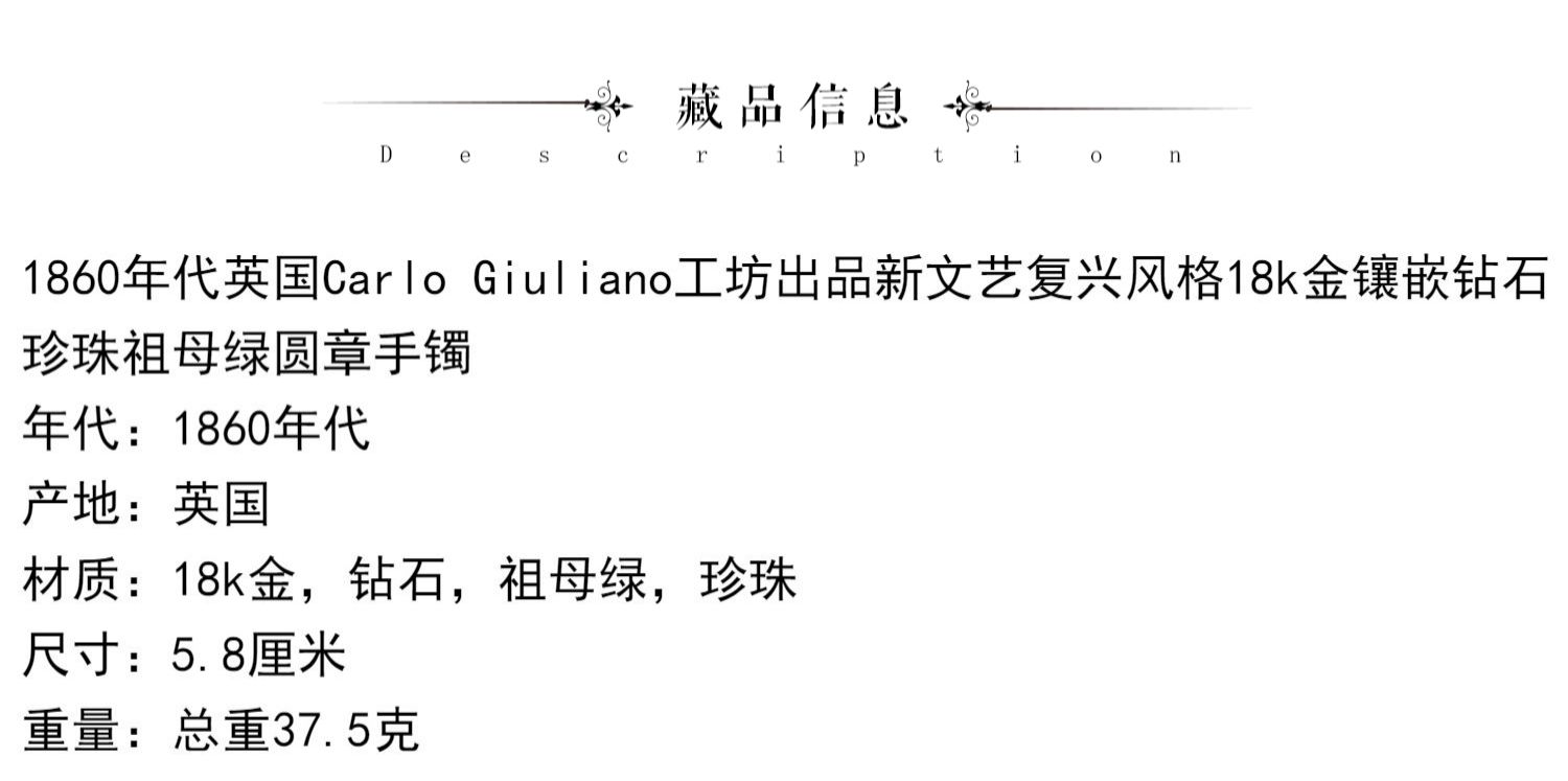 独角鹿西洋古董珠宝首饰C.G工坊18k金镶嵌钻石珍珠祖母绿圆章手镯
