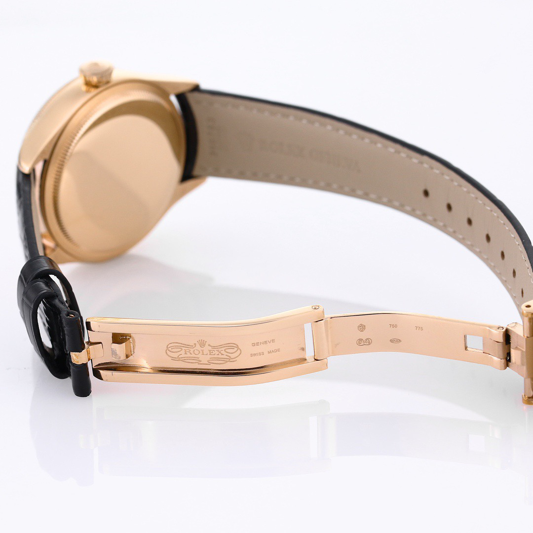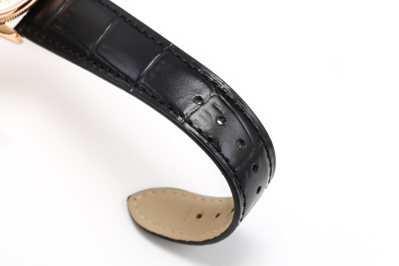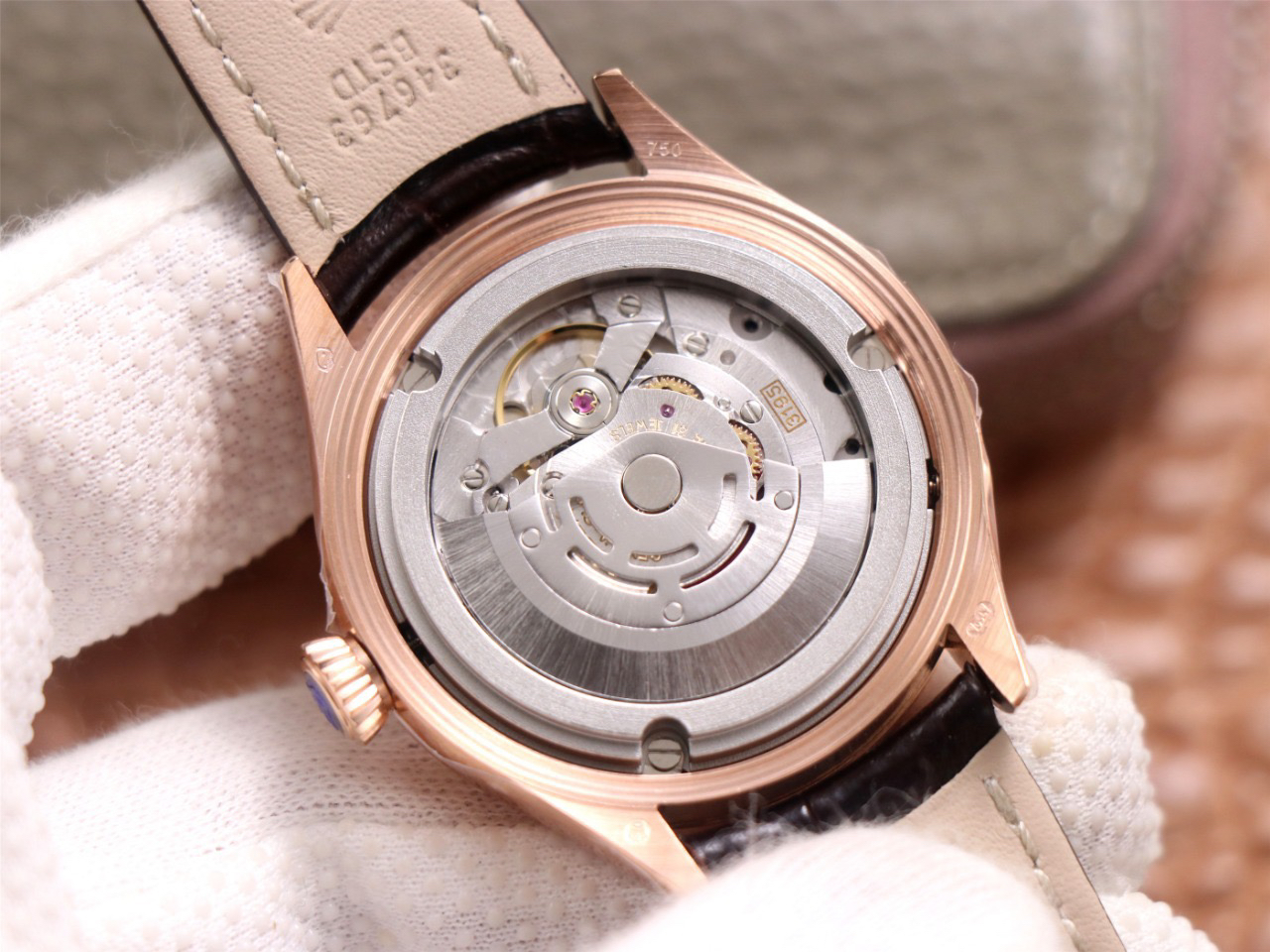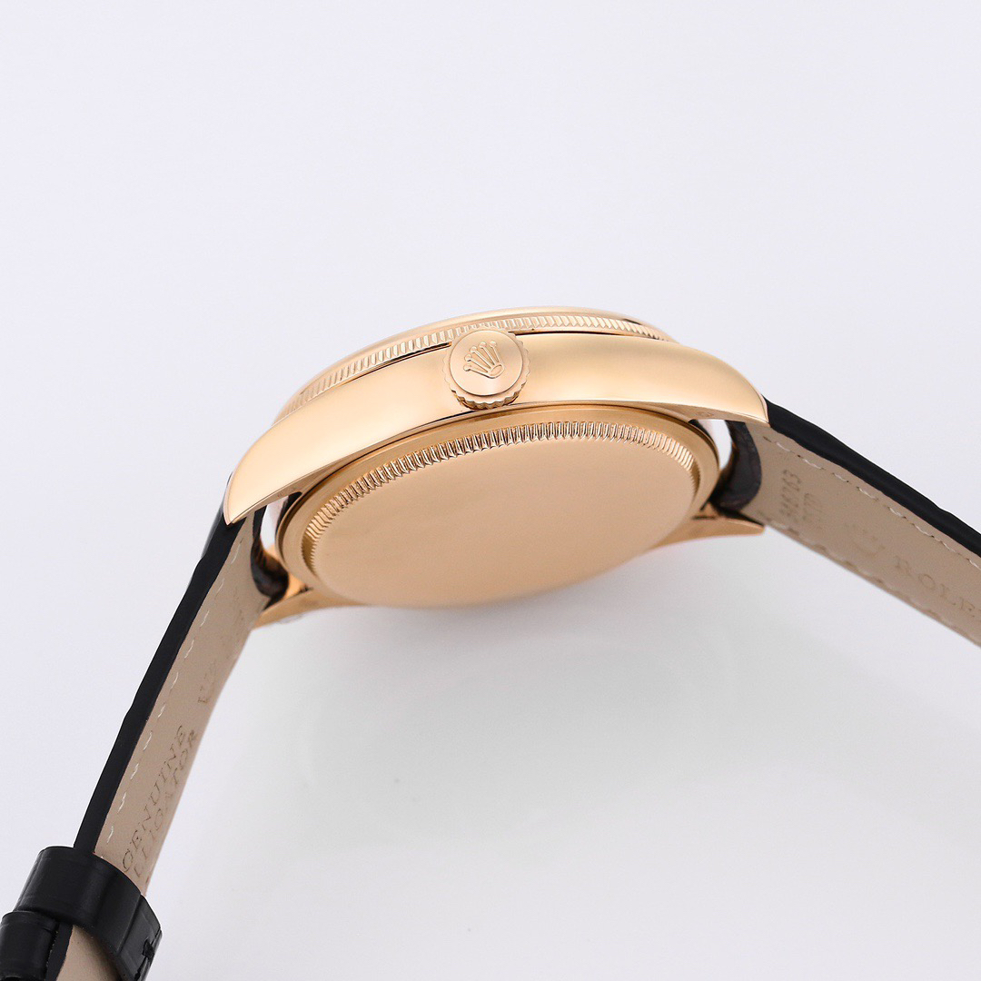 ZZ 劳力士 切利尼系列50535 月相腕表全玫瑰金,红金技术。厚度达到包金一般的标准。独家定制机芯,功能做到和原装一致。可以单独调节时针,来调节日历。8点位有一个按钮,来调节月相。同样,月相上的陨石