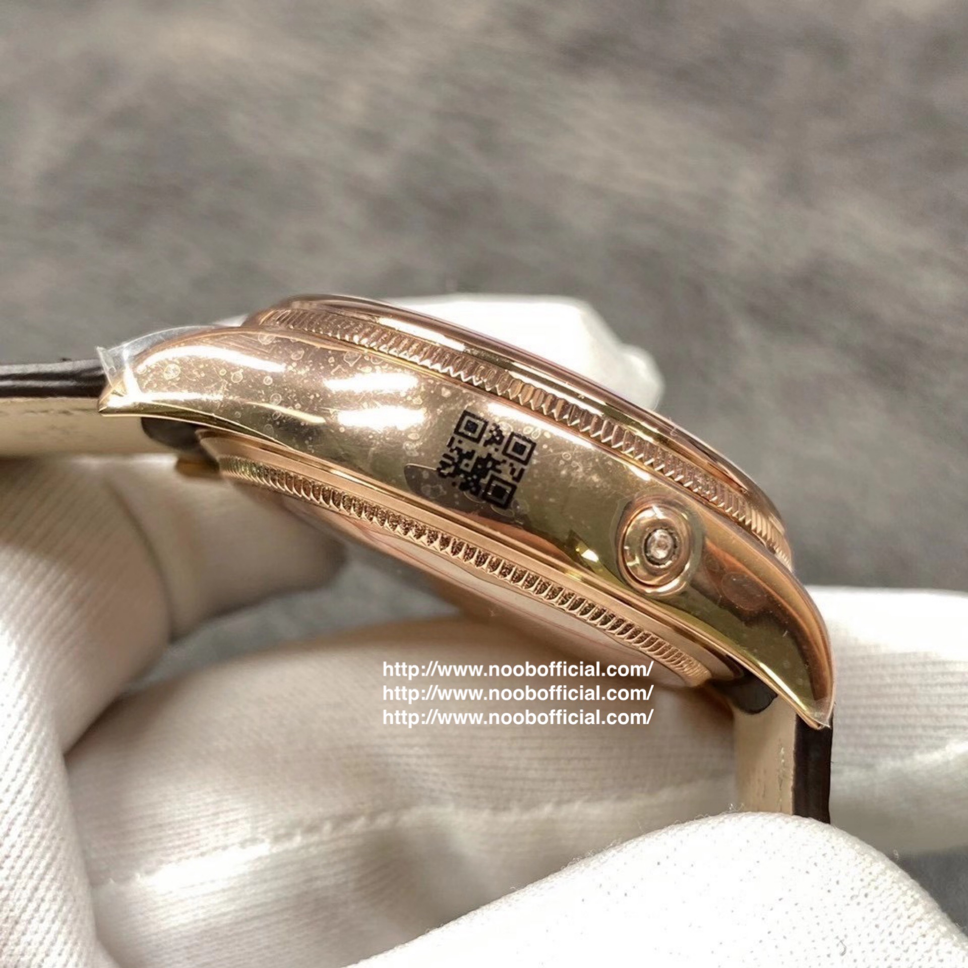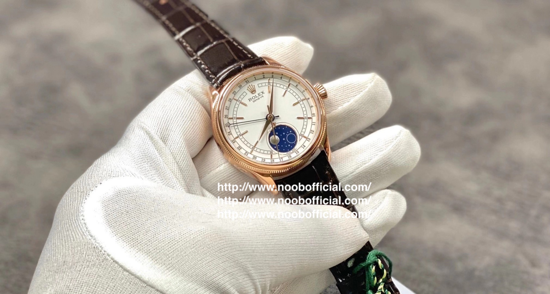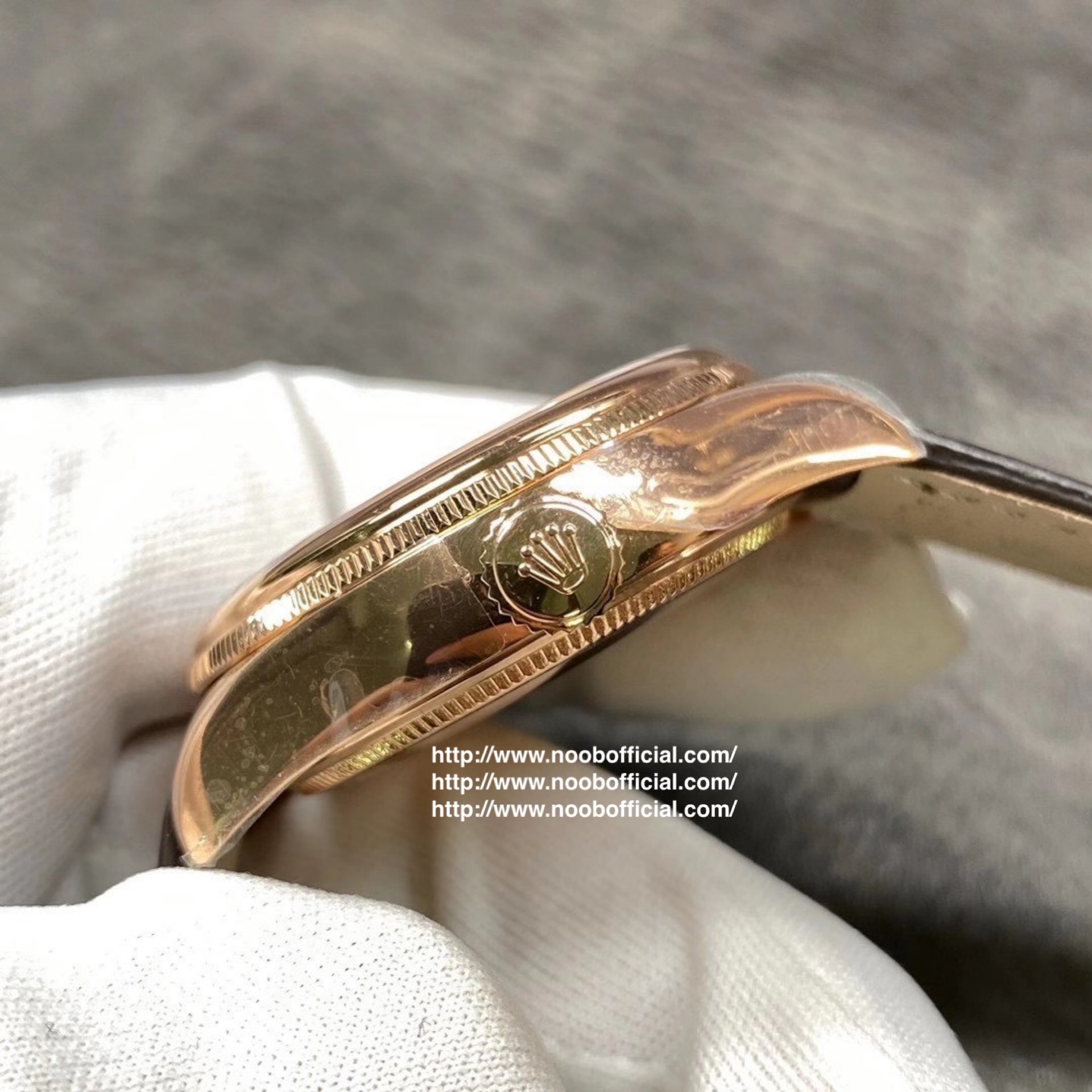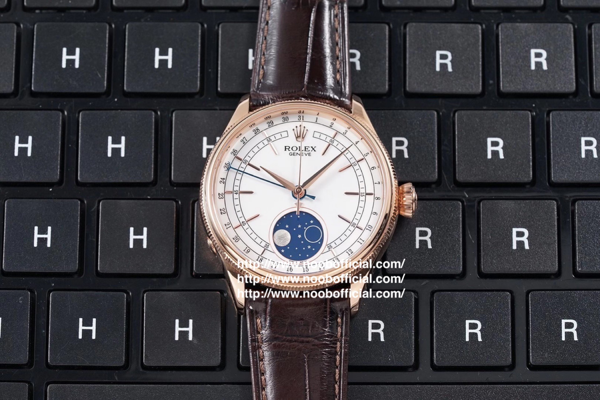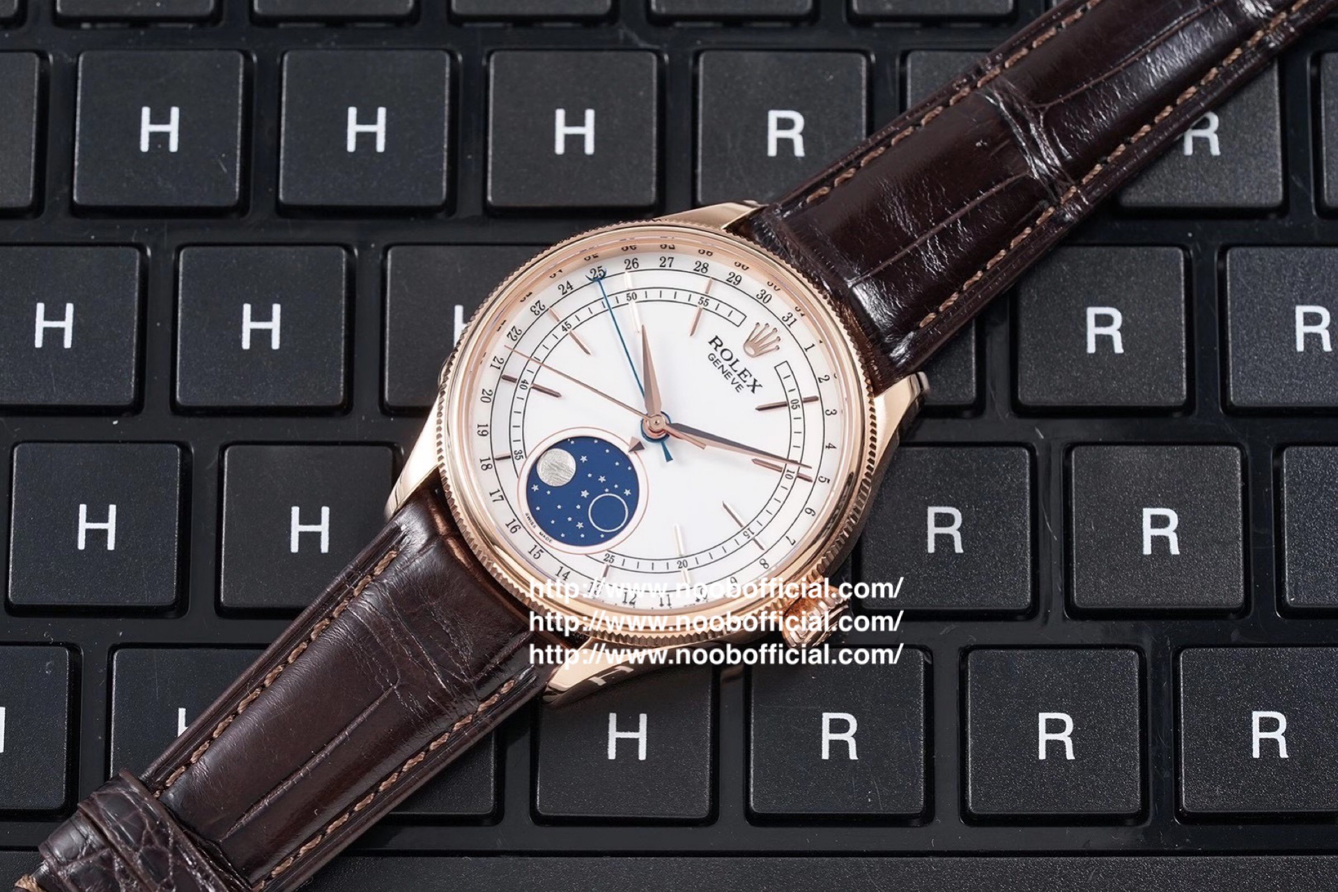 ZZ 劳力士 切利尼系列50535 月相腕表全玫瑰金,红金技术。厚度达到包金一般的标准。独家定制机芯,功能做到和原装一致。可以单独调节时针,来调节日历。8点位有一个按钮,来调节月相。同样,月相上的陨石也为真陨石。