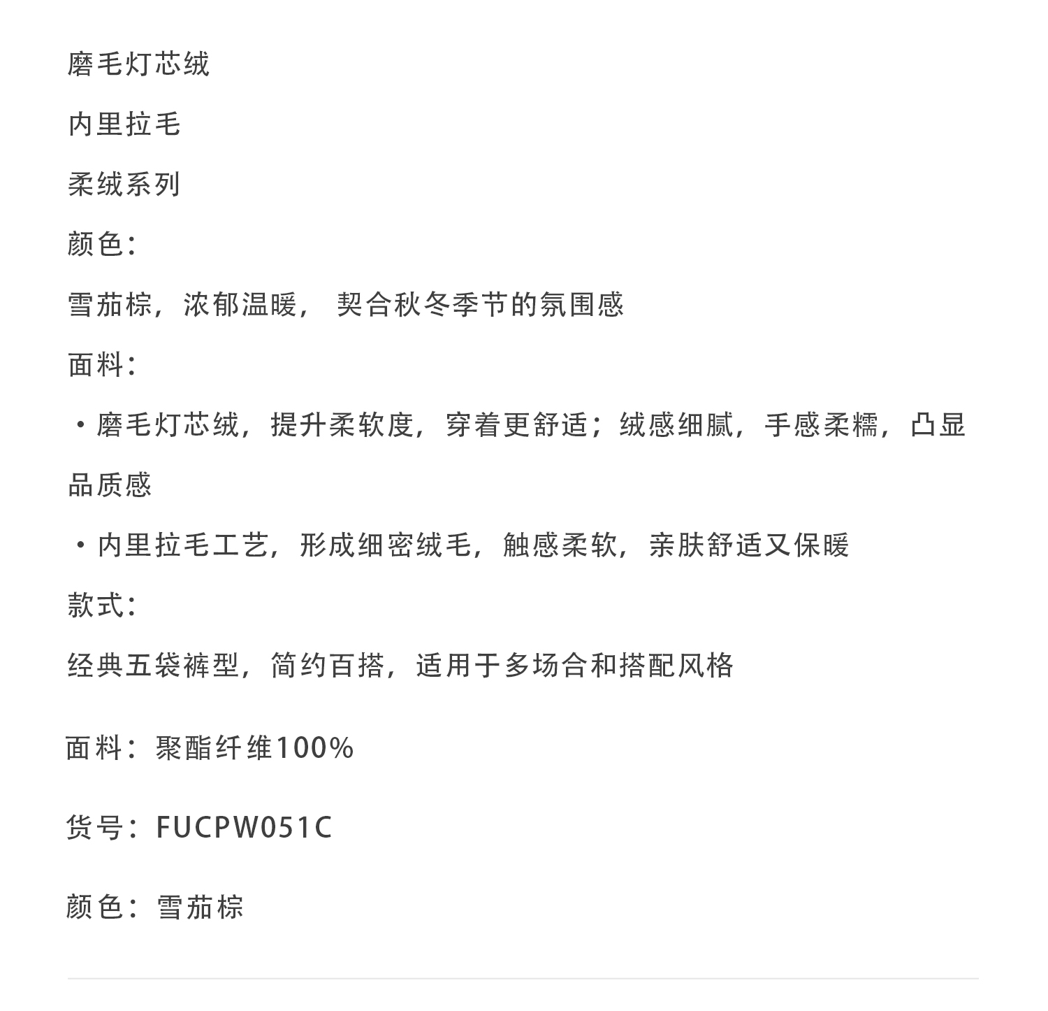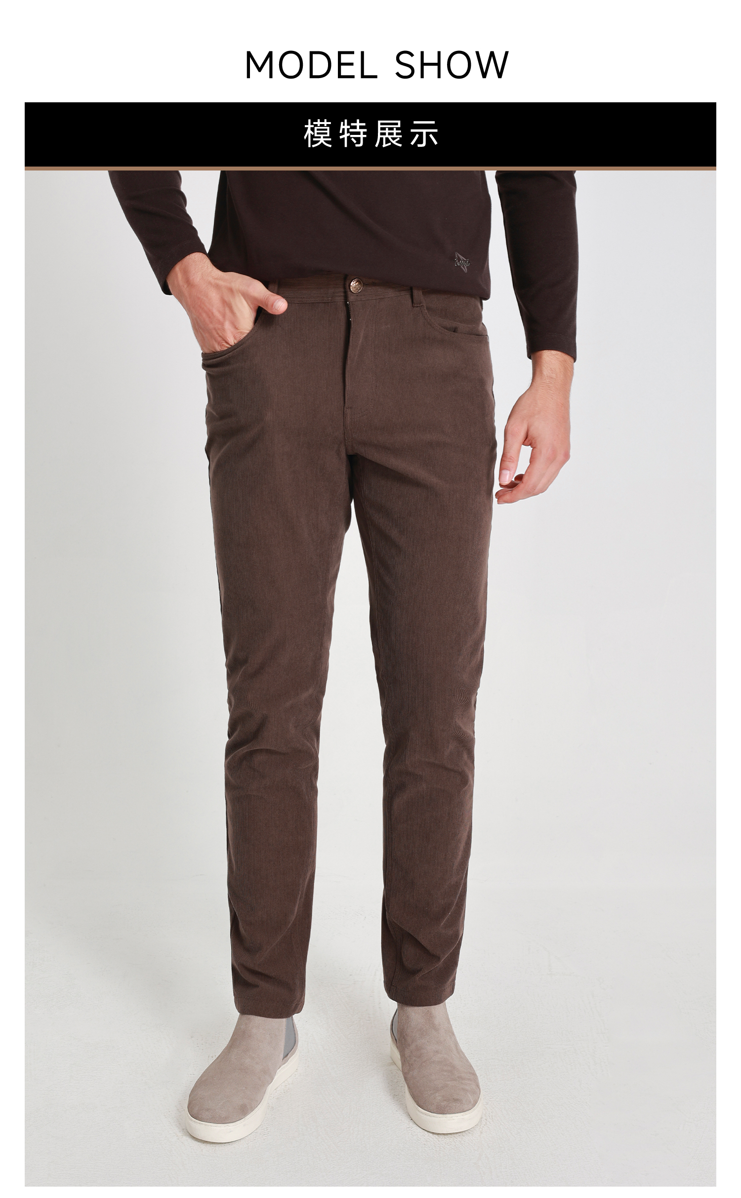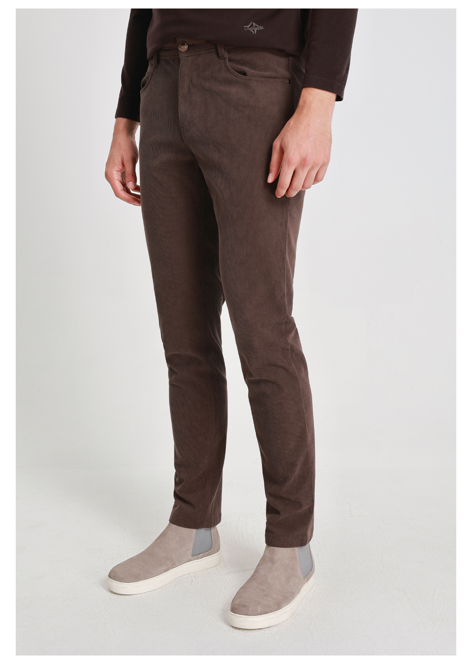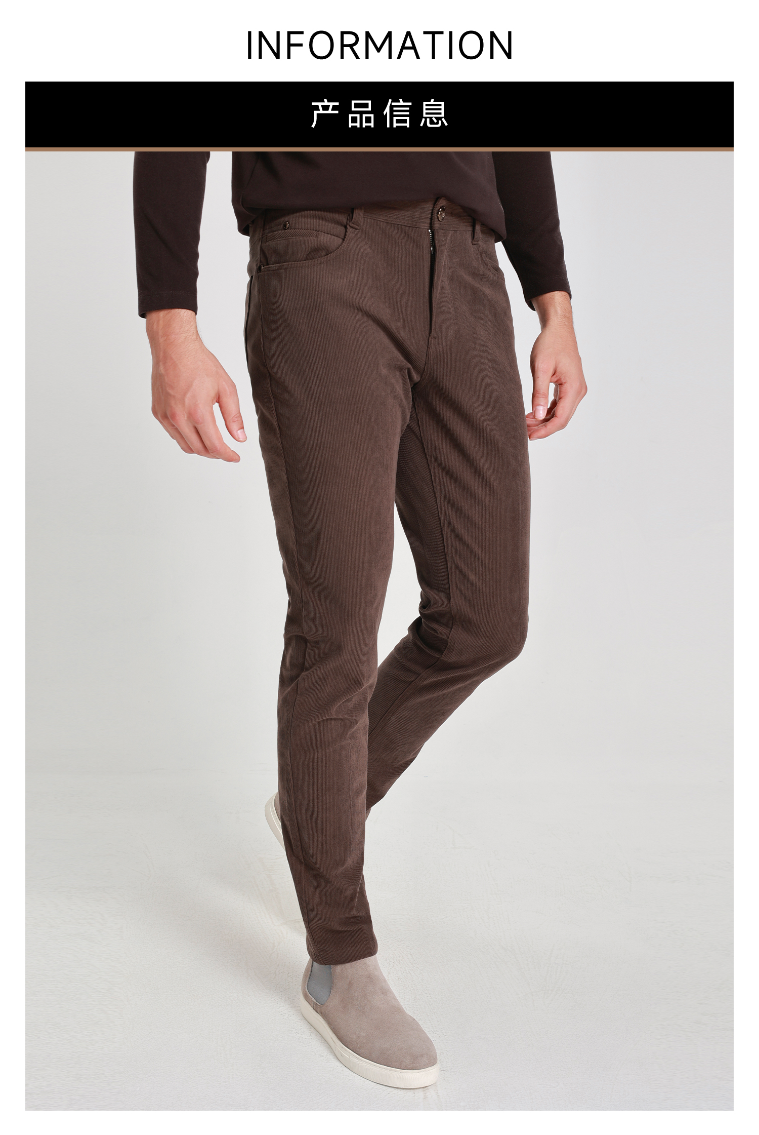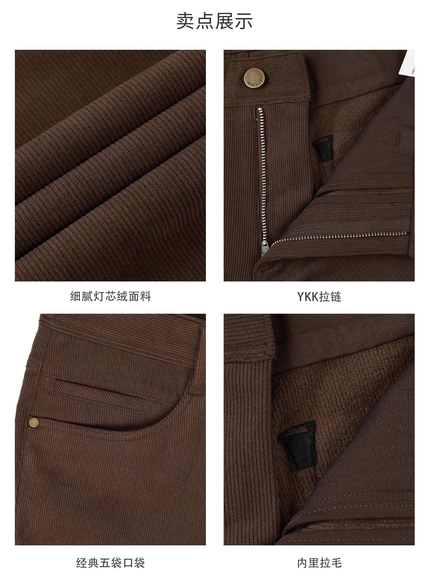 callisto雪茄棕磨毛灯芯绒微直筒休闲裤