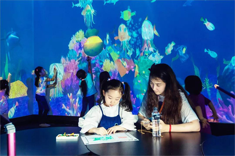 利用时下最先进的AR技术,通过小朋友的丰富想象力和再创造力,使得小朋友画笔下的小动物活灵活现的展现在“大草原”和“海底世界”里,并且小朋友还可以通过触摸屏幕和自己想象中的小动物互动。