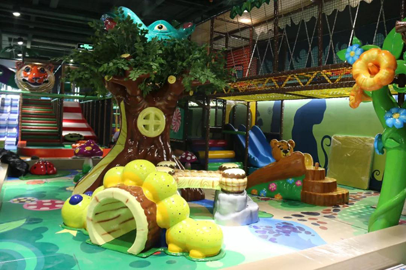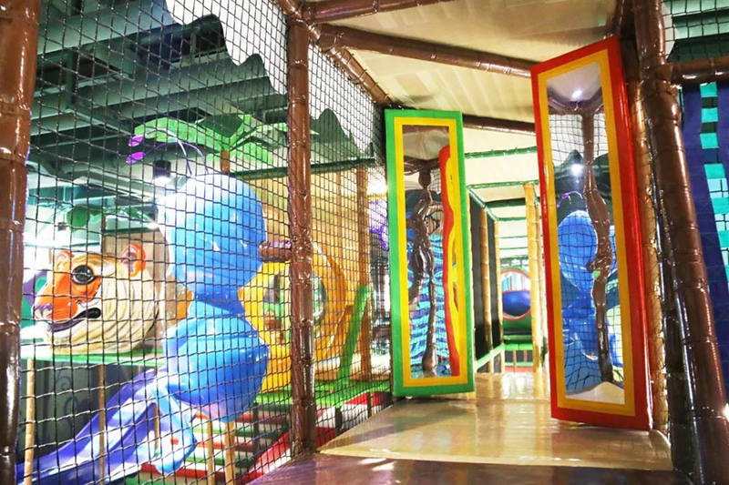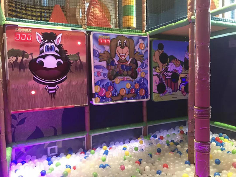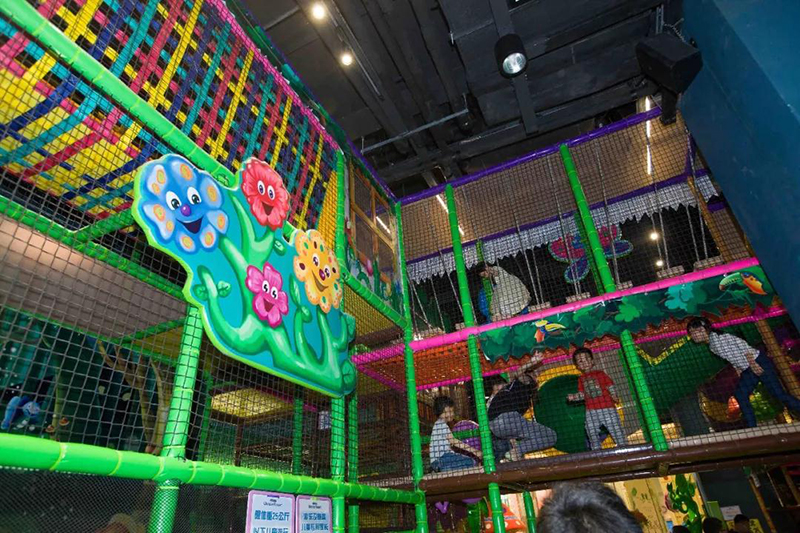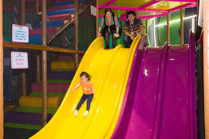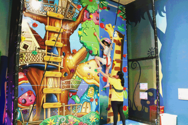 馆内攀岩墙,高约5米,以彩绘的森林小屋为背景,童趣十足。小朋友可以通过攀爬,得到体力及毅力的锻炼。为帮助和指导小朋友正确的利用攀岩设施,乐园还专门安排了指导员,以确保孩子攀爬时得到保护。