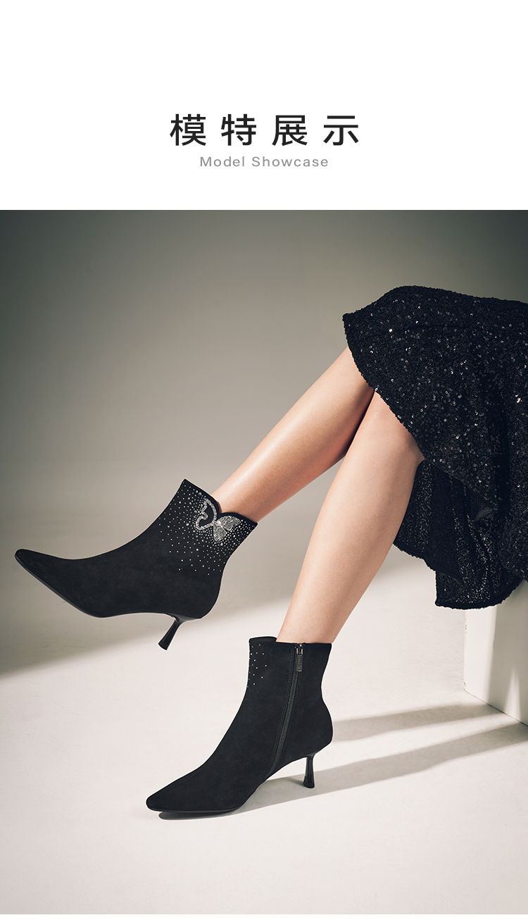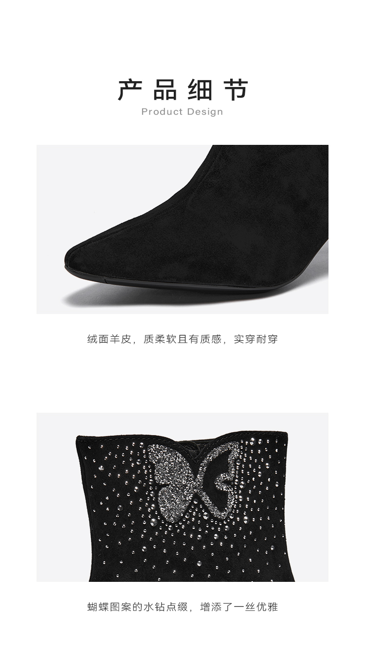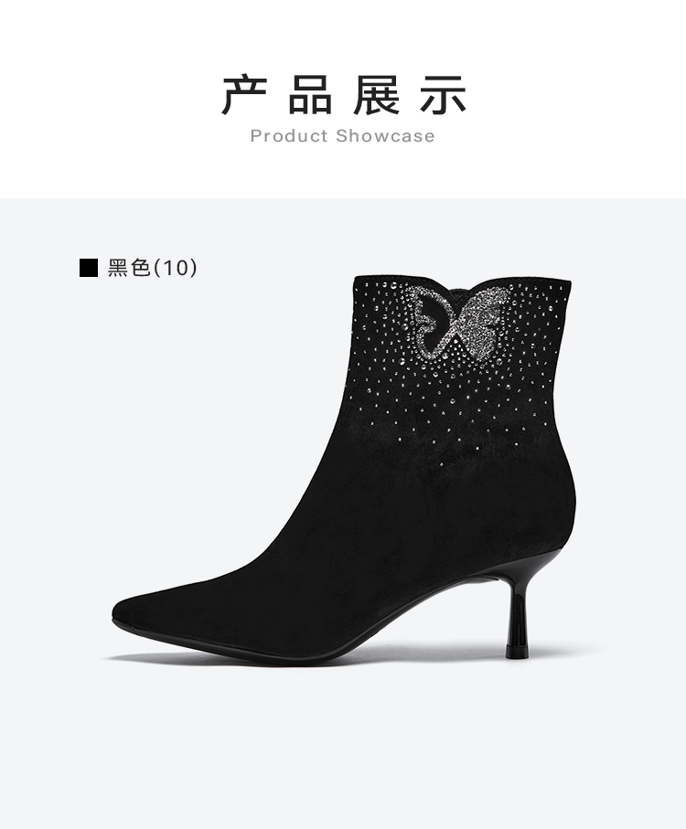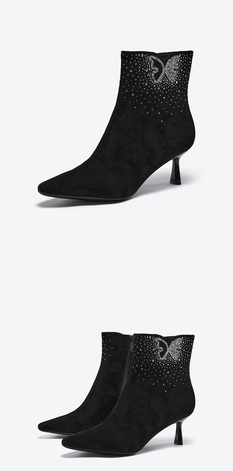 星期六精致闪钻蝴蝶尖头细跟时装短靴SSC4116420