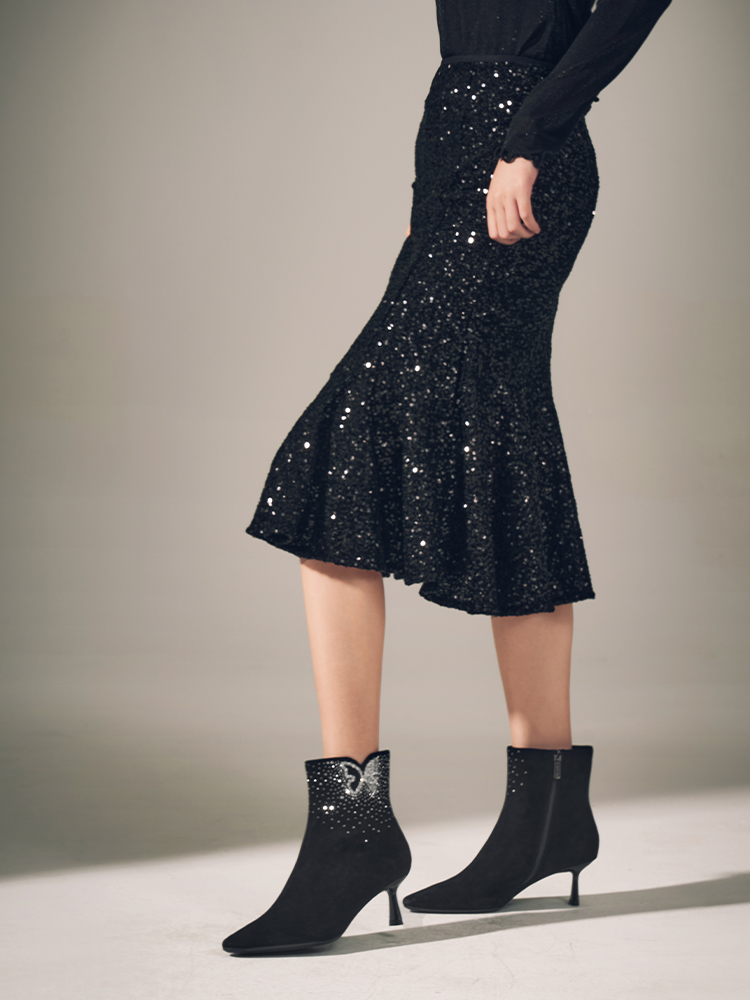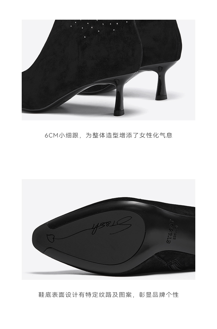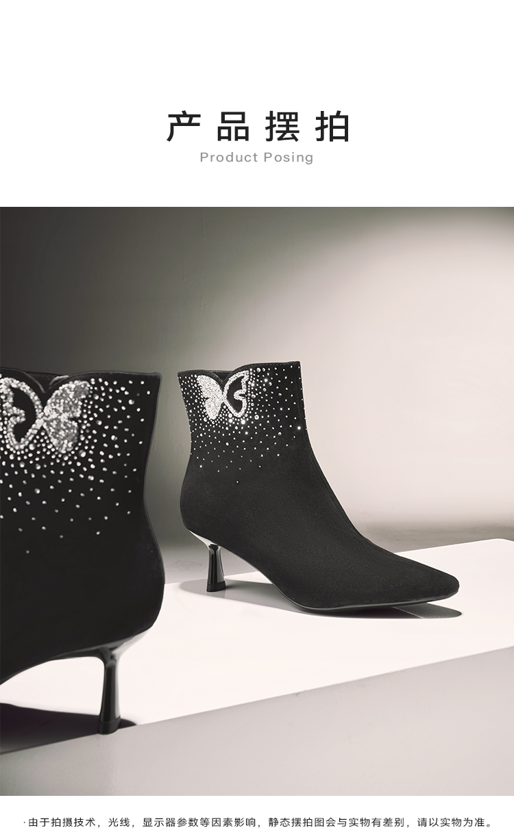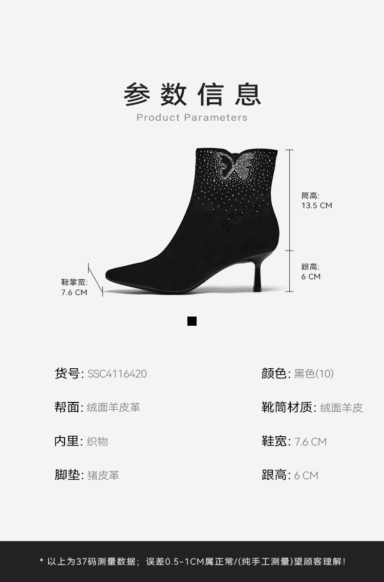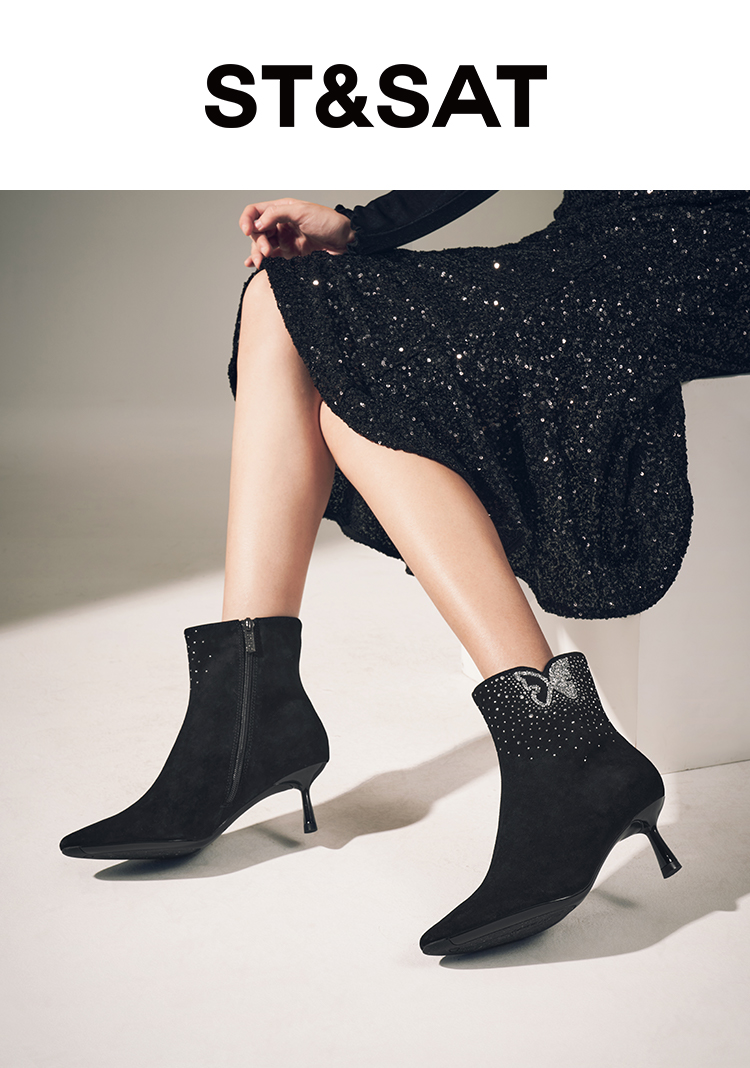 星期六精致闪钻蝴蝶尖头细跟时装短靴SSC4116420