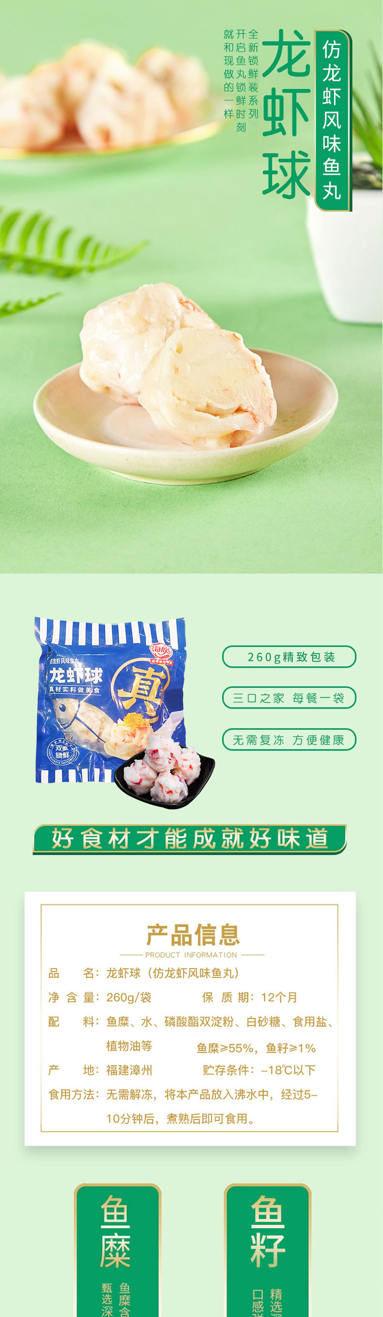 海欣模拟龙虾球260g/包
