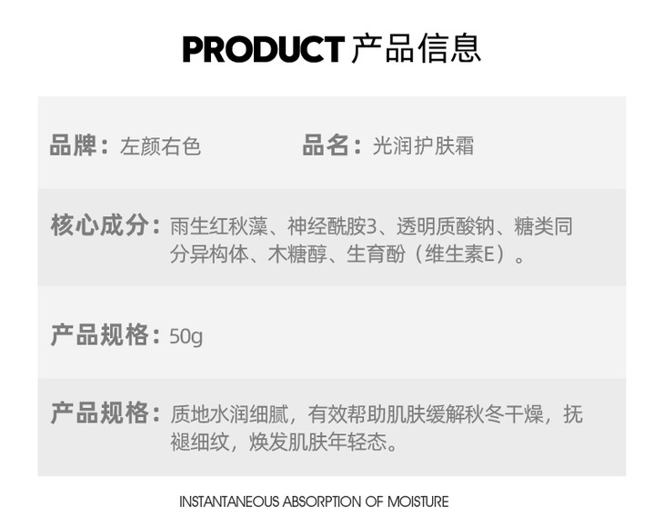 💥买即送‼冰川水💥秒杀‼【到手¥19.9/瓶】左颜右色 光润护肤面霜50g*3瓶装