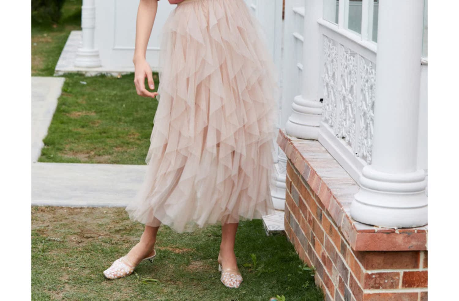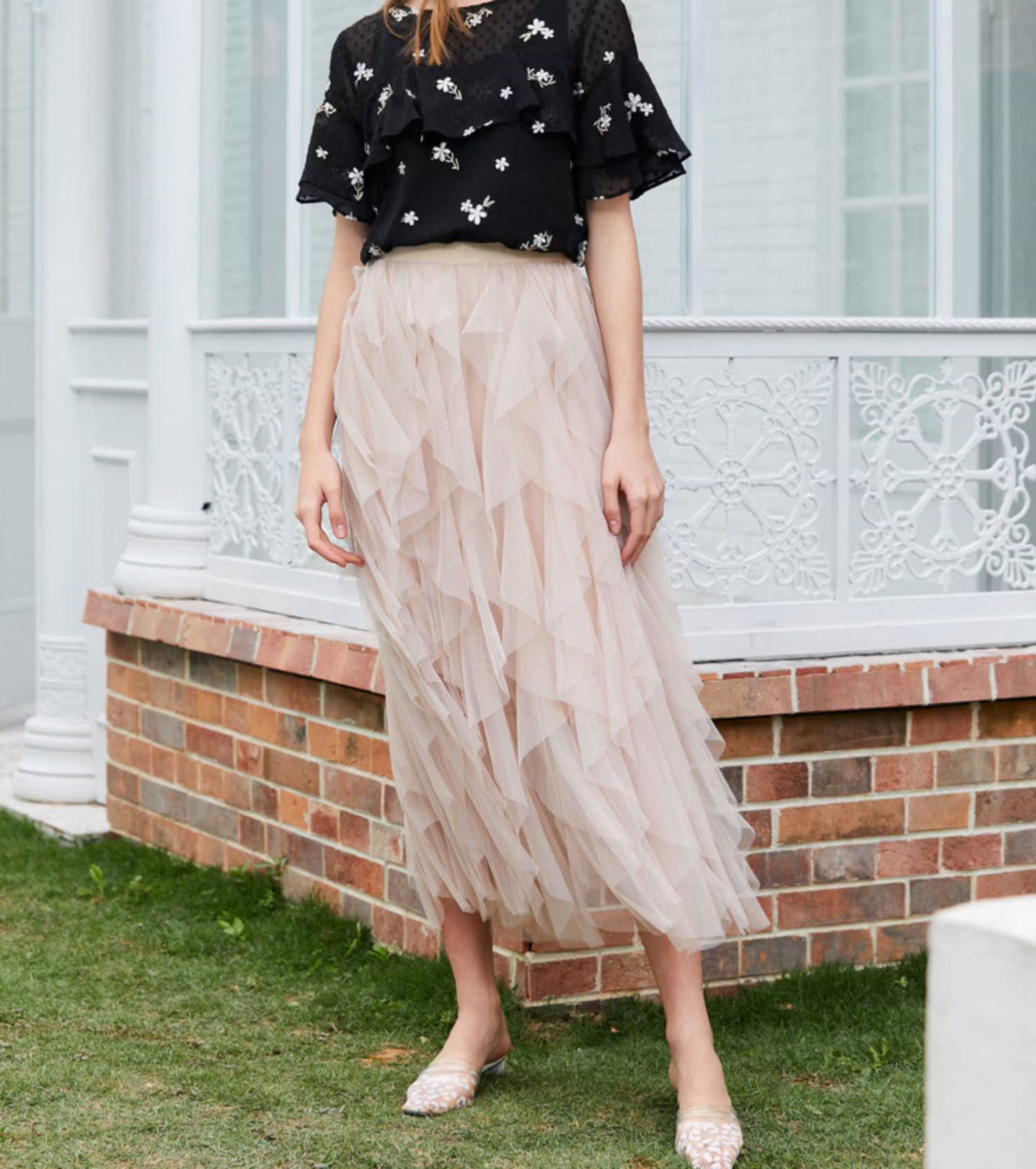 OLrain法式网纱半身裙女夏季2022年新款收腰荷叶边纯色女神蛋糕裙