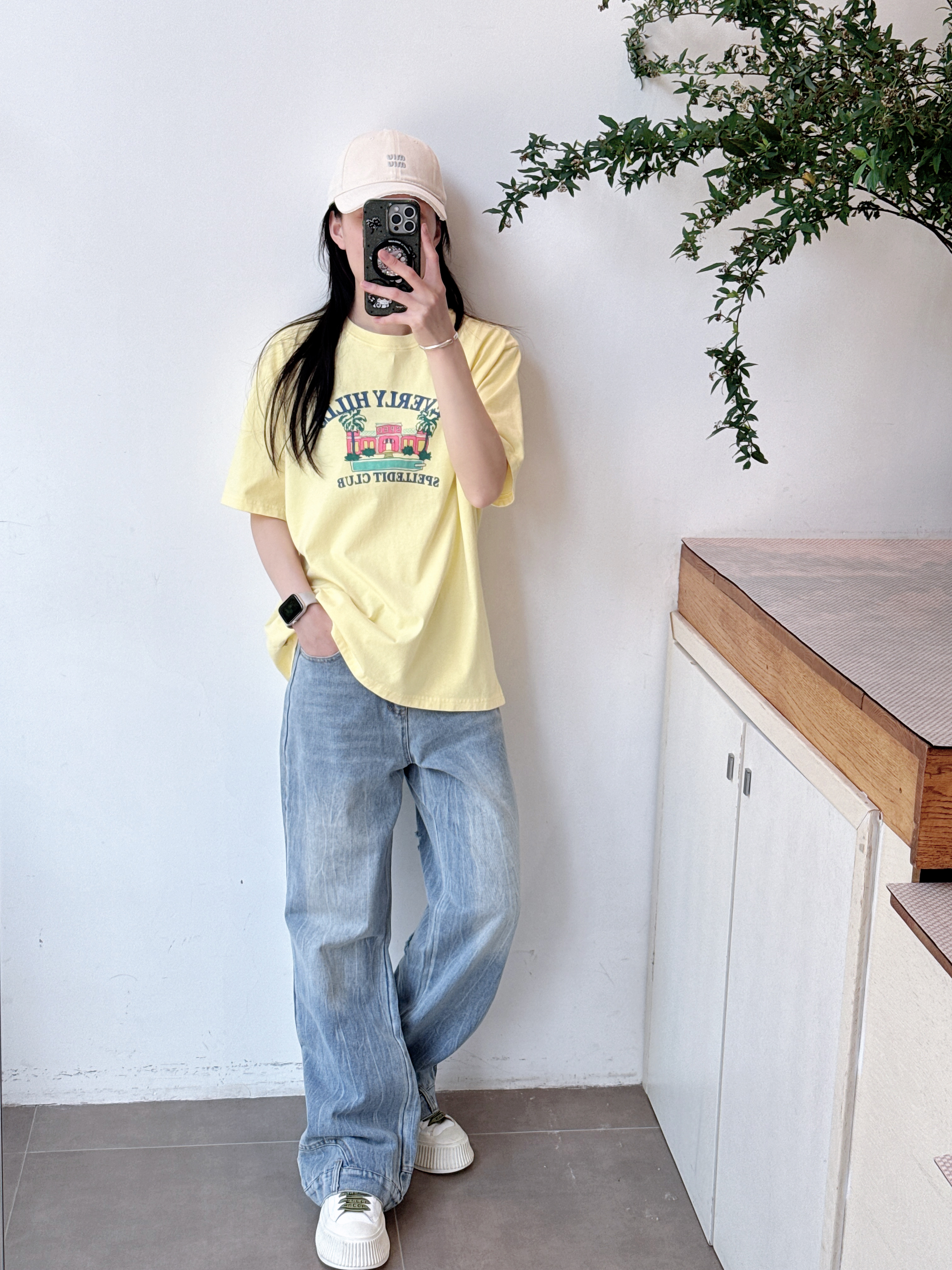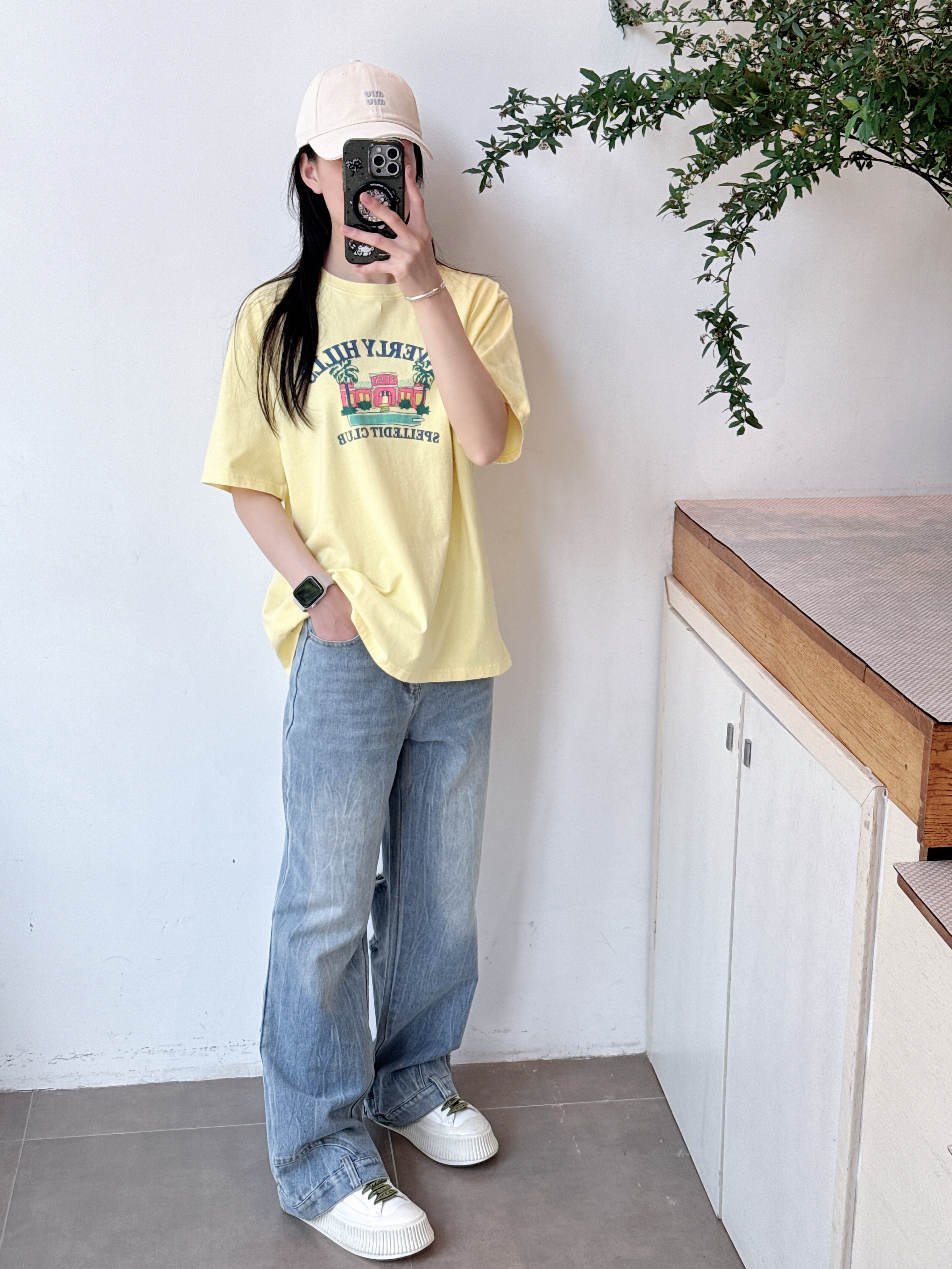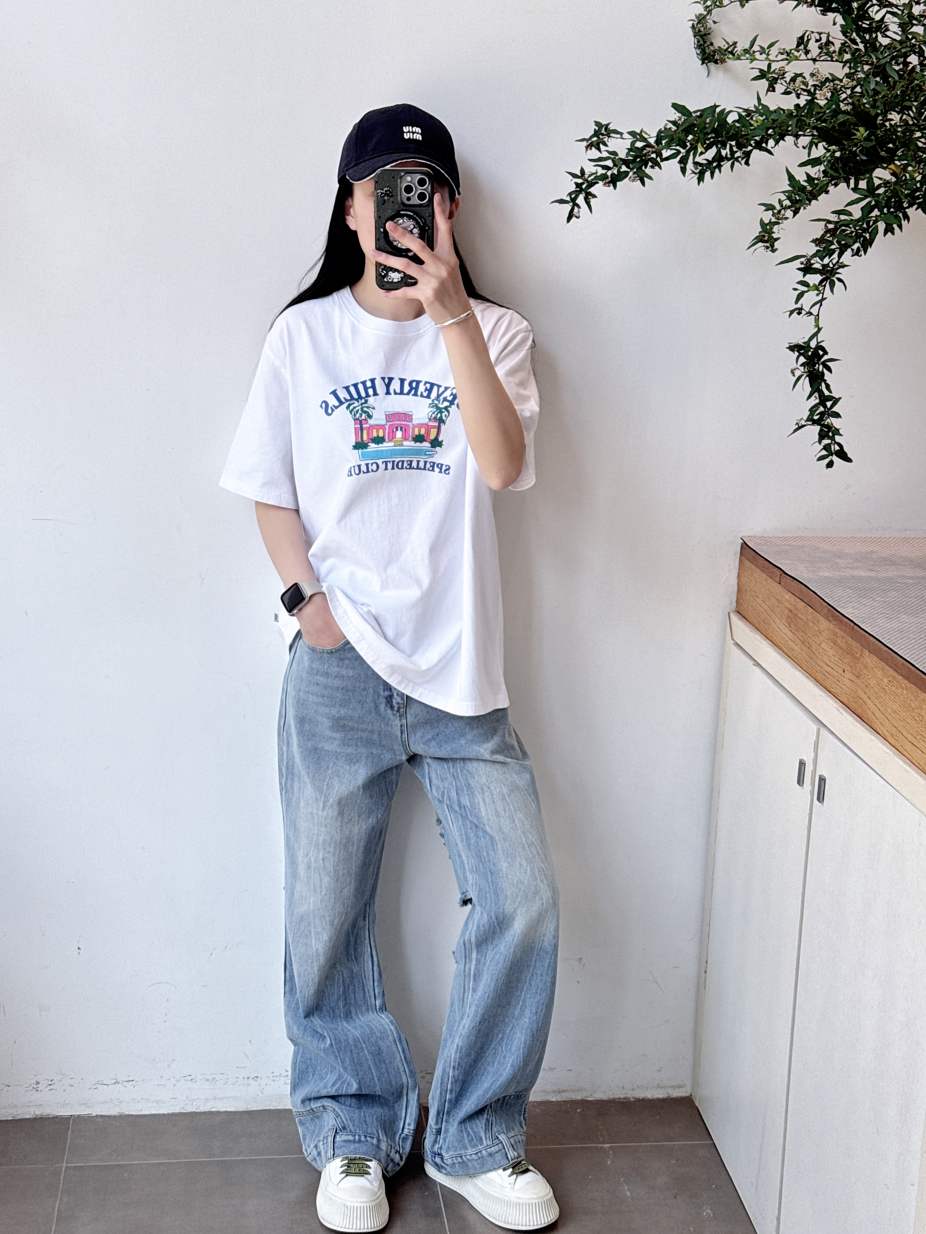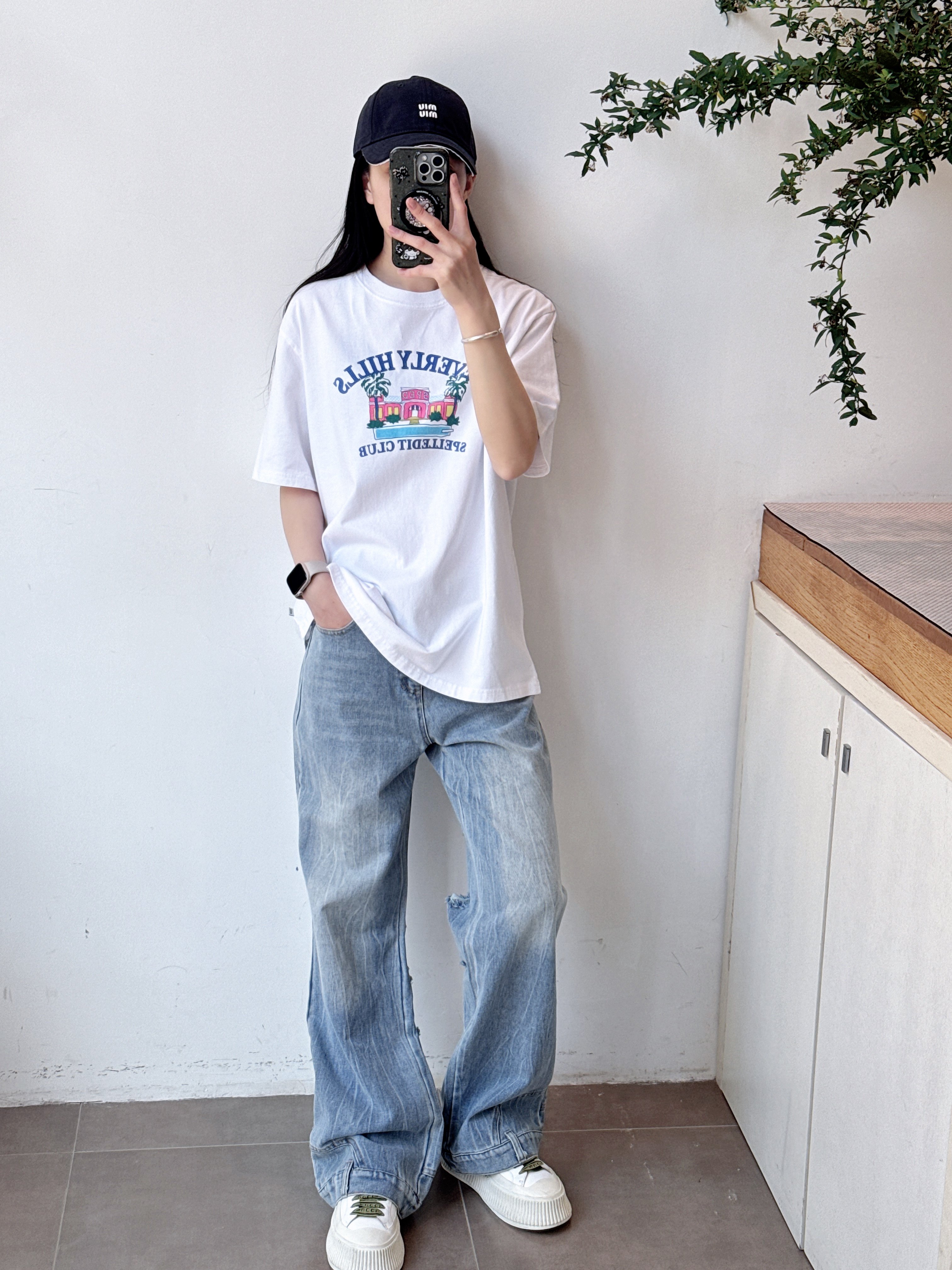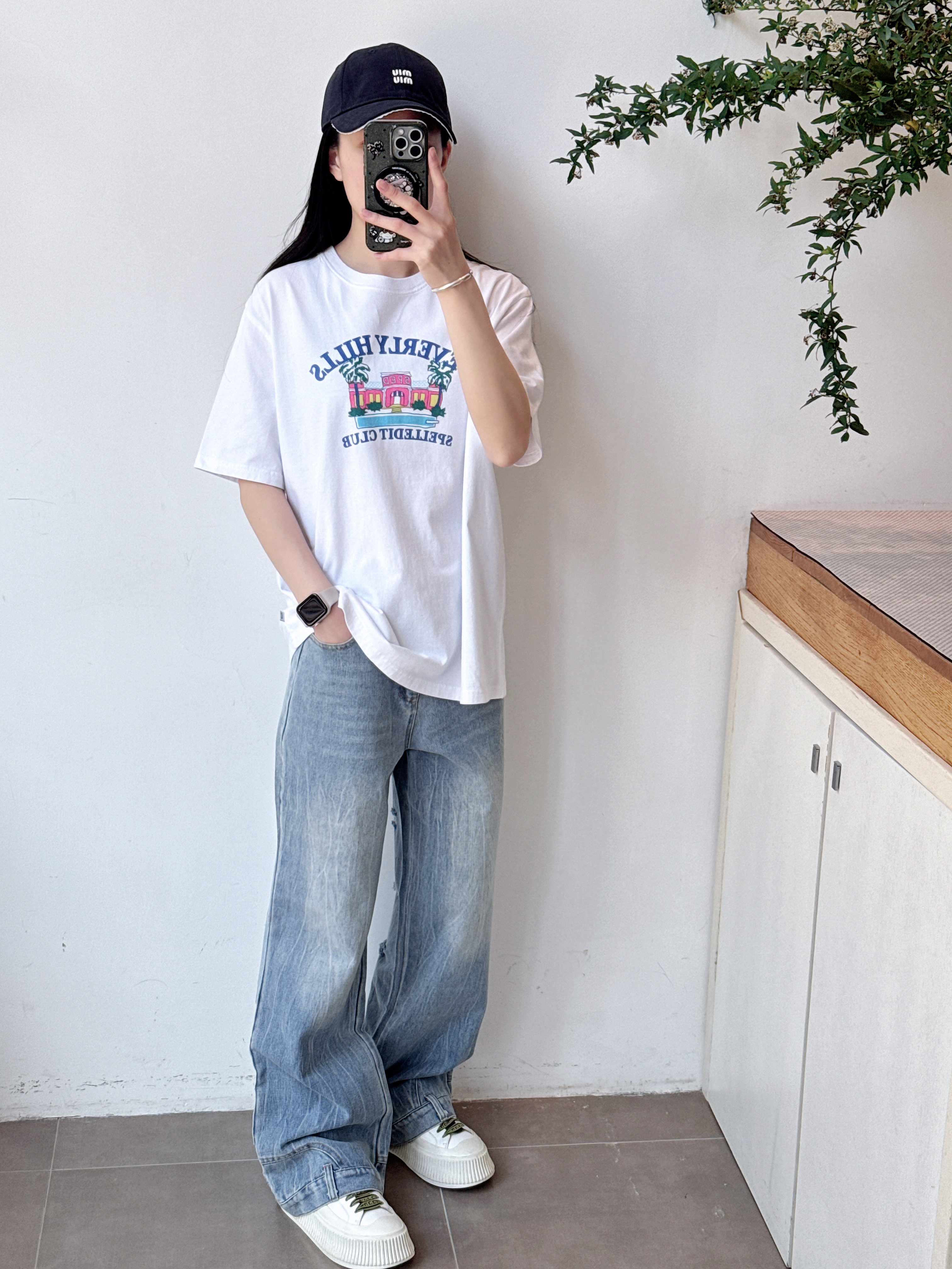SPELLEDIT2025春季新款比弗利山庄T恤宽松休闲时尚印花短袖上衣女