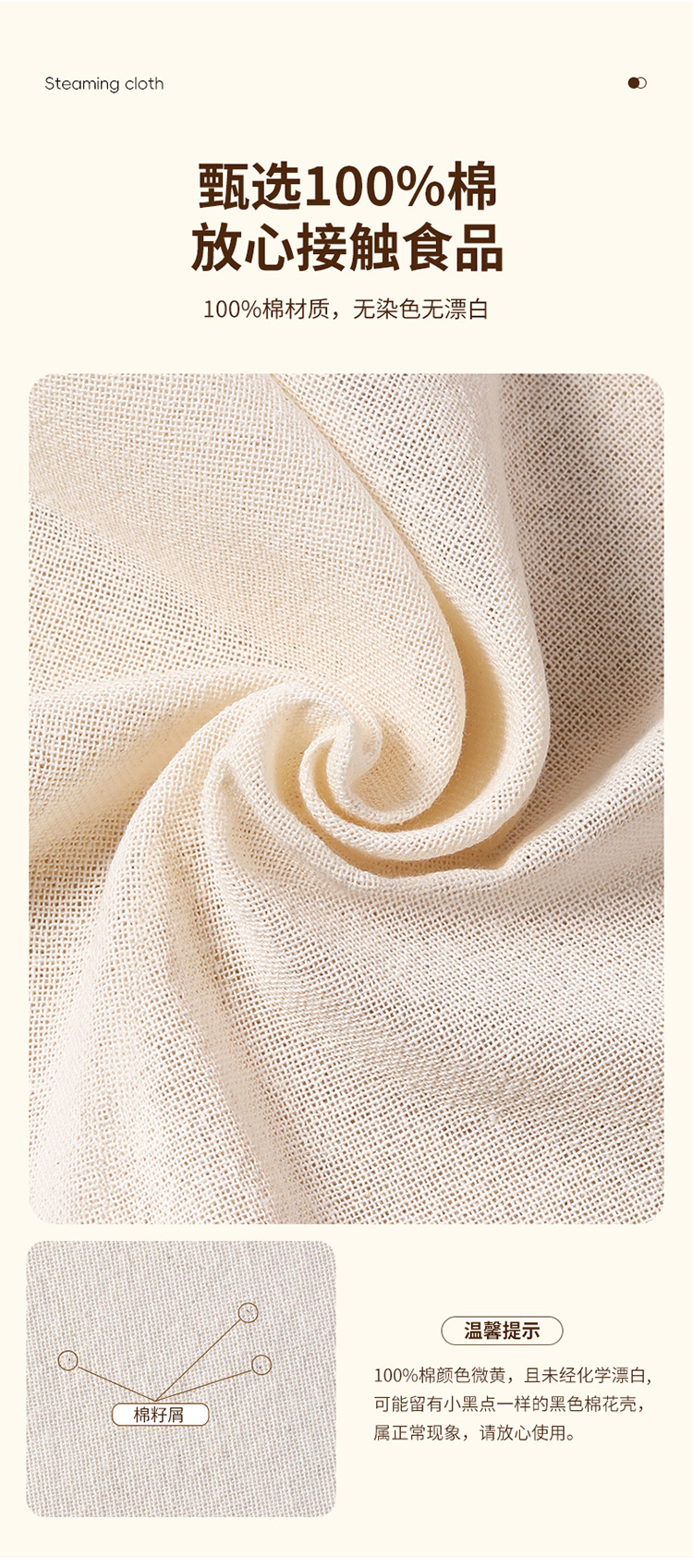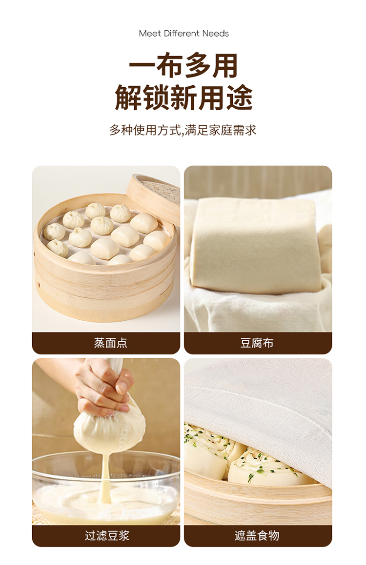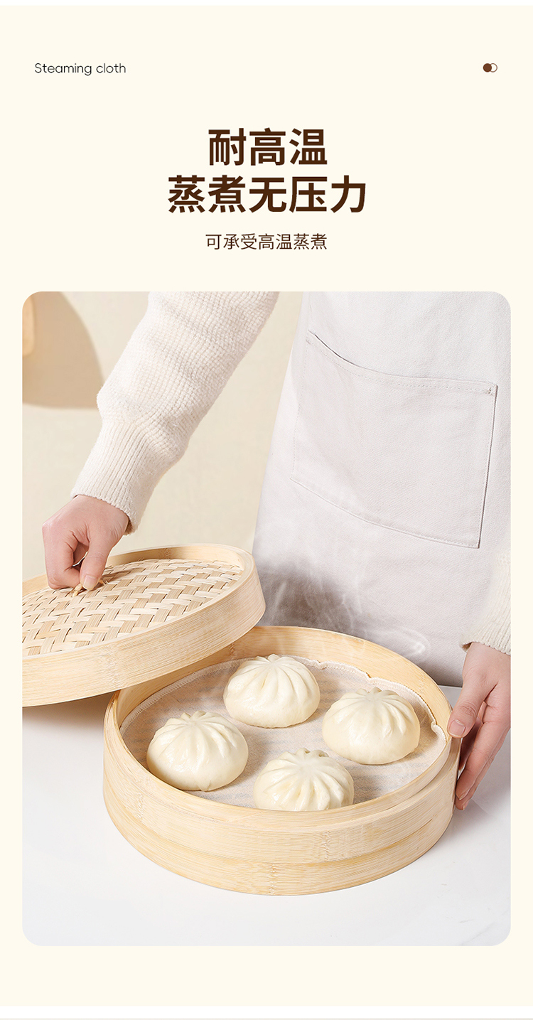 美丽雅蒸笼布纯棉纱布大号食品用包子馒头饺子蒸锅垫不粘过滤布屉布 30cm*5片入