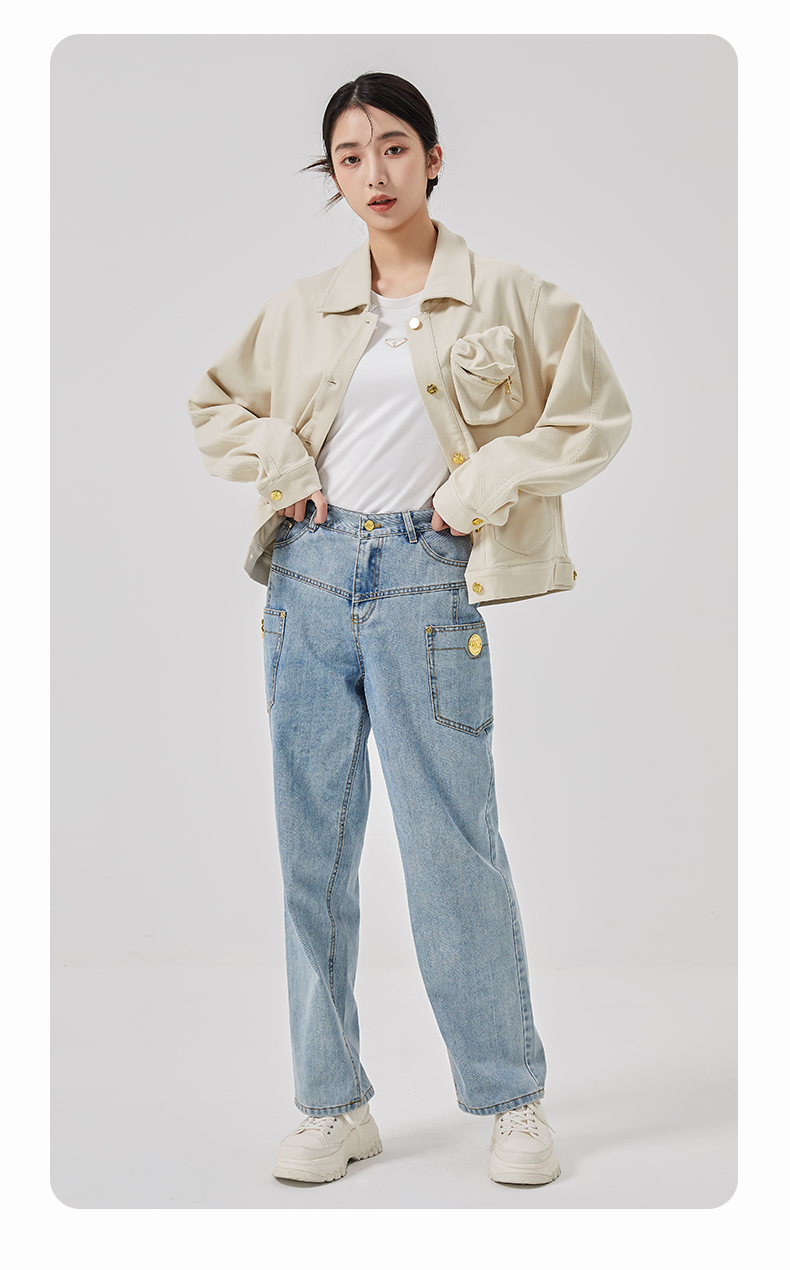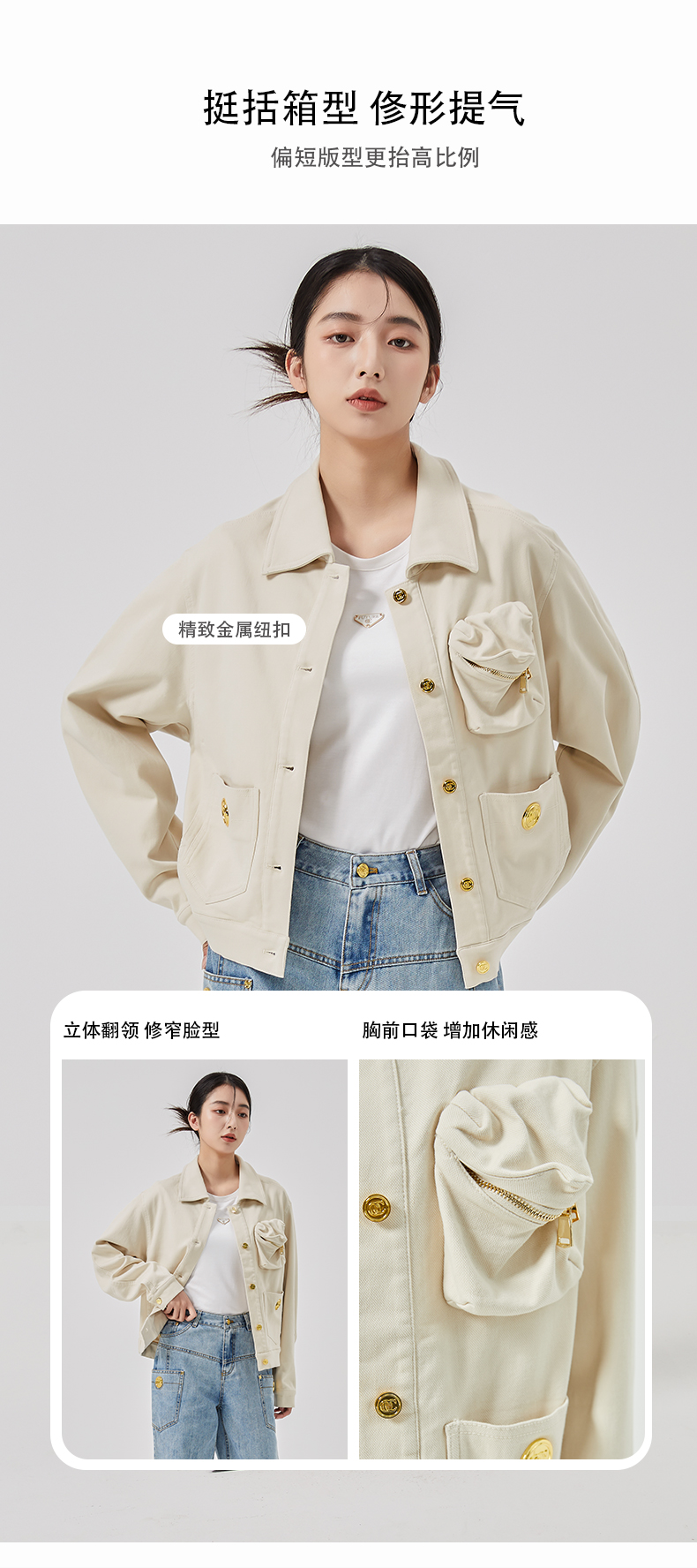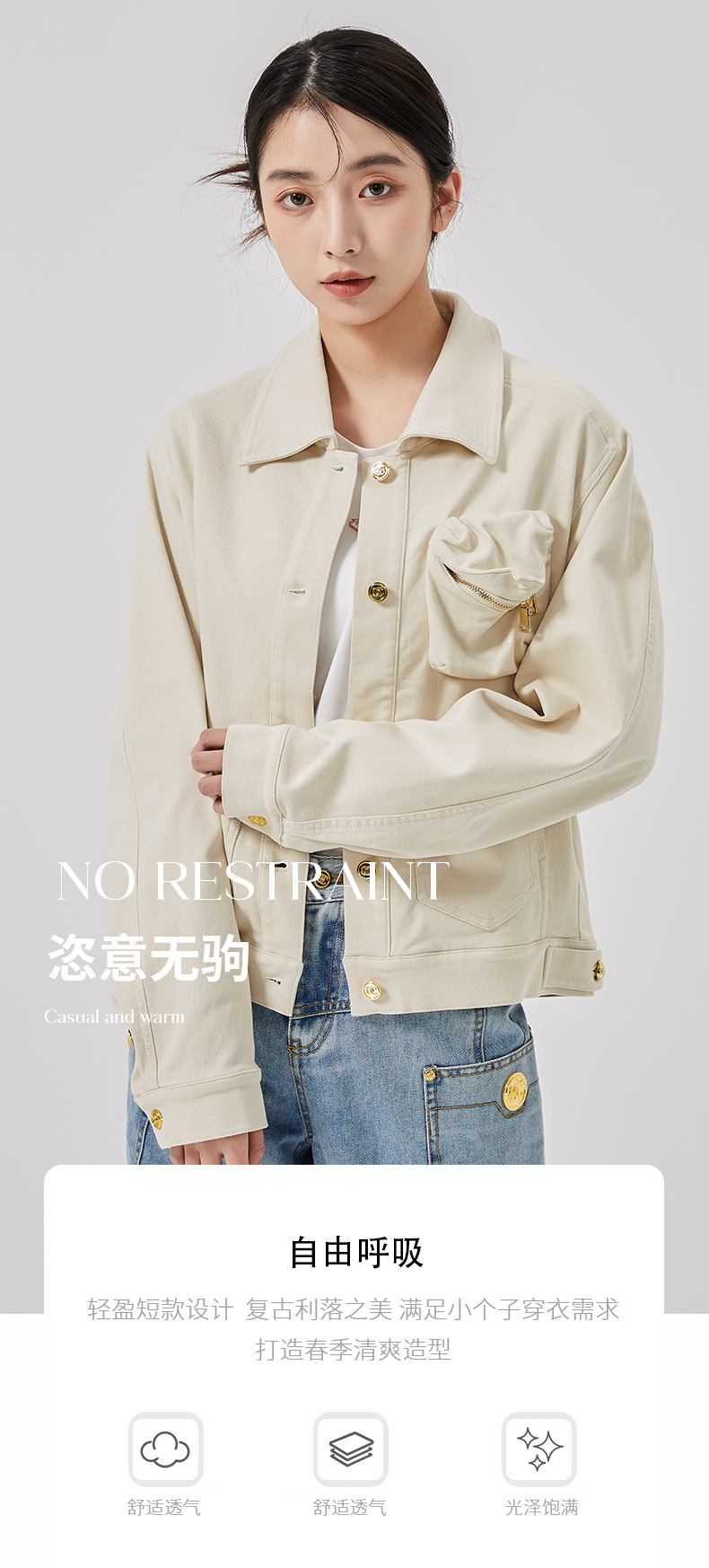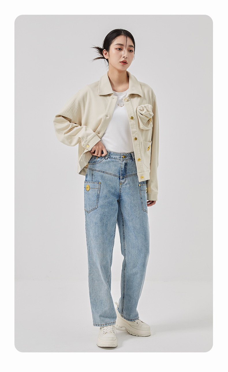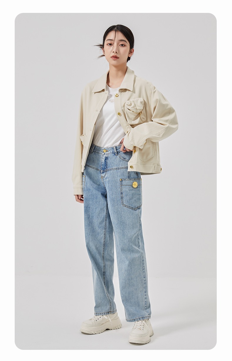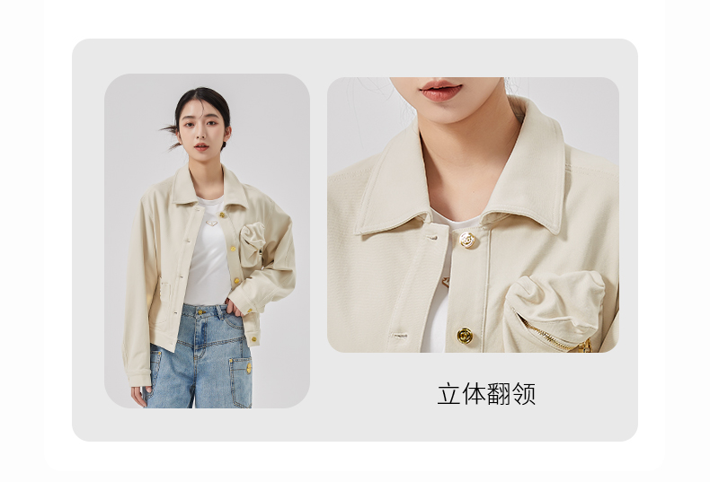 oldcolour2023春季新款米色休闲百搭宽松短款牛仔外套女O11040150