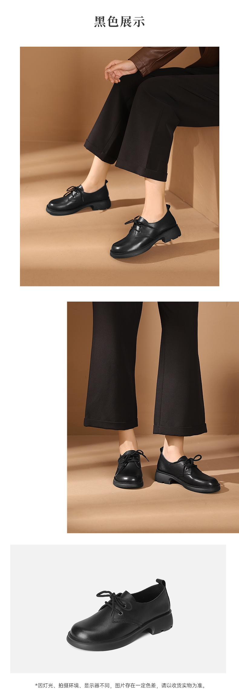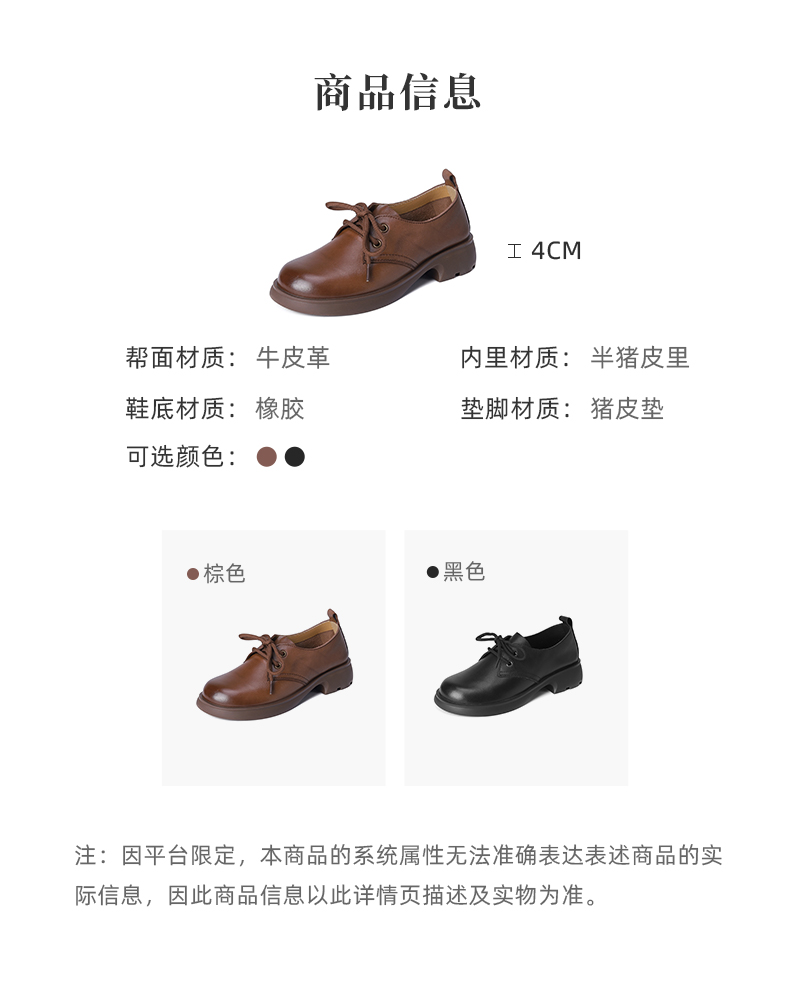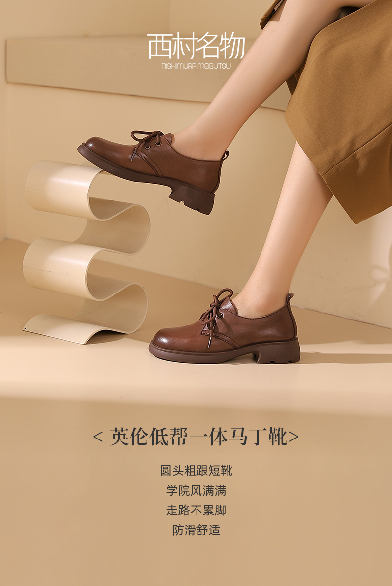 西村名物2023秋季新款女士真皮英伦系带乐福鞋小皮鞋厚底增高黑色T23CM34431