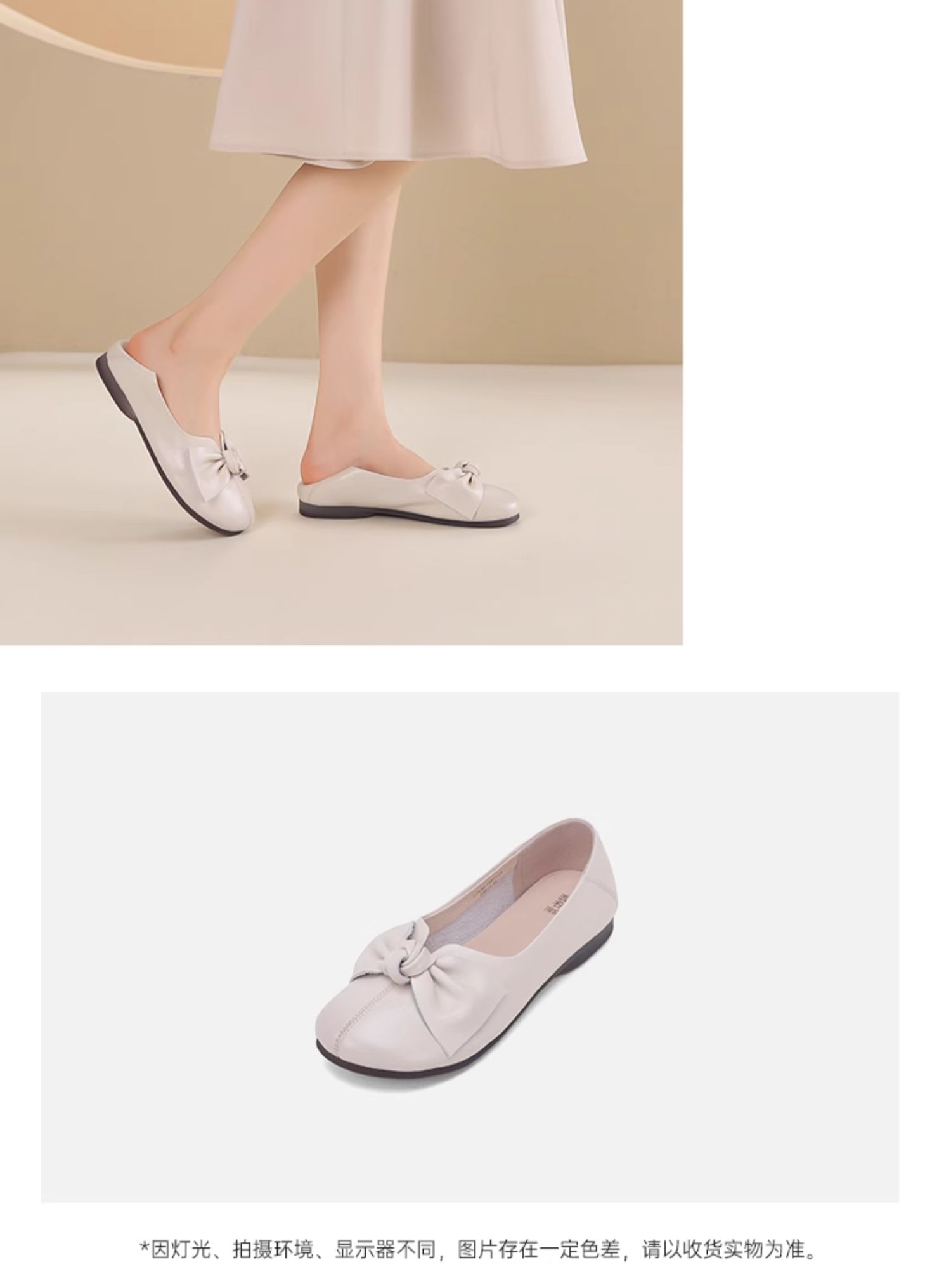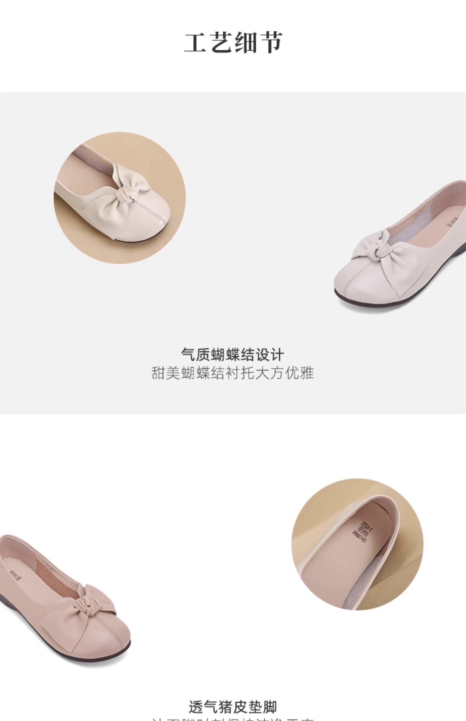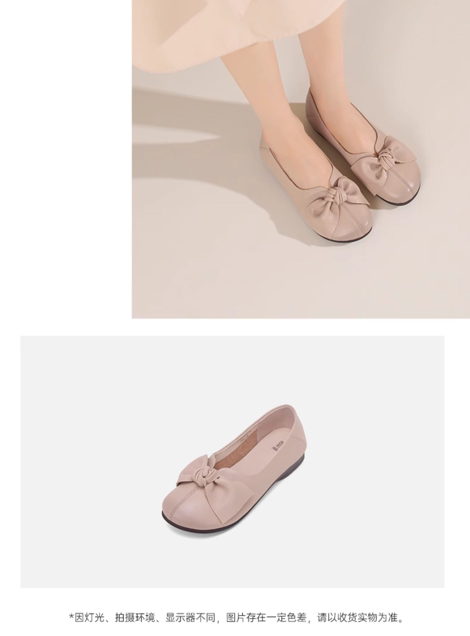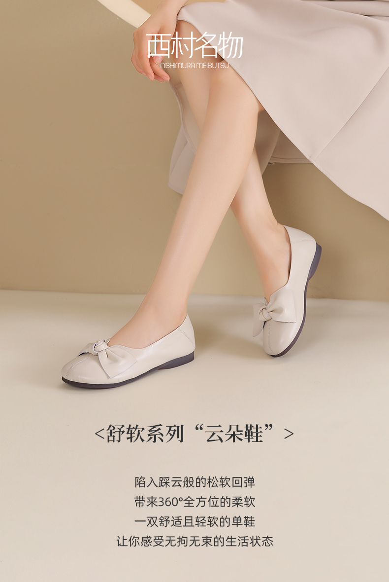 西村名物2024夏季新款真皮平底单鞋女牛皮圆头蝴蝶结妈妈鞋X24AE13971