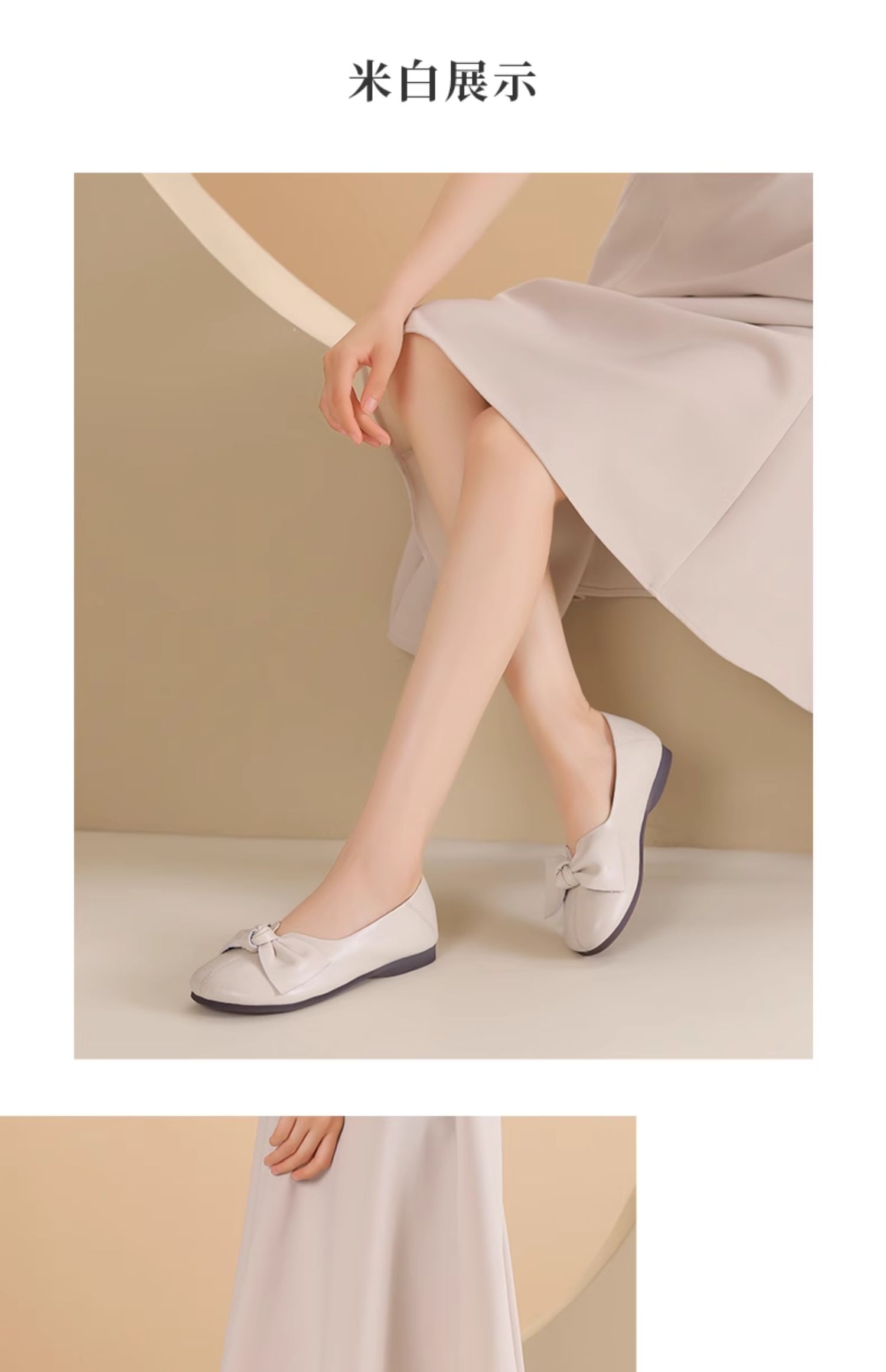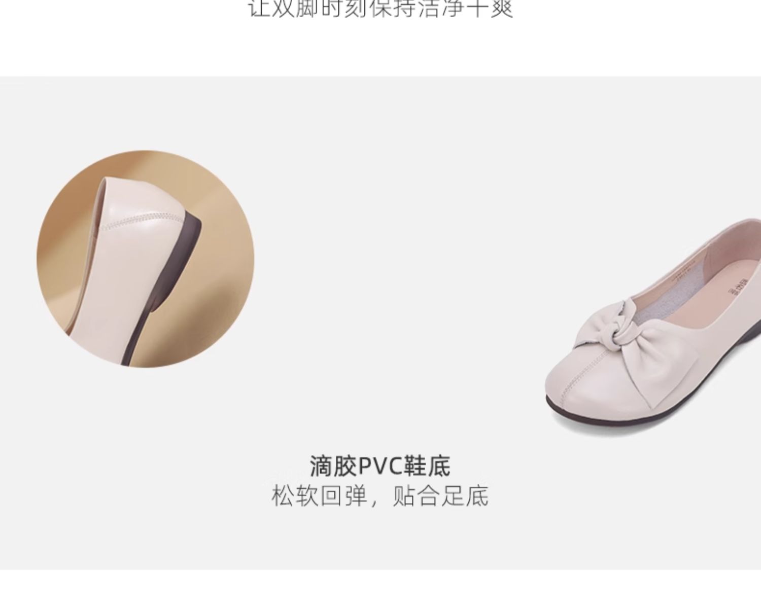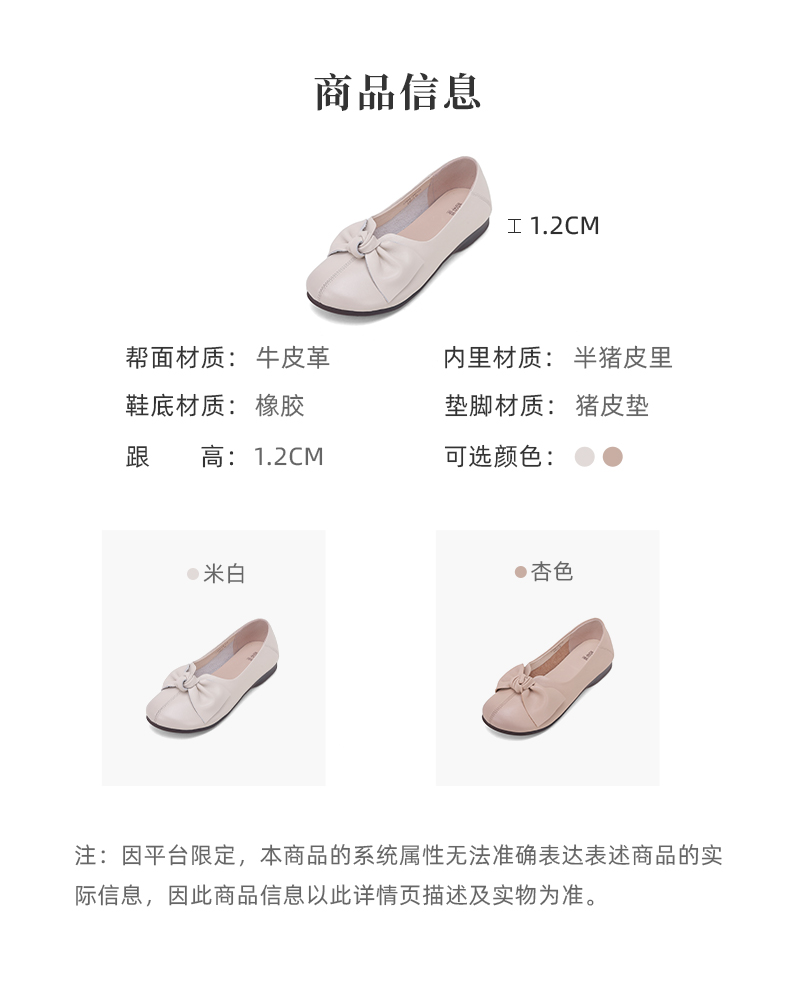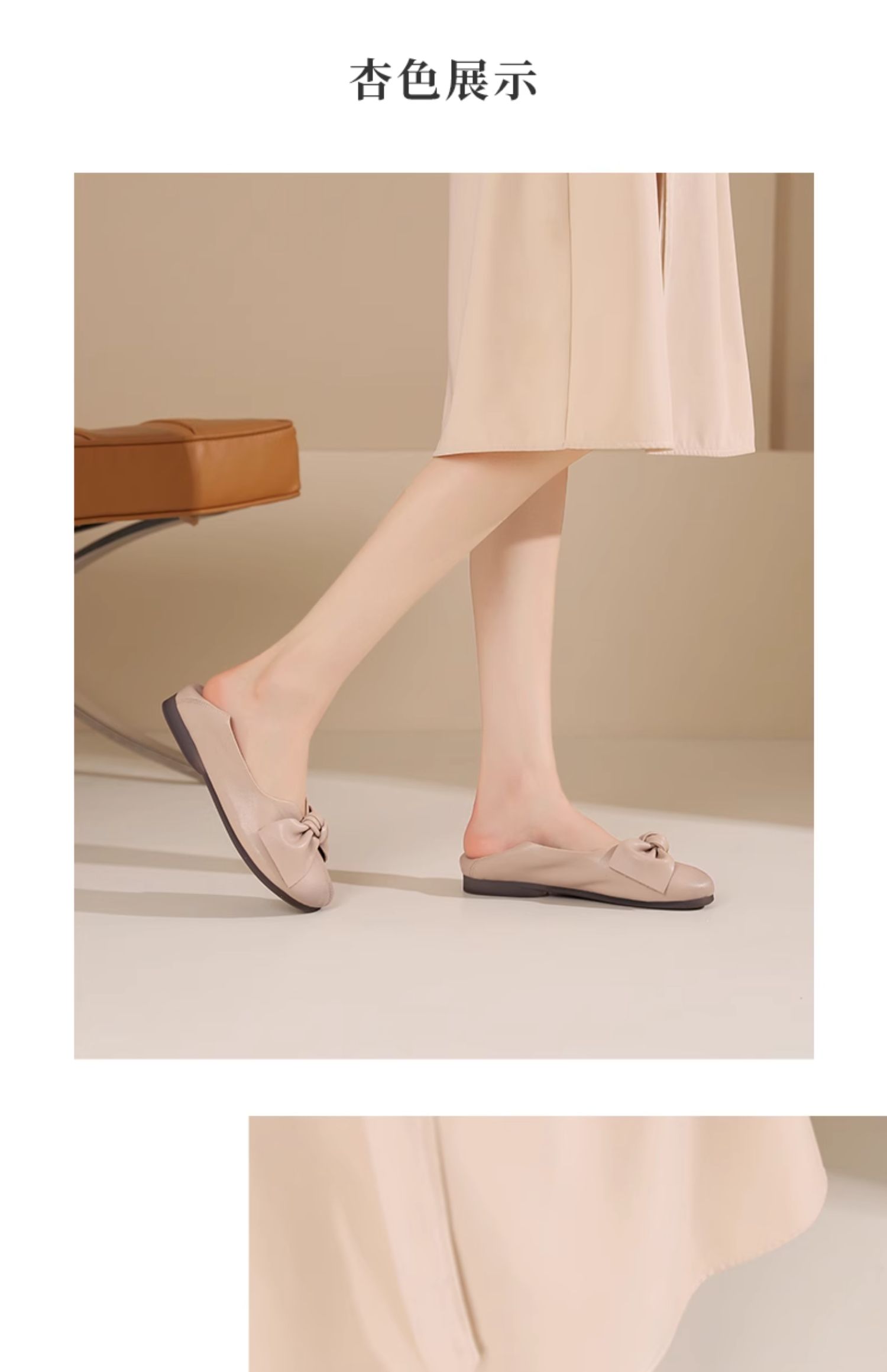 西村名物2024夏季新款真皮平底单鞋女牛皮圆头蝴蝶结妈妈鞋X24AE13971