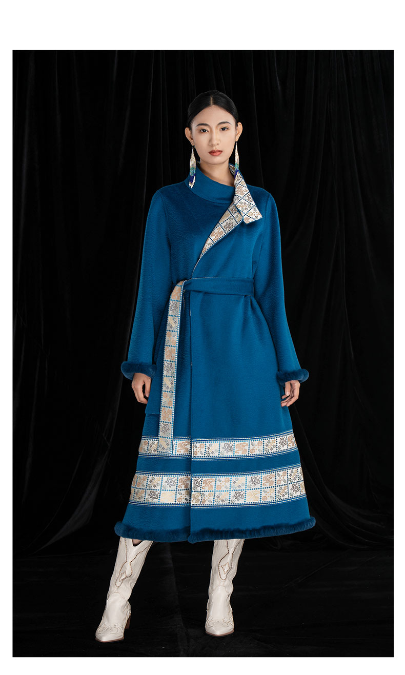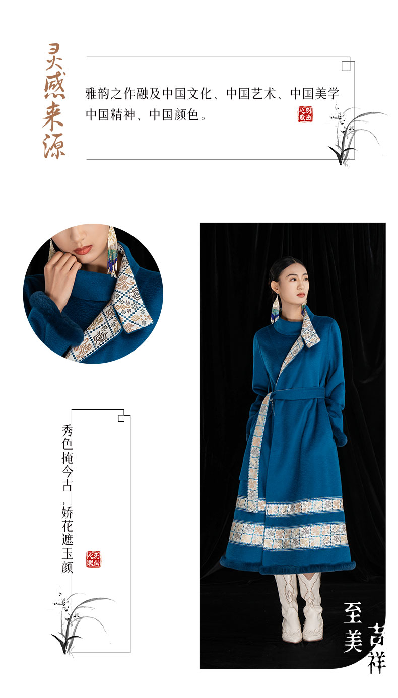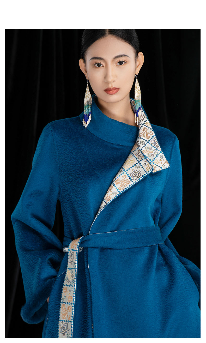 吉祥衣家休闲宽松立领壮锦保暖气质时尚国风立领女芳与泽大衣外套