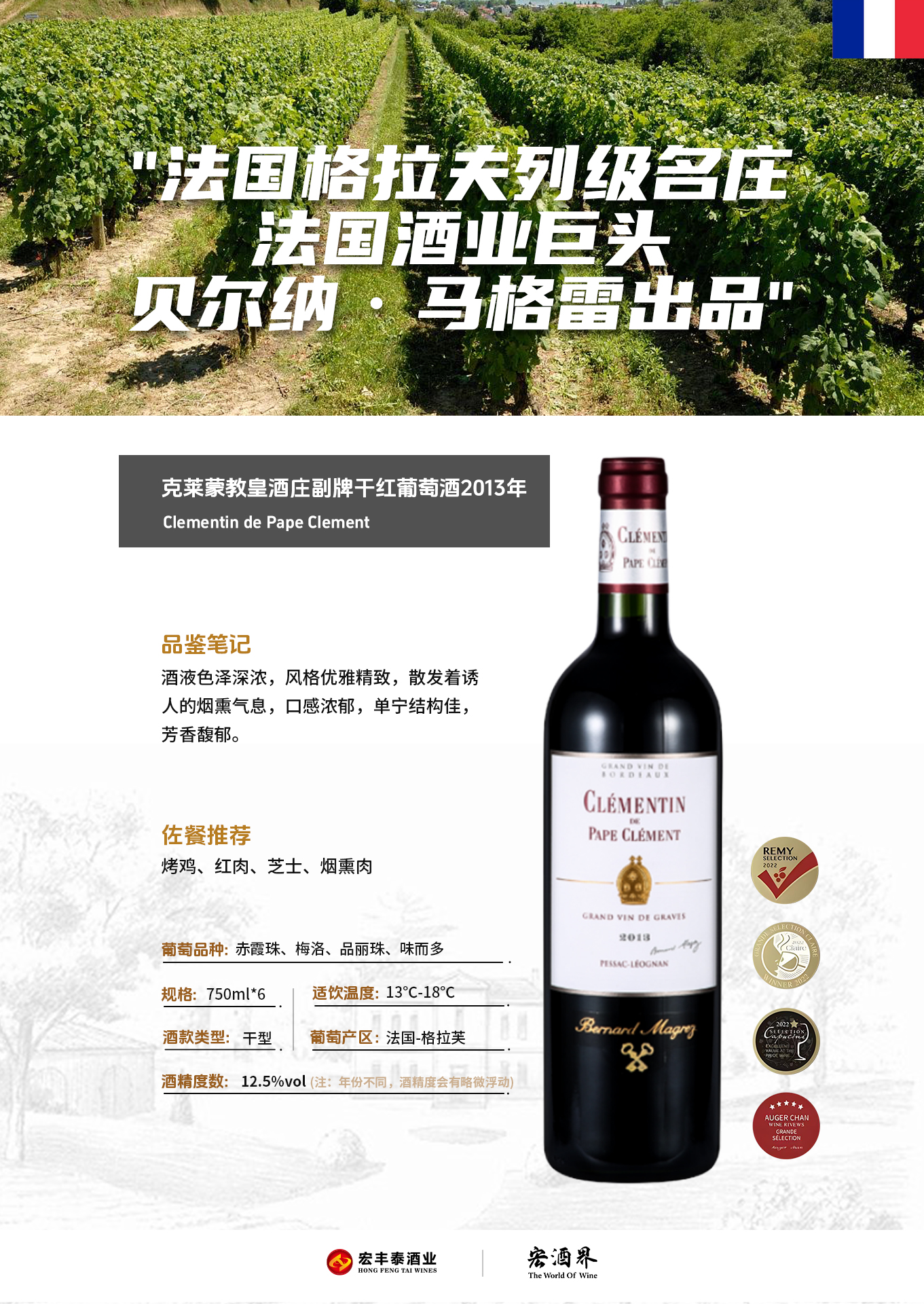 法国-克莱蒙教皇酒庄副牌干红葡萄酒2013年&宏酒界甄选