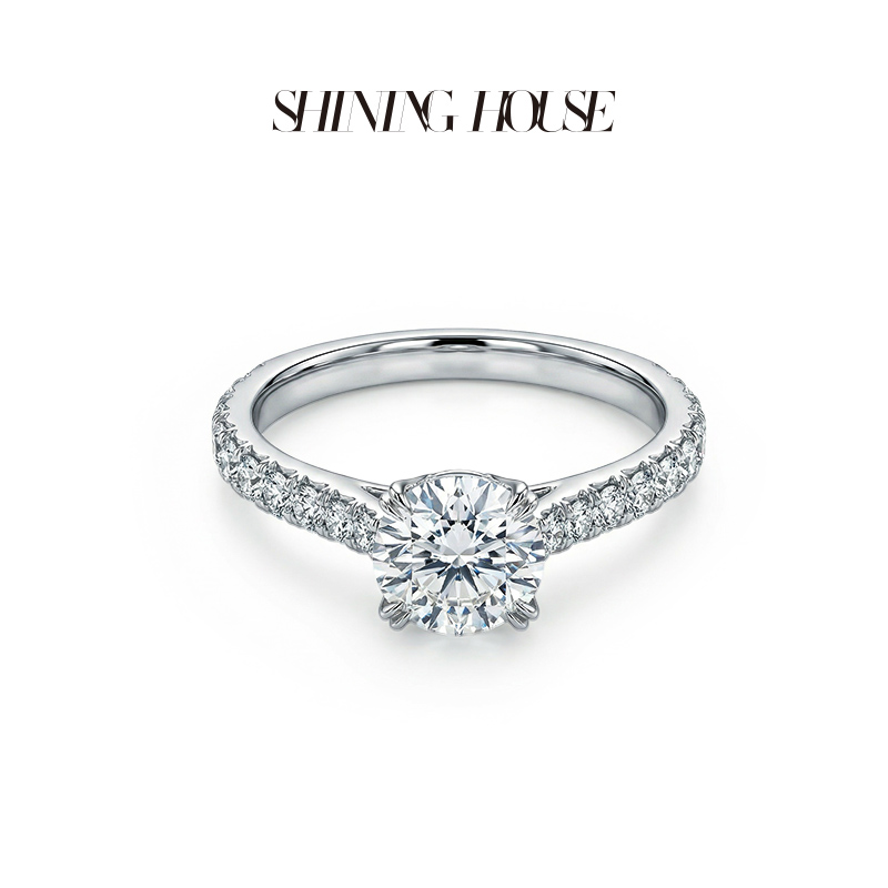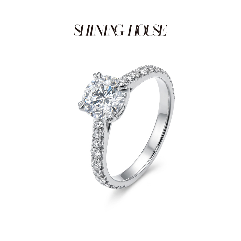 ShiningHouse[培育] 18k金钻石戒指 圆钻形1克拉钻人工真钻人造钻石K金戒指豪华钻石戒指悦己送礼臻选【此商品不支持7天无理由退货退款】预计3日发货