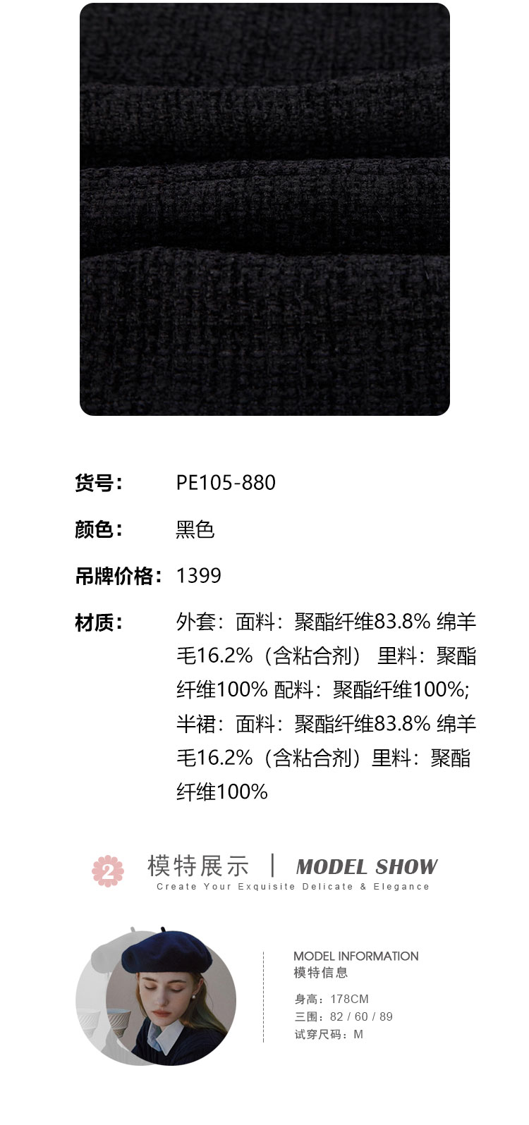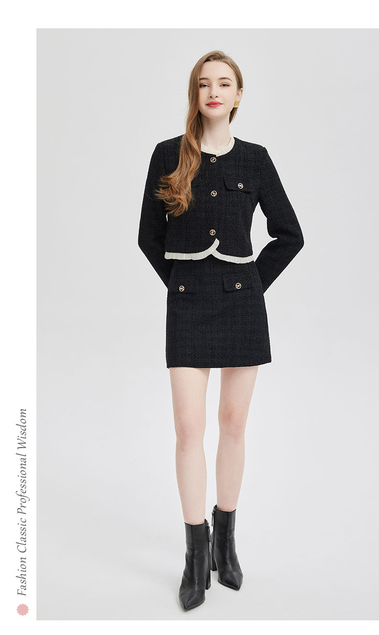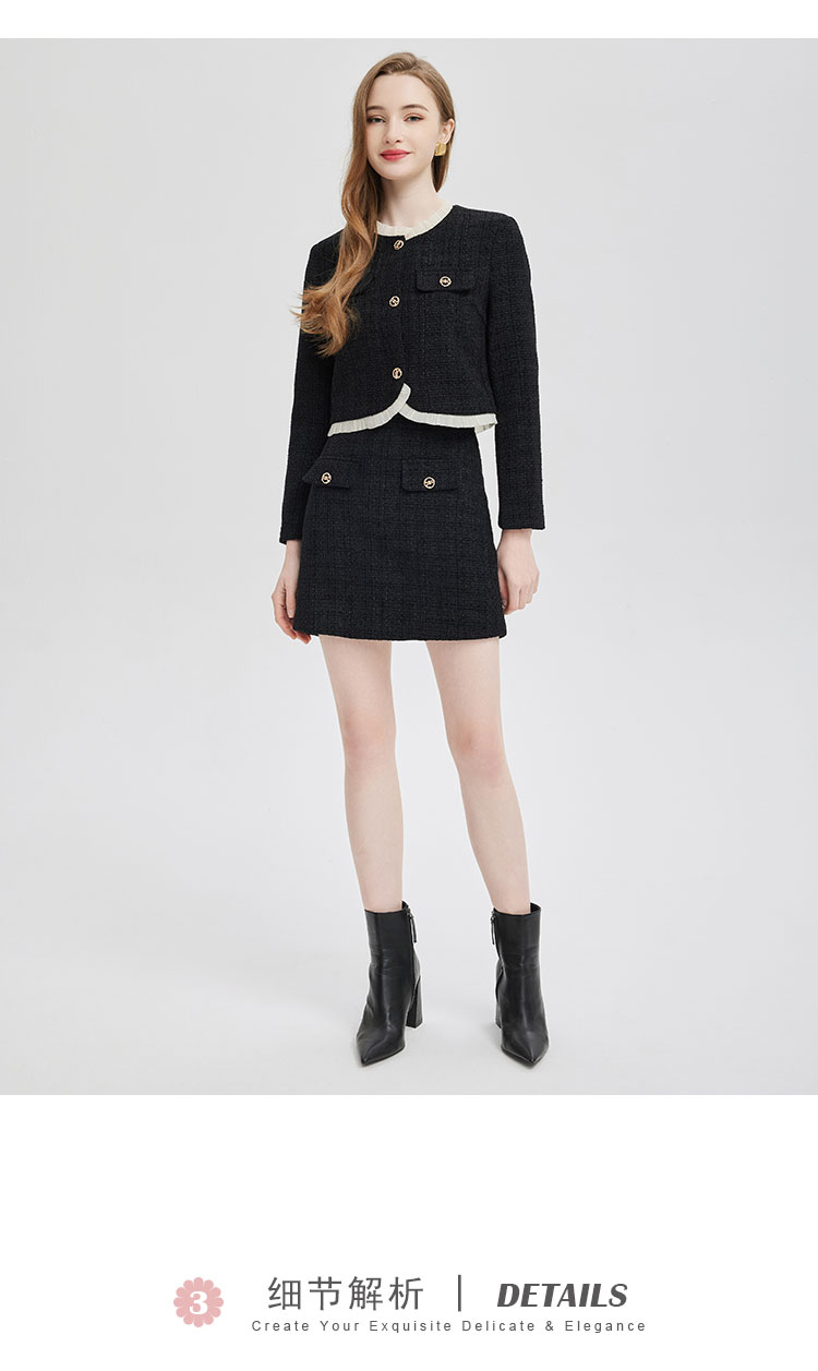 PE105-24春秋新款外套半裙两件套装法式高级感小香风套装