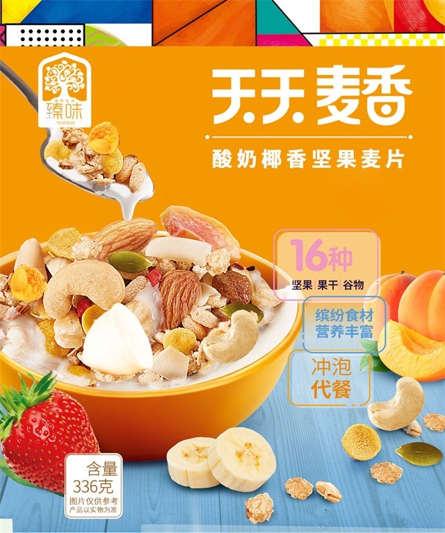 臻味336g天天麦香酸奶紫薯/椰香坚果麦片(盒装)