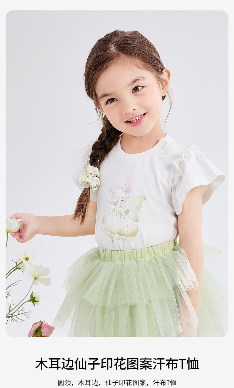 笛莎Deesha 女童连衣裙2024年新款时尚圆领T恤