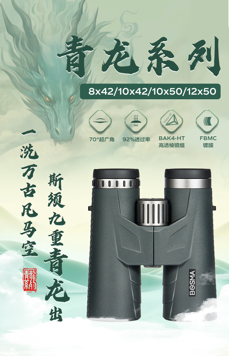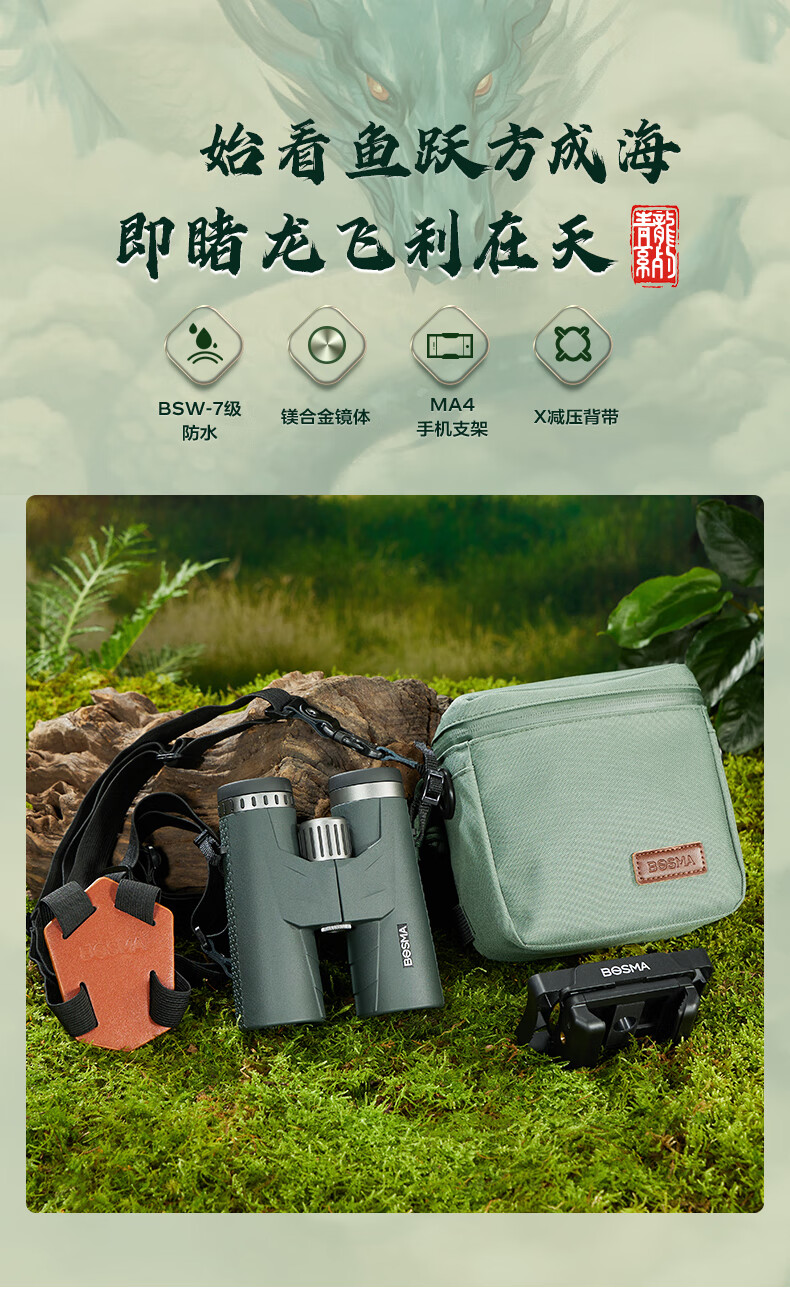 博冠(BOSMA)青龙双ED双筒望远镜超高清观鸟寻蜂观景 青龙双ED 12x50