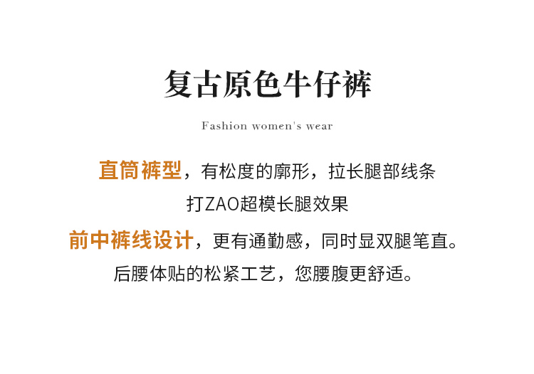【商场同款】CNT4887“静奢牛仔裤” 复古原色牛仔 有质感 显瘦不挑人 直筒版型 后腰松紧 宽松舒适